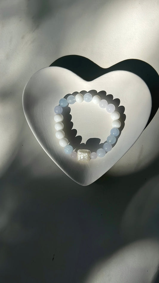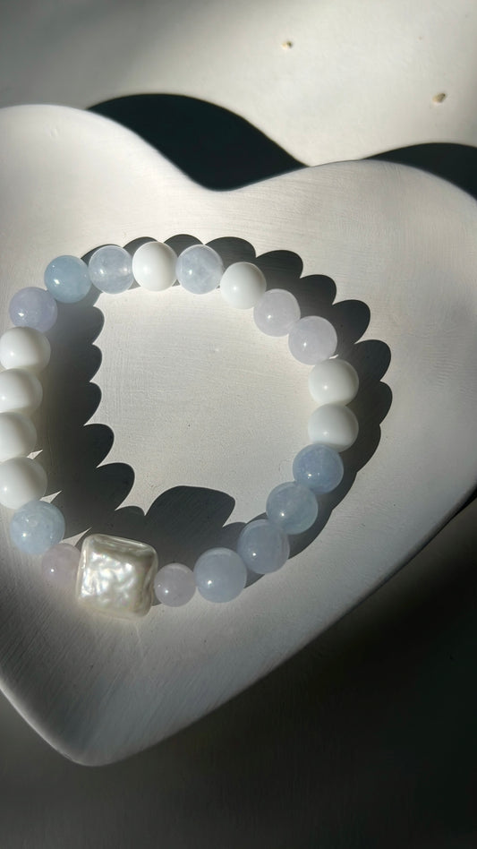 Balance x Courage Bracelet - Aquamarine, Shell, White Agate