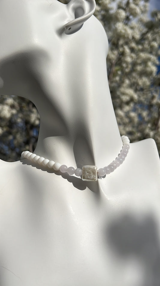 Serenity, Intuition, Decision making • White Agate, Aquamarine & Shell