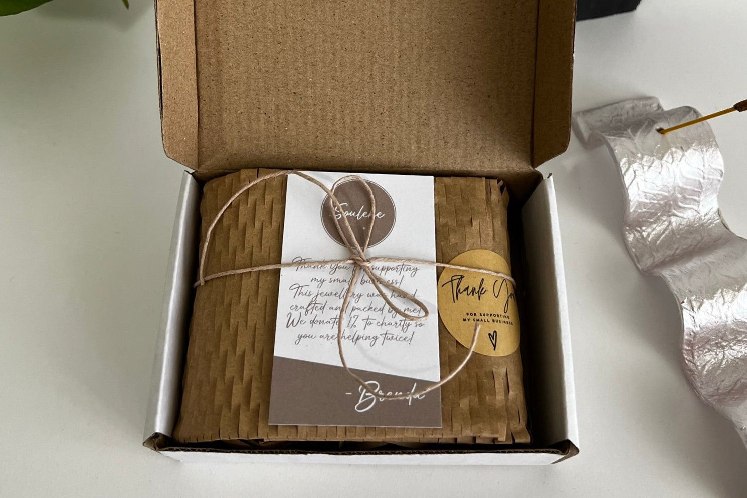 We place your piece of jewellery on a bed of recycled Kraft filler and put the Hex Wrap around it to keep it nice and snug. Oh and the box of course is recycled as well!