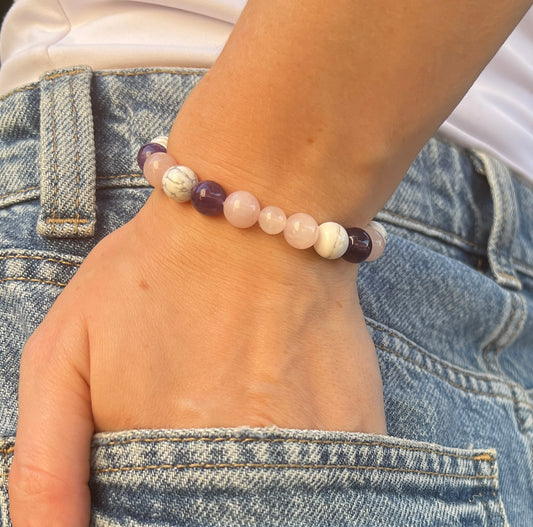 This Bracelet will help you increase love, enhance romance, heal relationships, find a new partner in your life and to have a loving relationship. It is a good balancer of emotions so you could feel more at ease and confident. Strawberry Quartz is a crystal of the highest heart center. It helps you draw in your soulmate and restart the karma of your relationship. It will help you open your heart and grow spiritually. Strawberry Quartz supports fulfilling your dreams. Also it is a very good cleanser of auras and aura fields. It can be a spiritual guide to learning your hidden talents and qualities. Rose Quartz, which is also a love crystal, which will help you love yourself and heal wounds.
