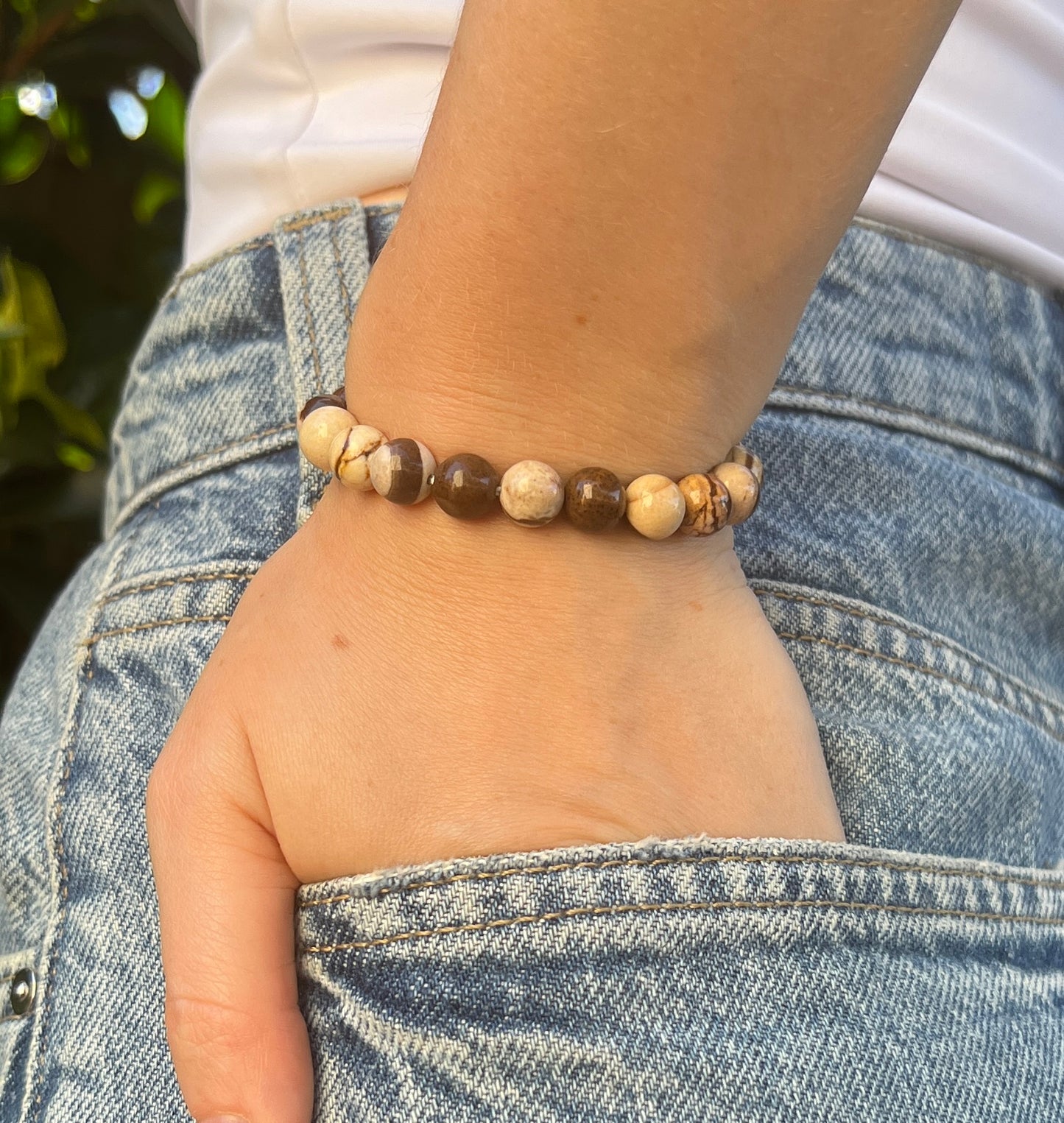 Zebra Stone brings balance into our lives, connecting us to the grounding energy of Mother Earth and the infinite loving energy of the Universe. It is very helpful in overcoming depression or anxiety. It helps us to see through illusions and get to grips with our problems, lending us the determination to overcome apathy and motivating us to put our ideas into action. Energetically Zebra Stone protects our aura, helps us to see both sides of a situation, gives us courage to be our true selves.