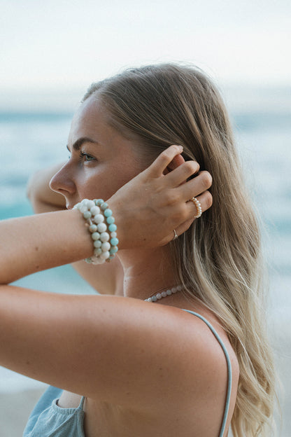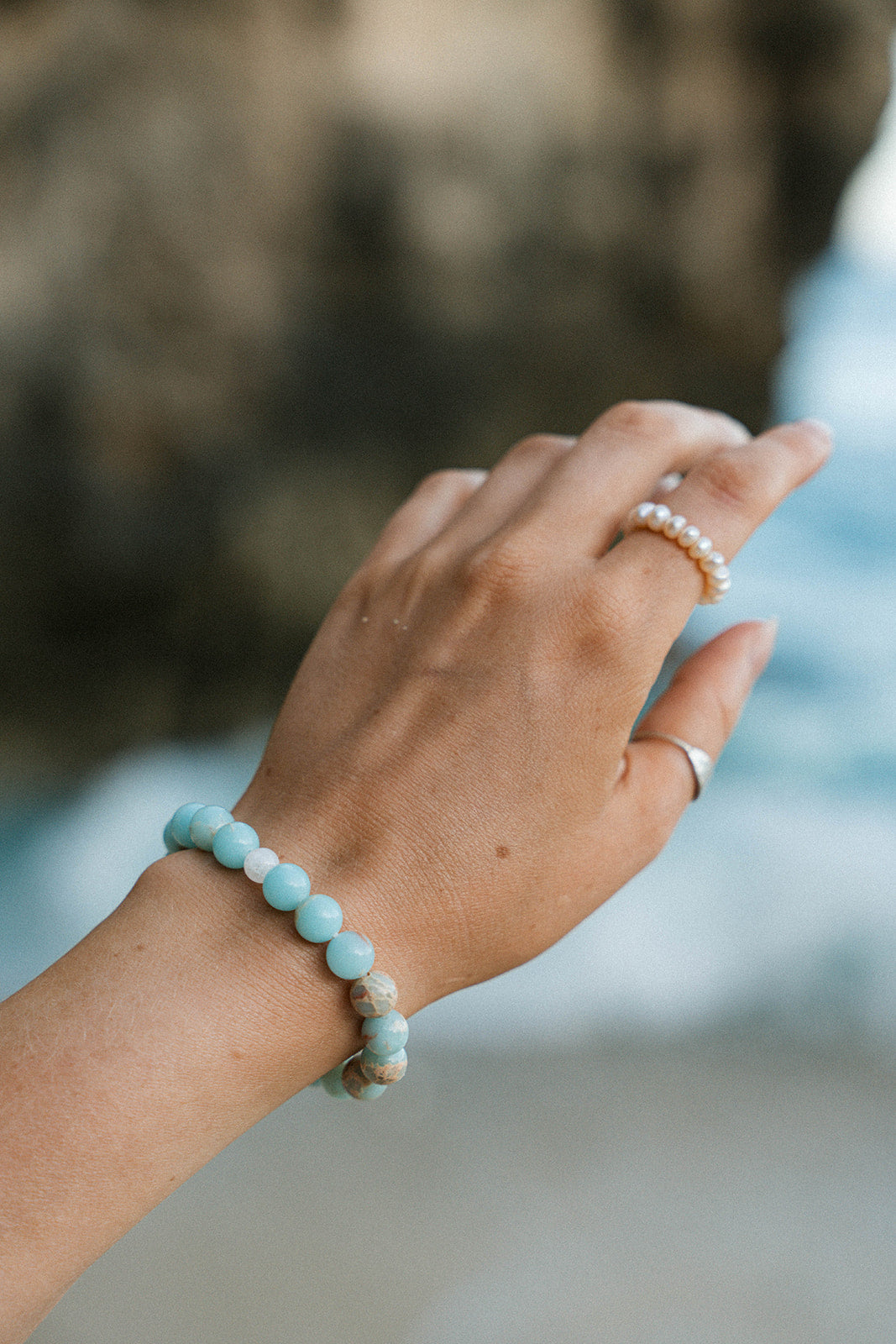 Wrap your wrist in the serene beauty of this Blue Snakeskin Jasper bracelet, a piece that perfectly embodies balance and harmony. Known for its ability to align the mind, body, and spirit, this bracelet promotes an atmosphere of peace and clarity.
