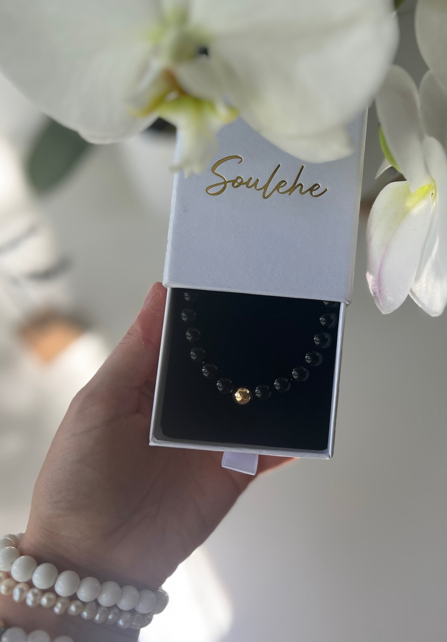 Elevate your journey to inner peace and clarity with our Silver Obsidian Bracelet, accented with an 18K Gold Plated bead. This bracelet serves as a powerful tool for therapy and protection, helping to ground your spirit and clear negativity from your path.