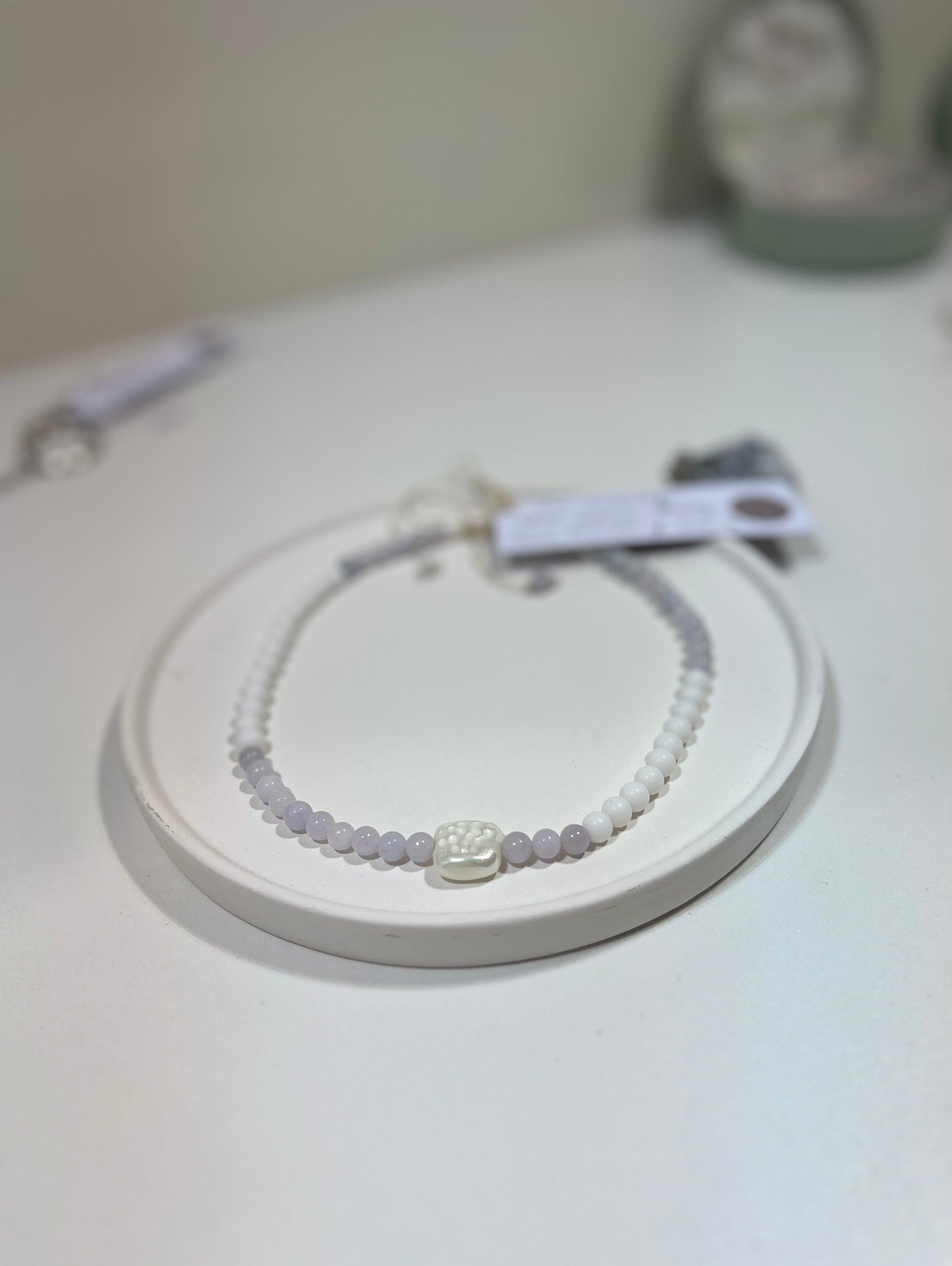 Serenity, Intuition, Decision making • White Agate, Aquamarine & Shell