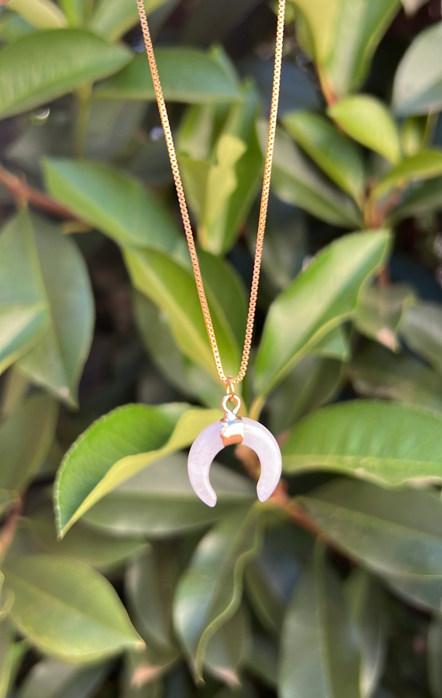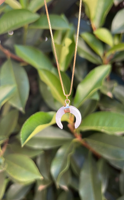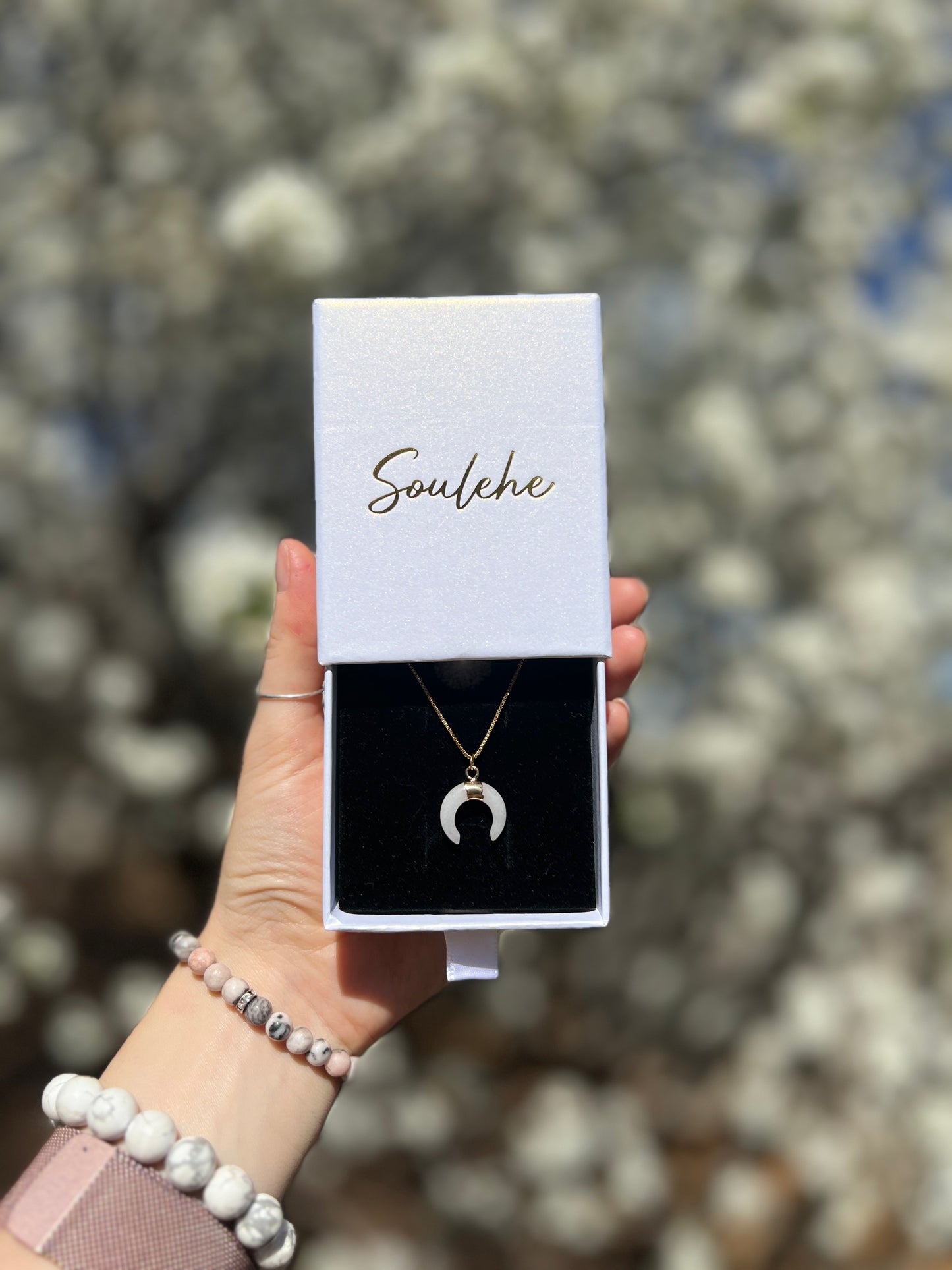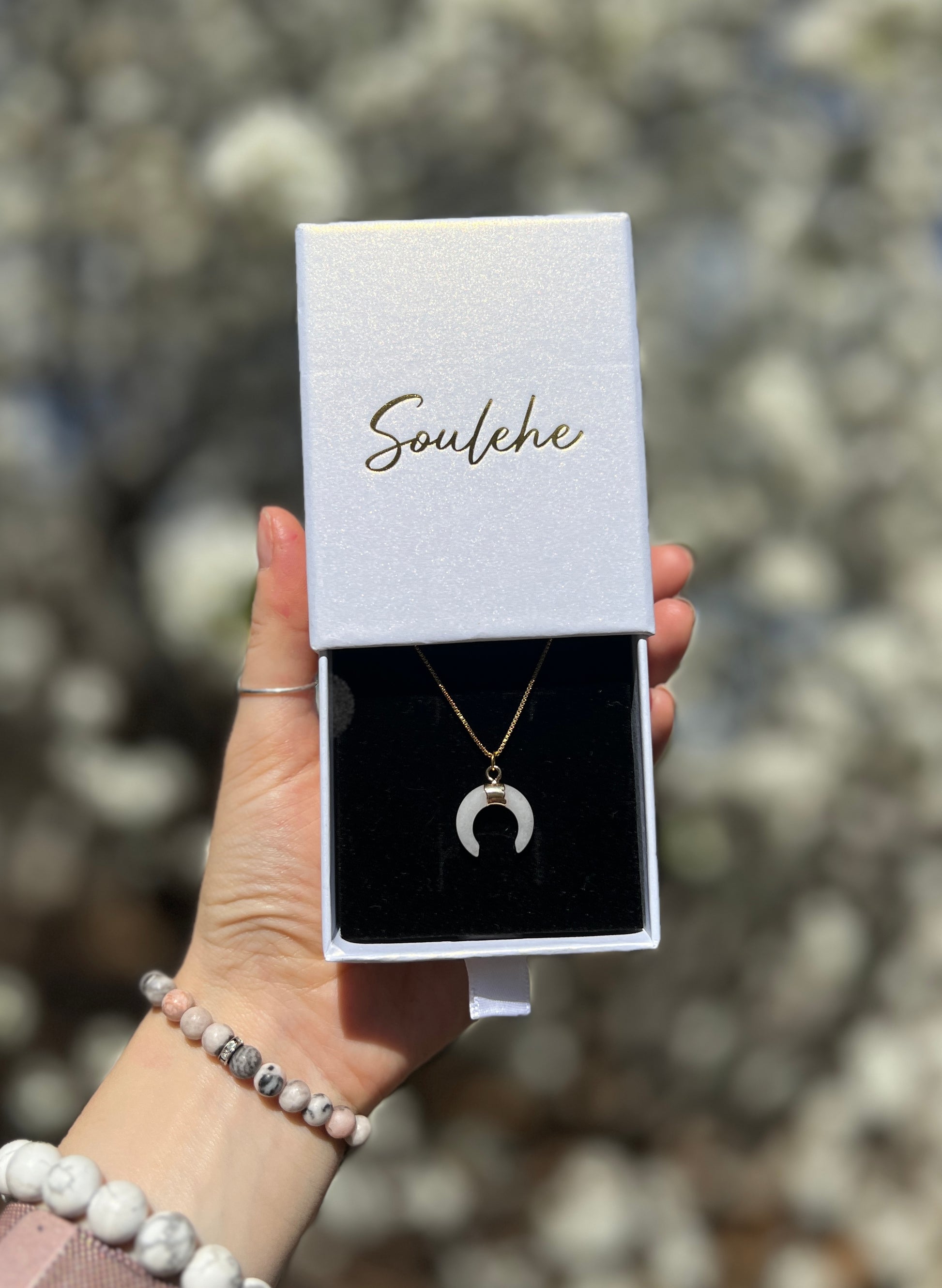 Embrace harmony and strength with our White Agate Moon necklace. This serene stone is revered for its balancing qualities and protective properties against negative influences.