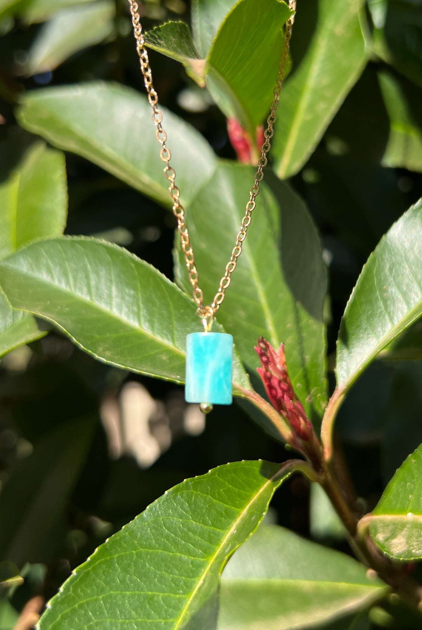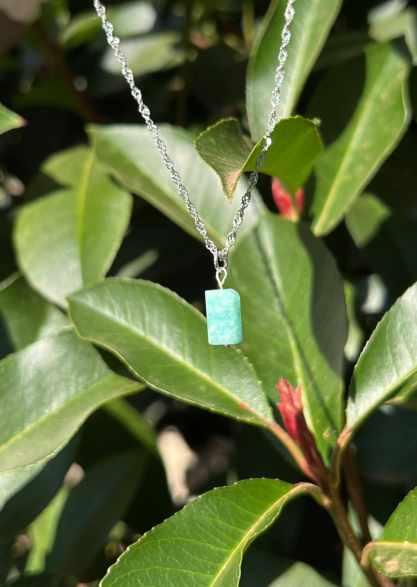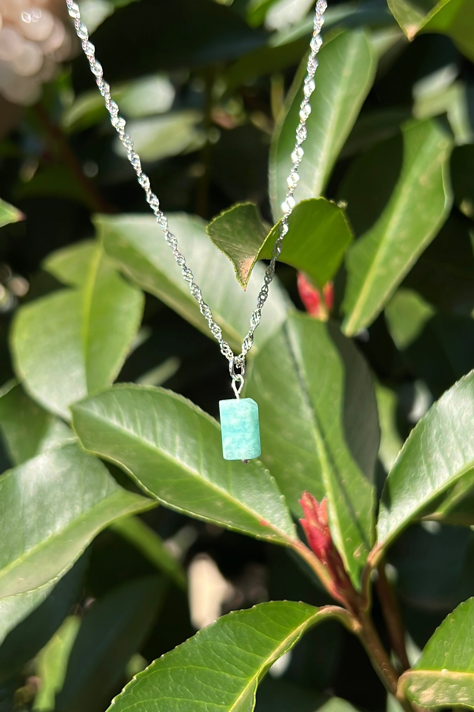 Crafted to support self-expression and inner calm, this Amazonite necklace is known for enhancing relationships, soothing worries, and attracting love and abundance. It invites balance and clarity, helping you embrace truth and release fear.