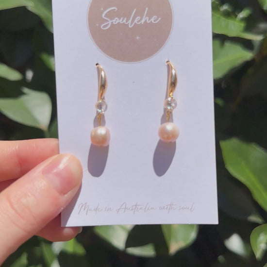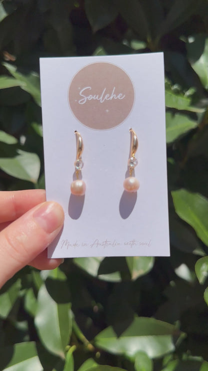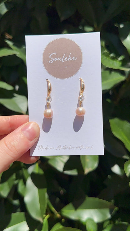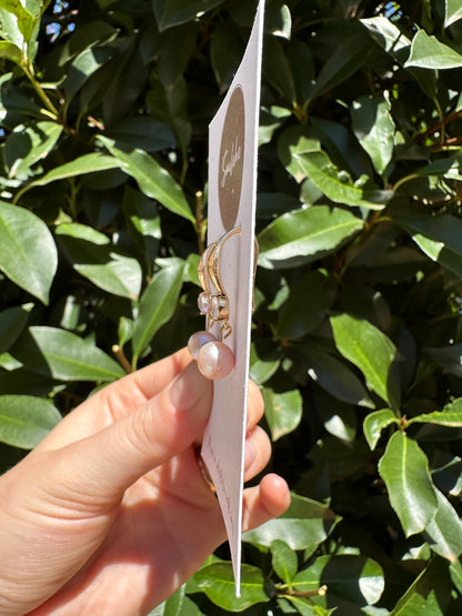 Crafted with 18K gold-plated hoops, these Pink Pearl Earrings embody the essence of femininity and maturity. Known for nurturing intuition and emotional balance, pearls elegantly express the wearer's inner wisdom and clarity of thought.