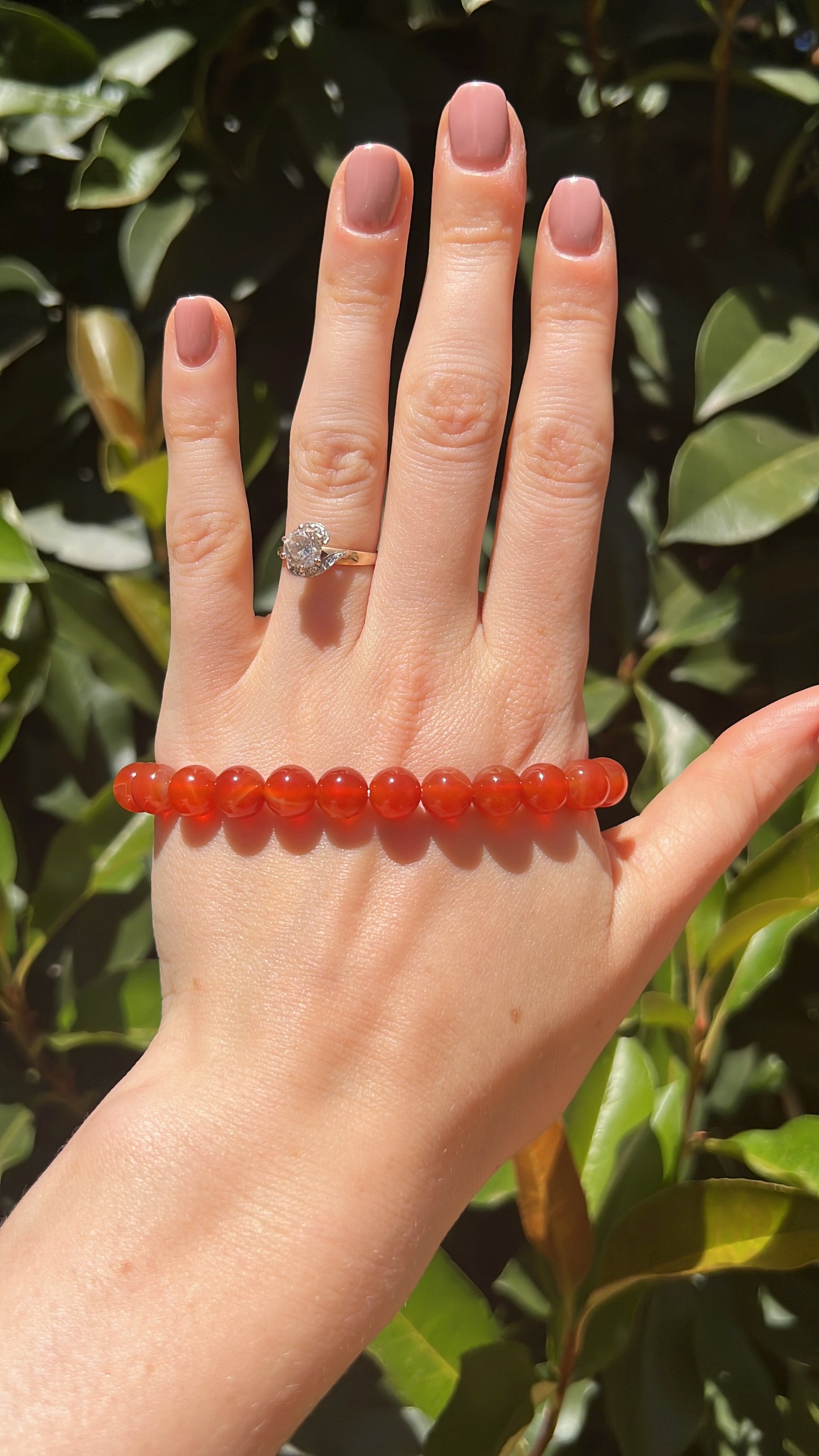 Adorn your wrist with the vibrant energy of our Carnelian Bracelet. This gem is known for boosting vitality and confidence, inspiring a joyful passion for life.