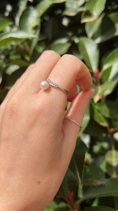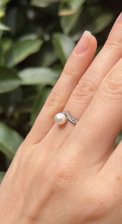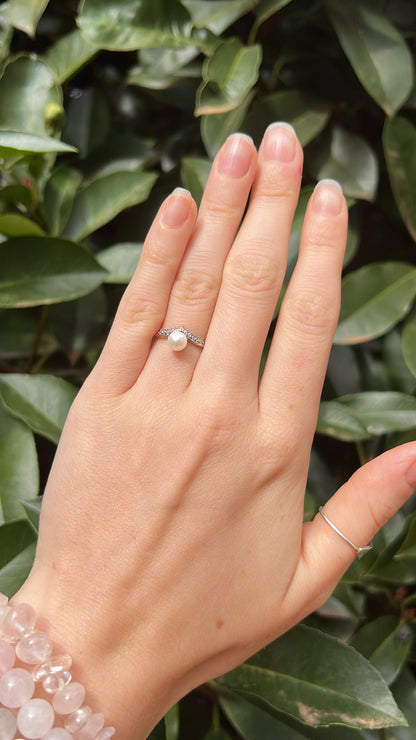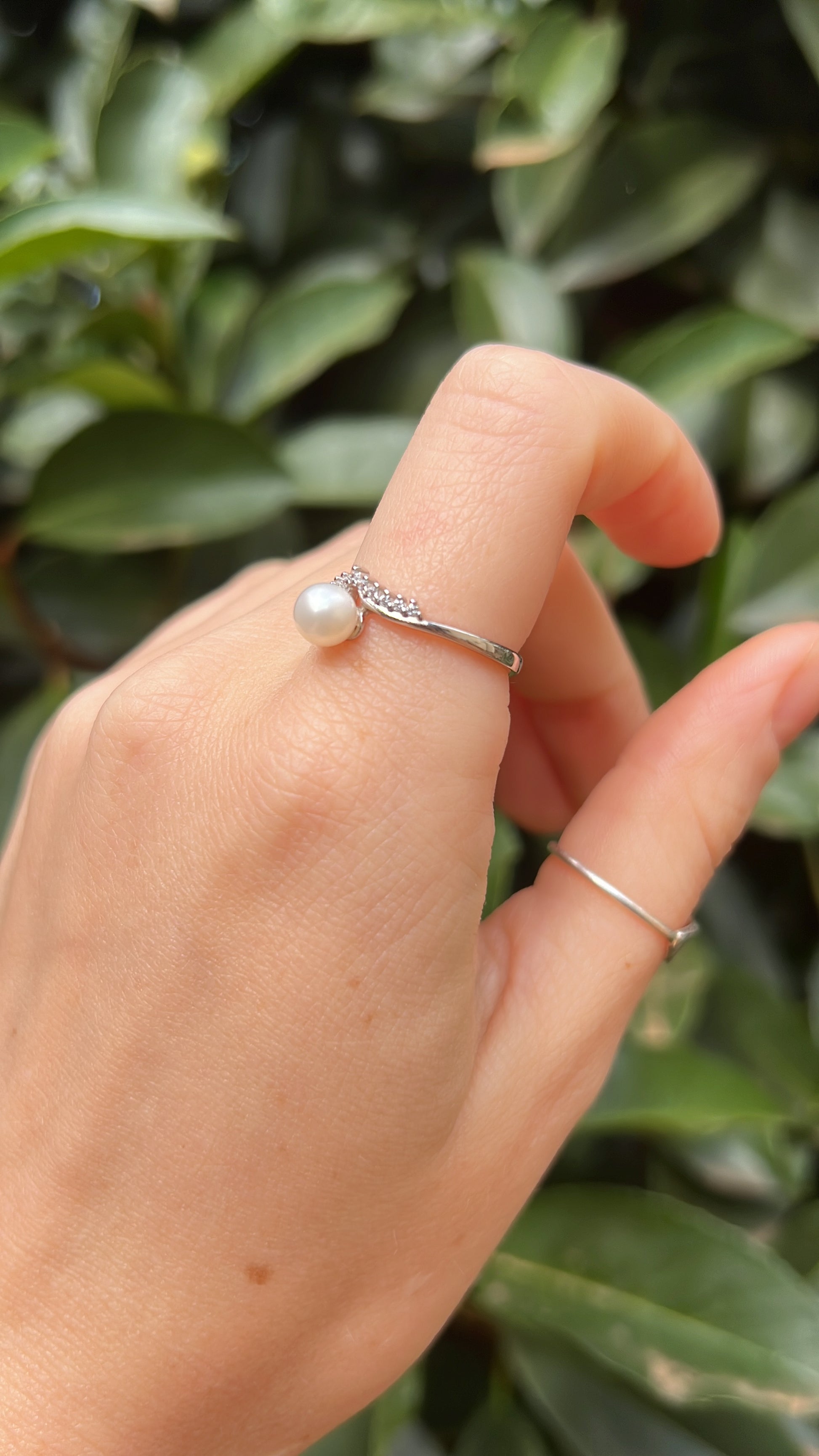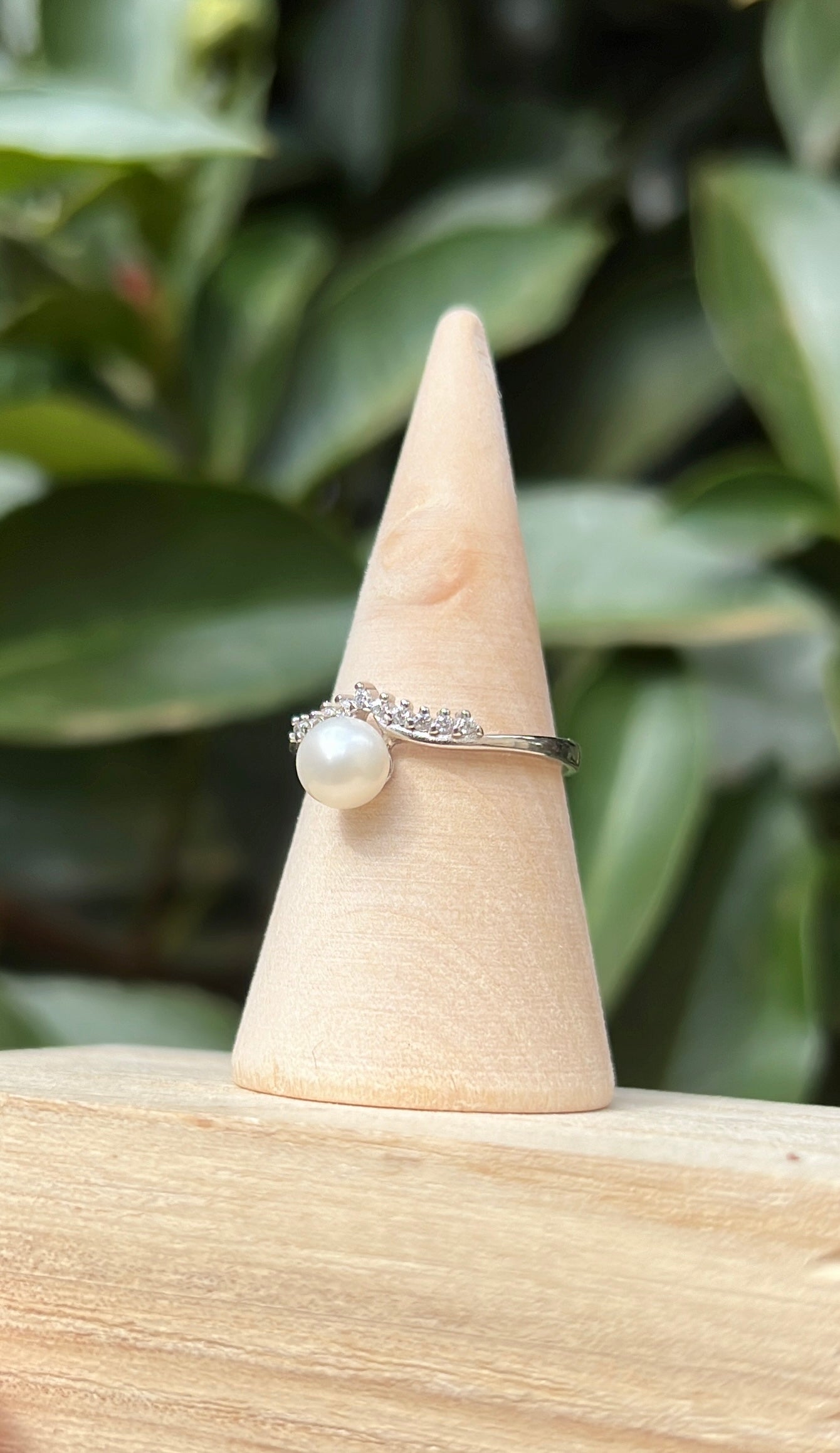 Embrace the timeless elegance of our Freshwater Pearl Swirve Ring set in 925 Sterling Silver. Celebrated for its connection to femininity and intuition, this piece enhances emotional balance and clarity of thought.