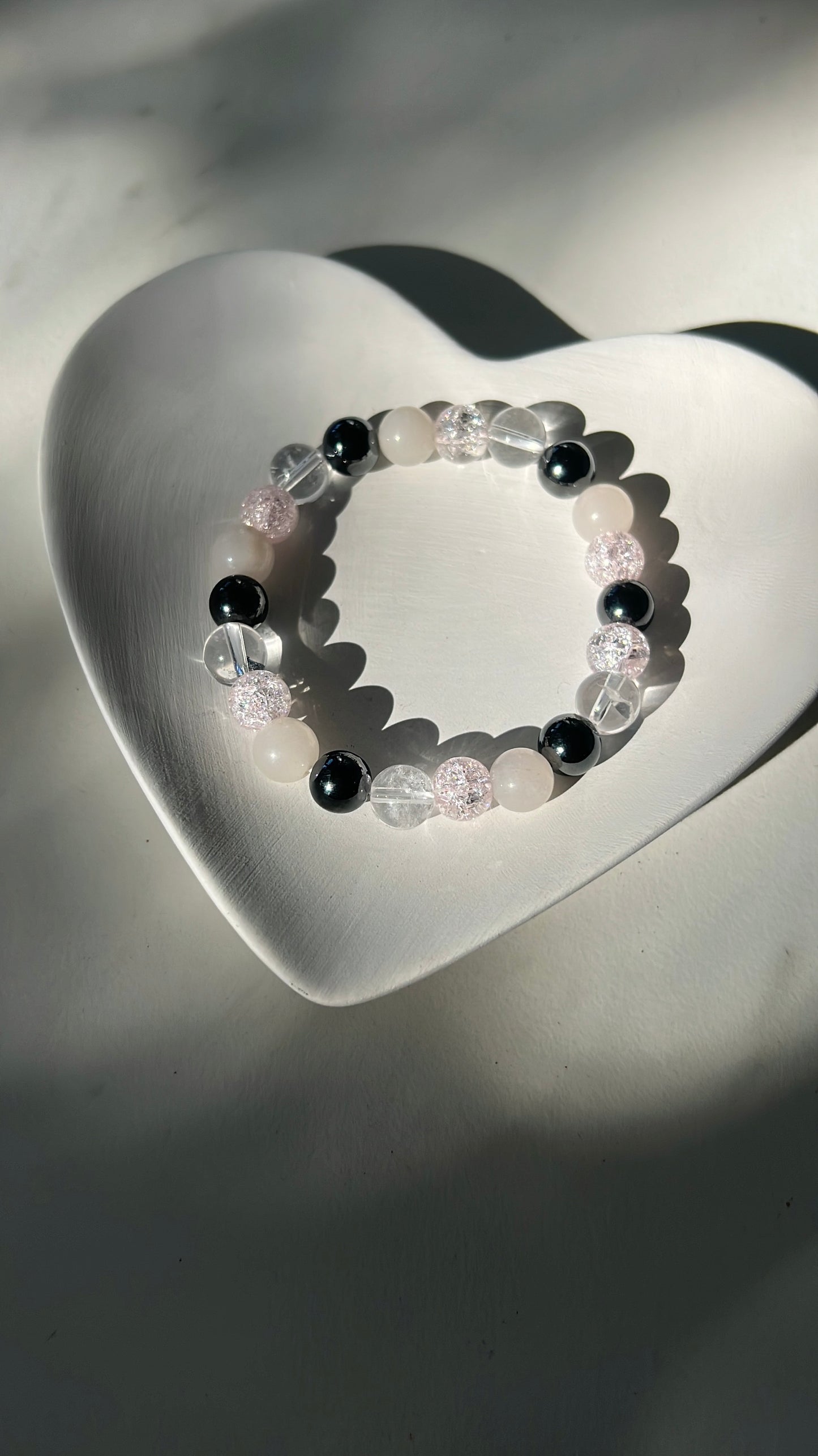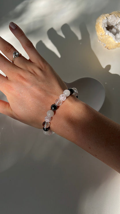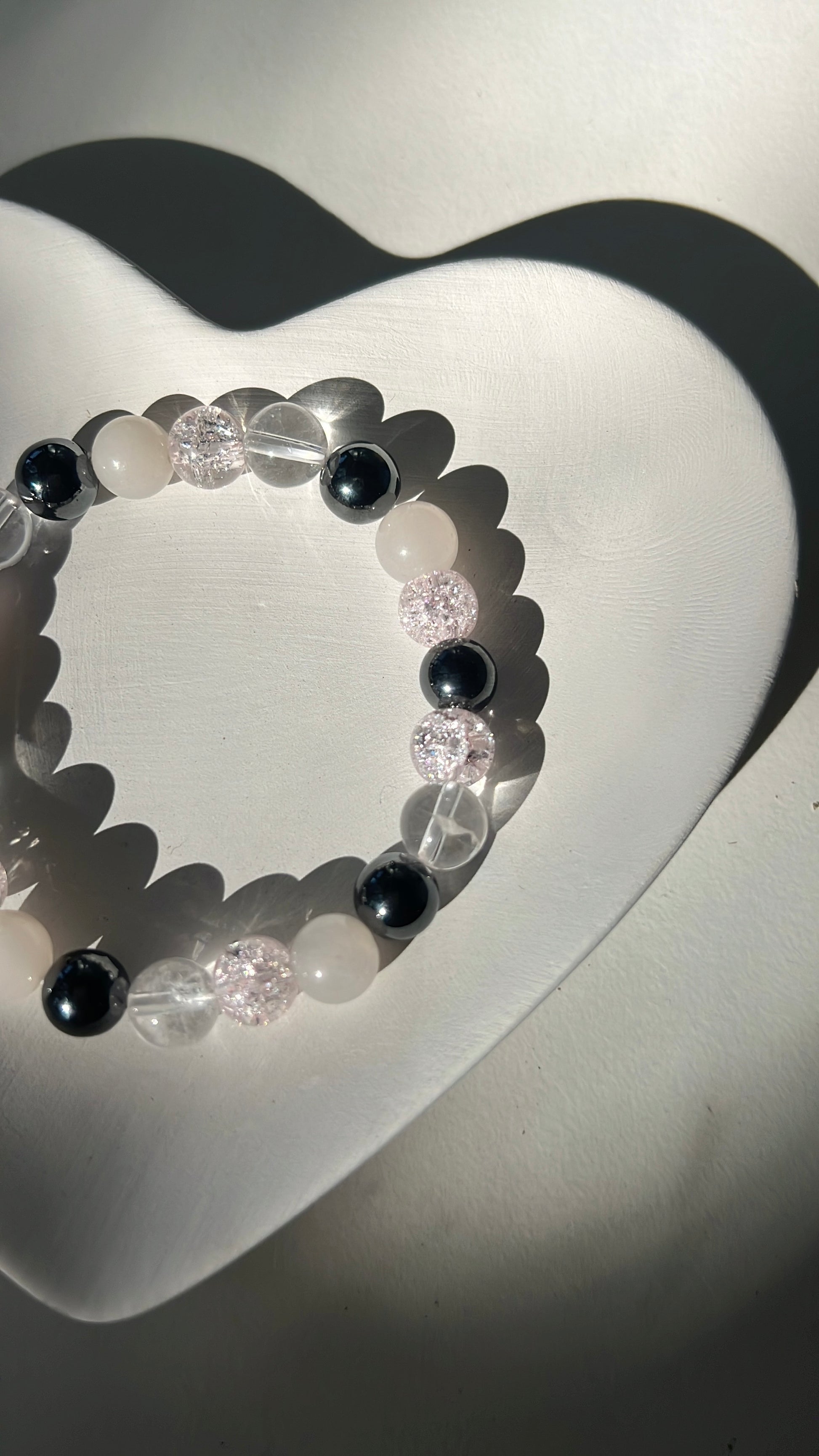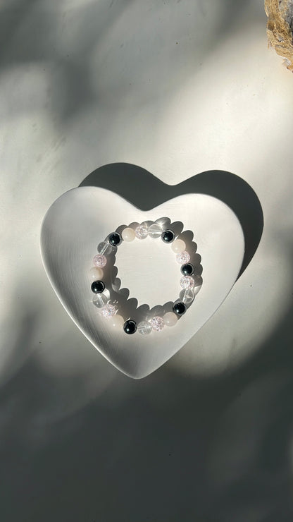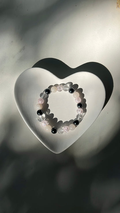This bracelet brings together Hematite, Pink Aventurine, and Clear Quartz to support grounding, positivity, and personal power.