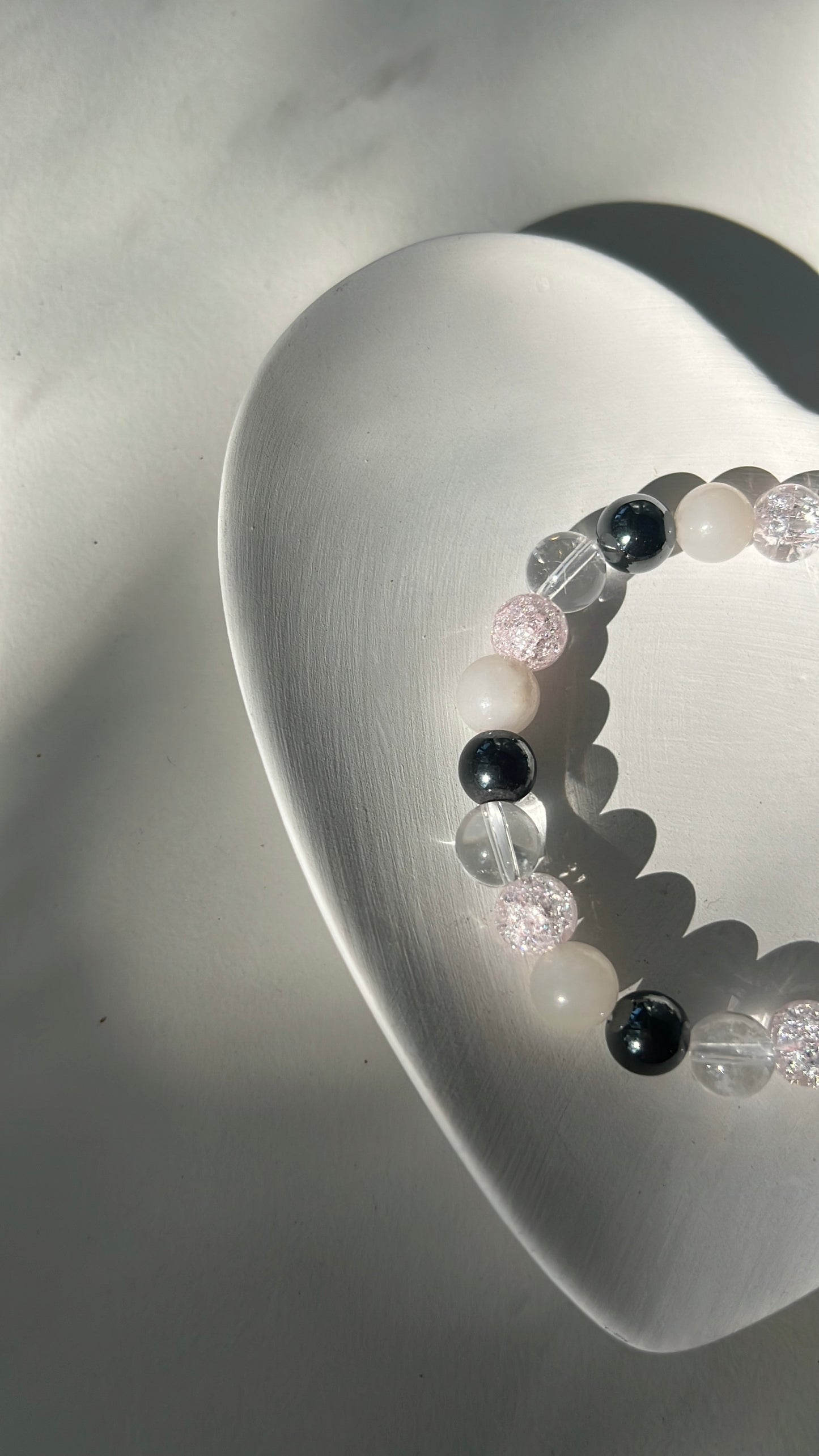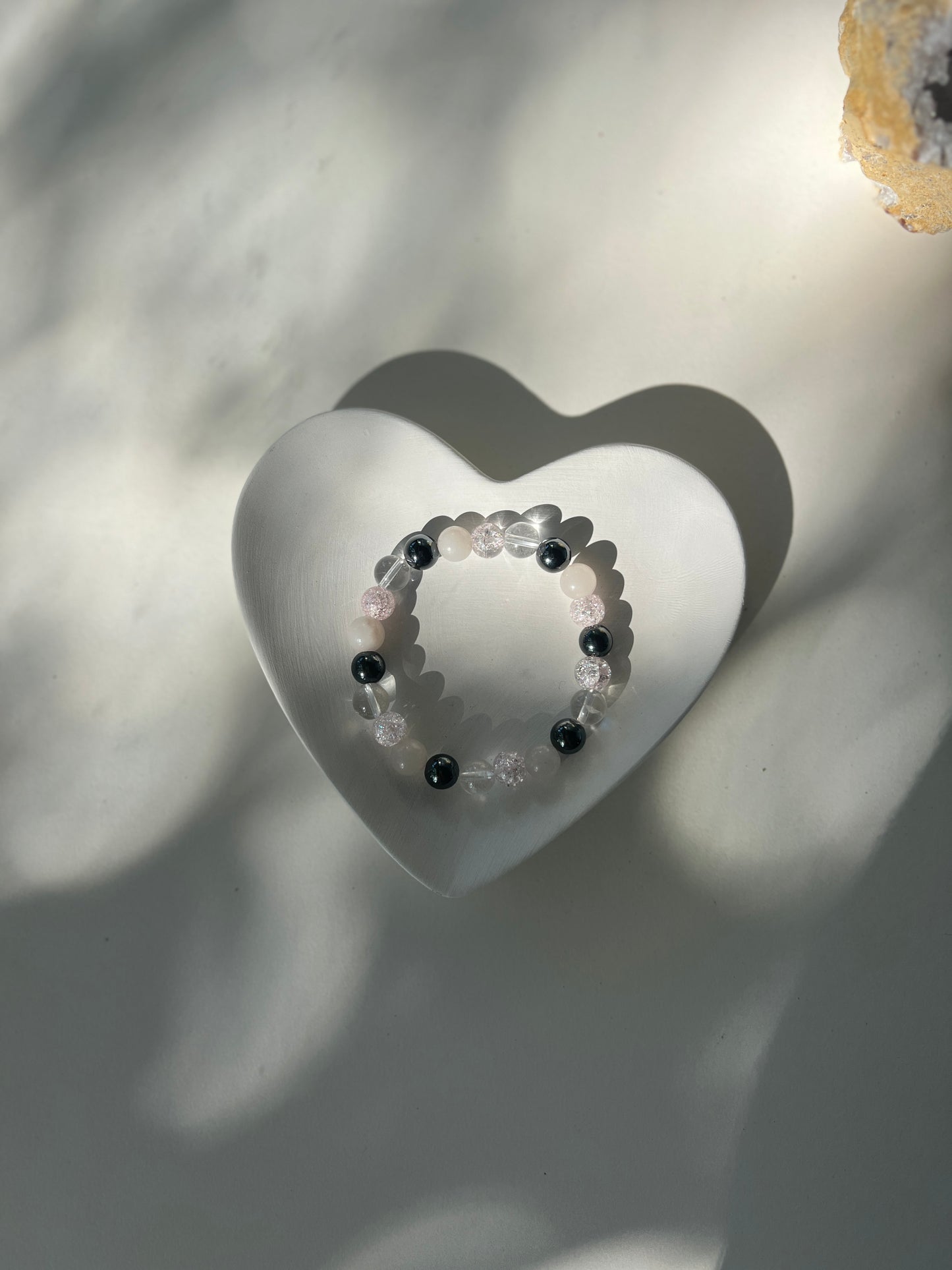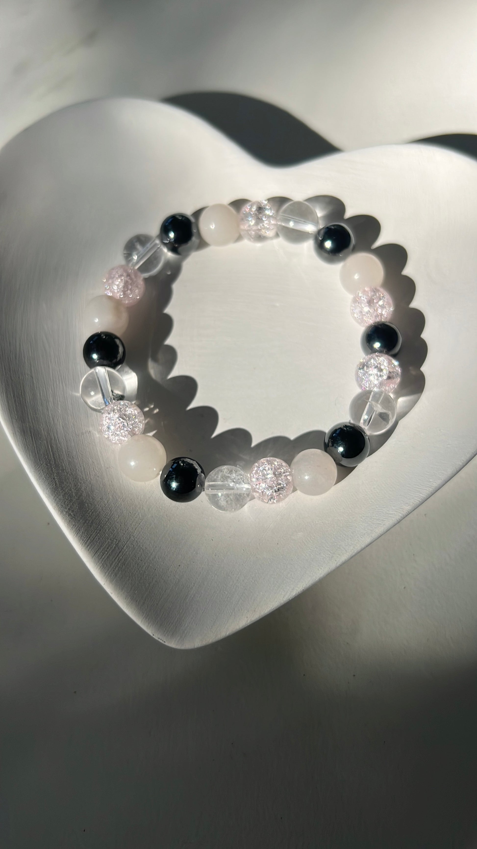 This bracelet brings together Hematite, Pink Aventurine, and Clear Quartz to support grounding, positivity, and personal power.