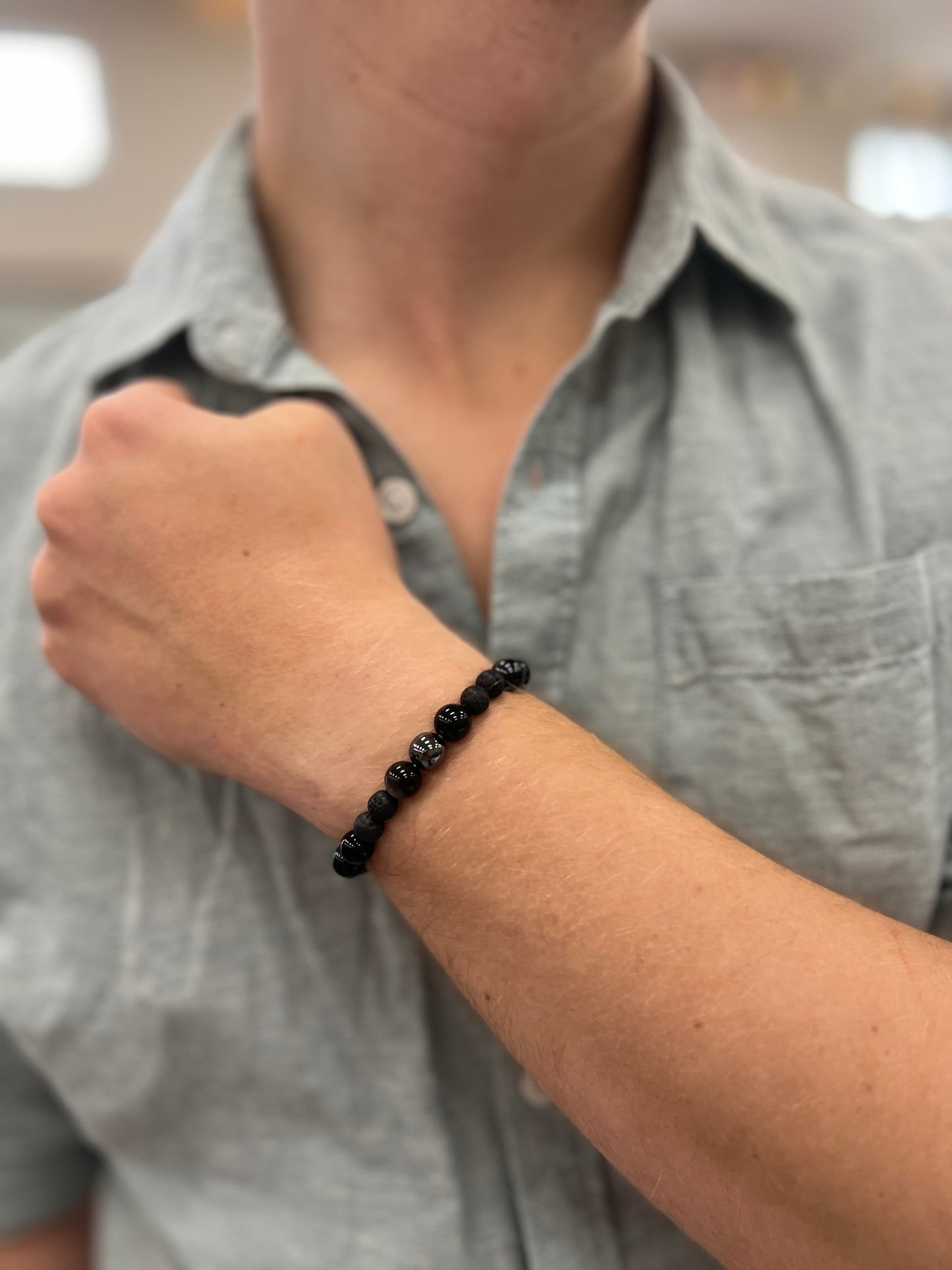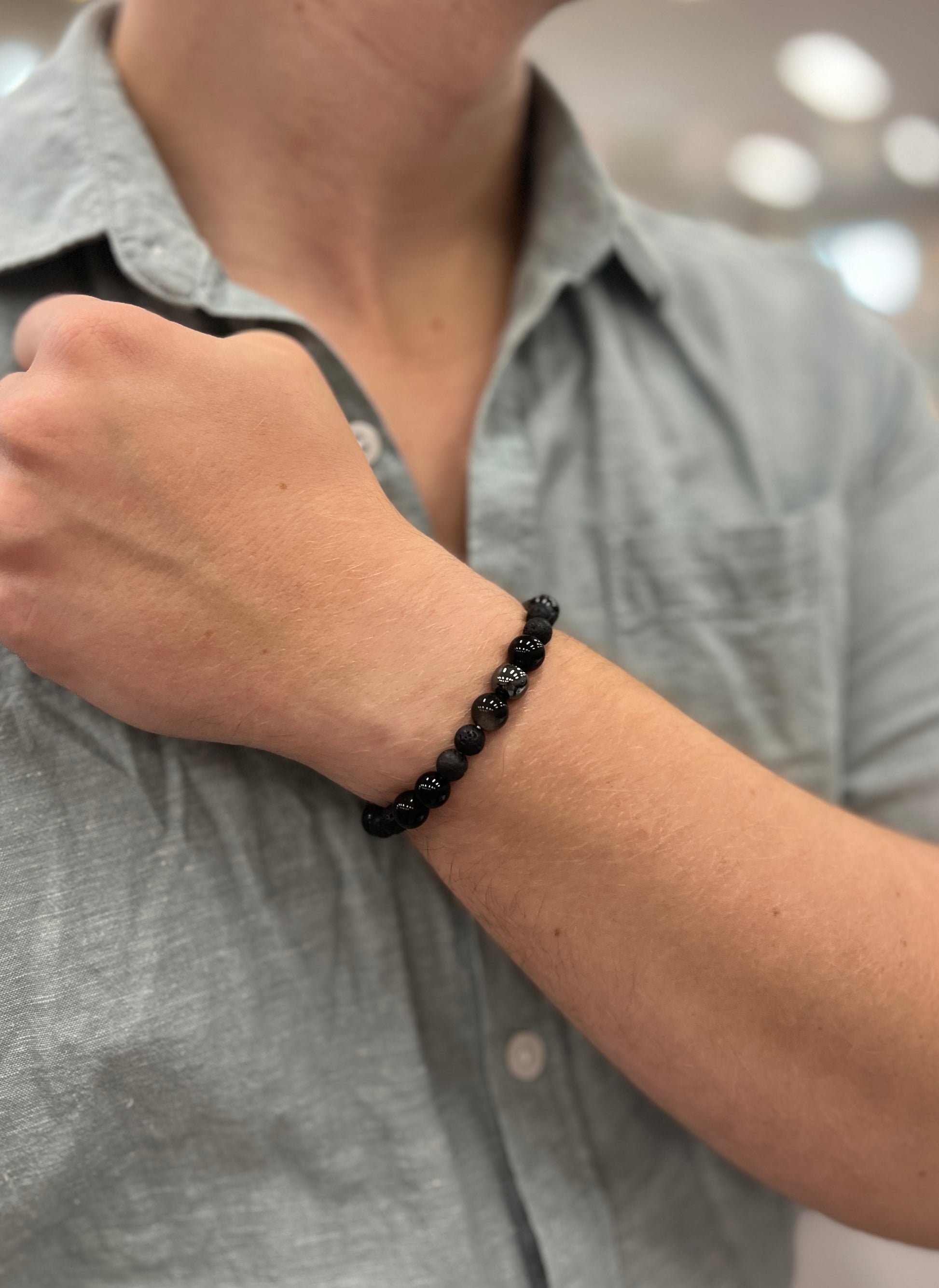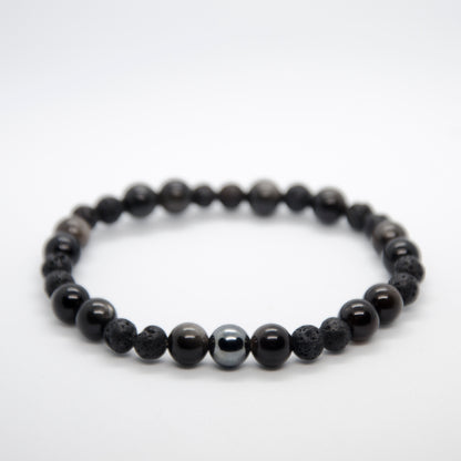 ◉ 8mm Natural Hematite ◉ 6mm Natural Black Lava ◉ 8mm Natural Silver Obsidian