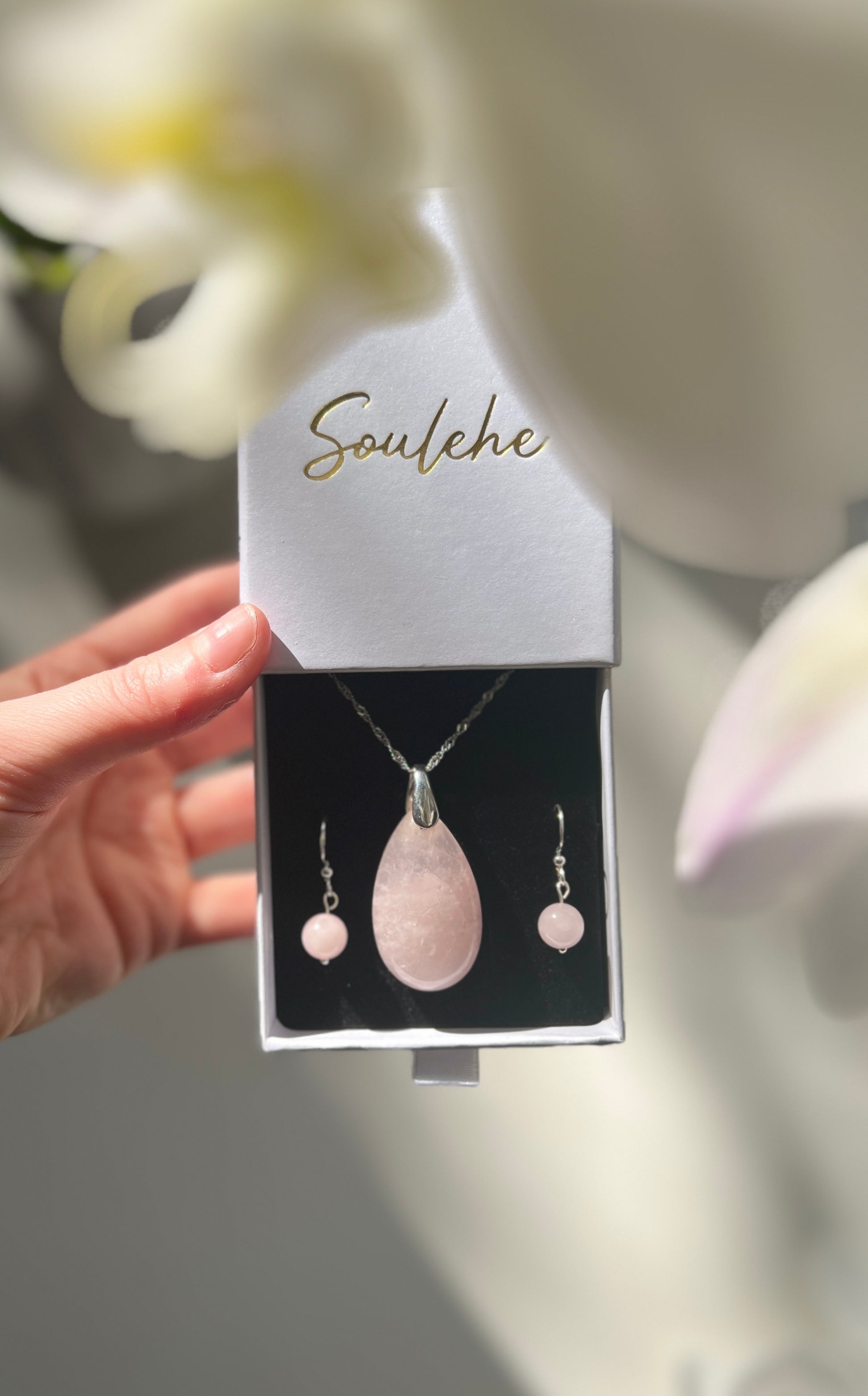 Healing x Relationships Combo • Necklace & Earrings • Rose Quartz & 925 Silver