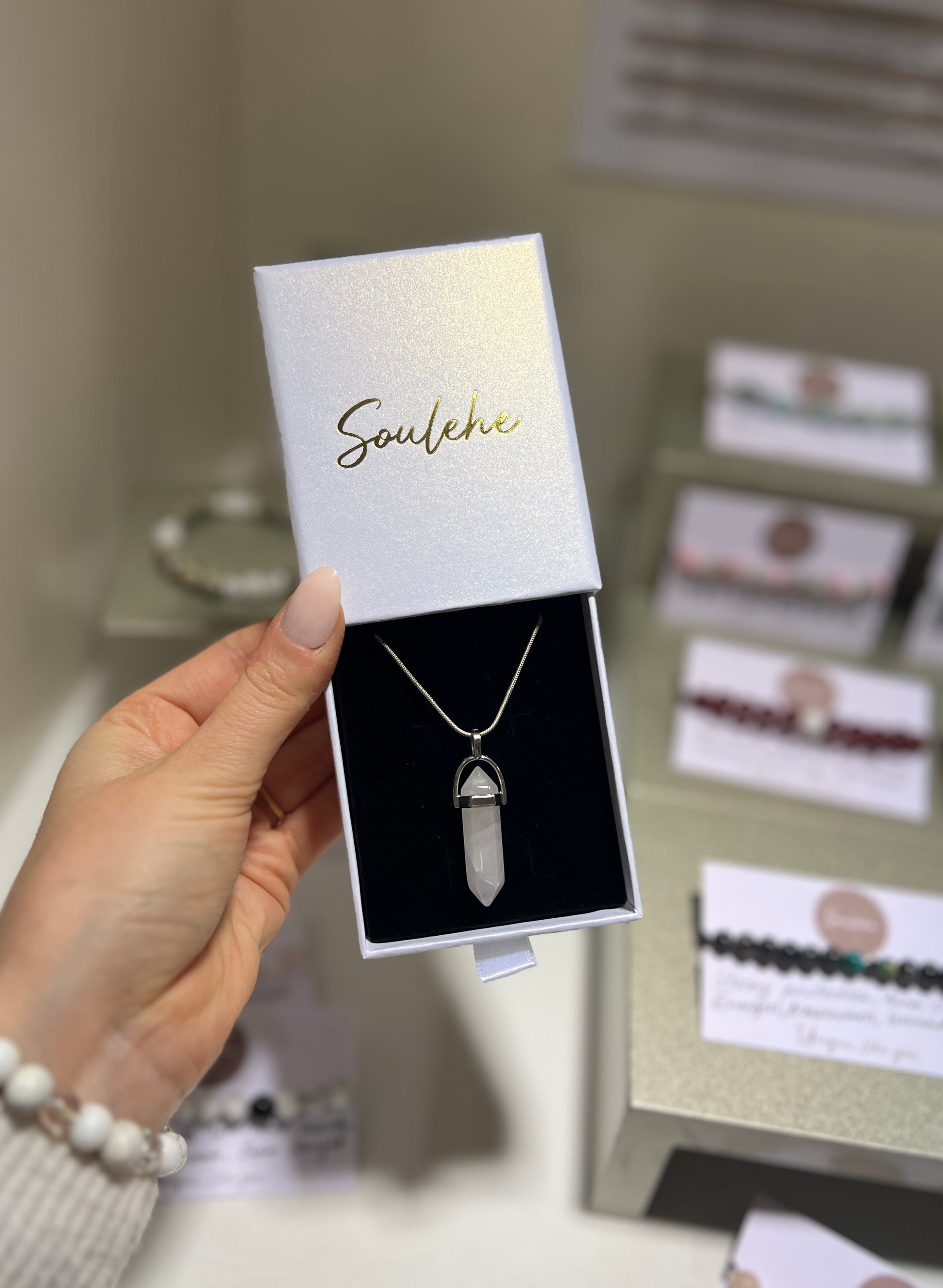 A lot of the crystals and gemstones that we use are porous, which means that their colour and brightness can change over time due to humidity, perfumes, and cosmetics.