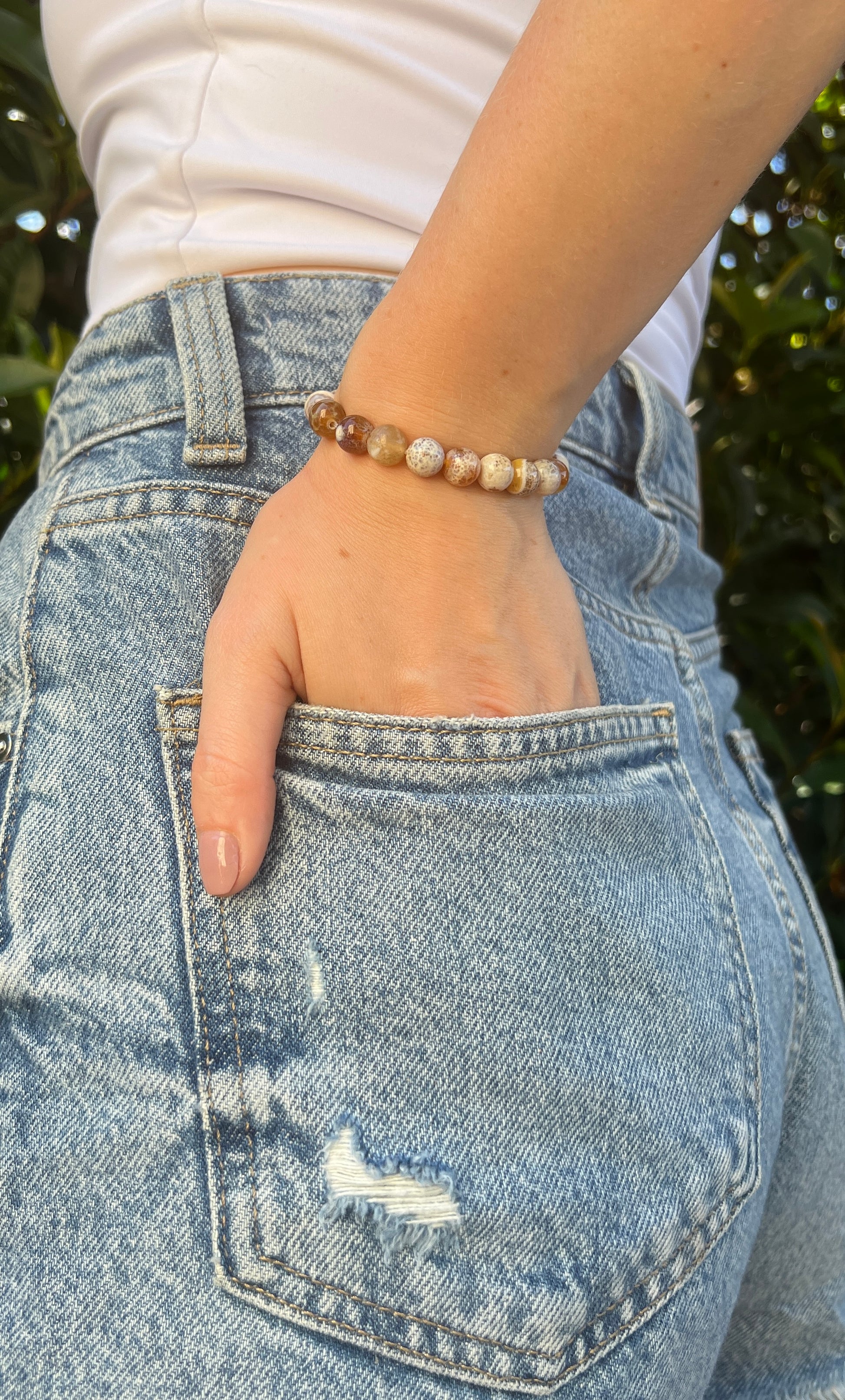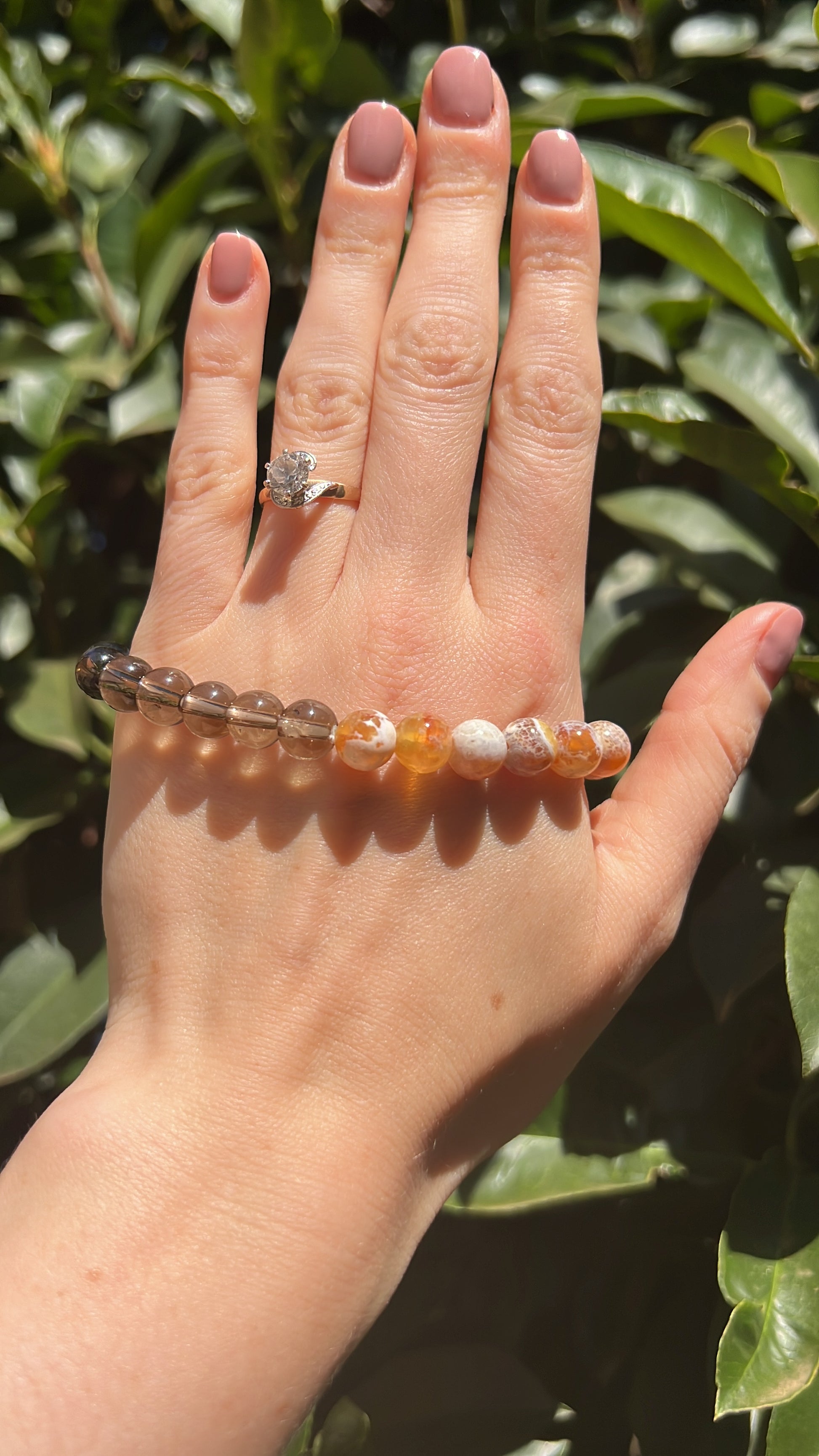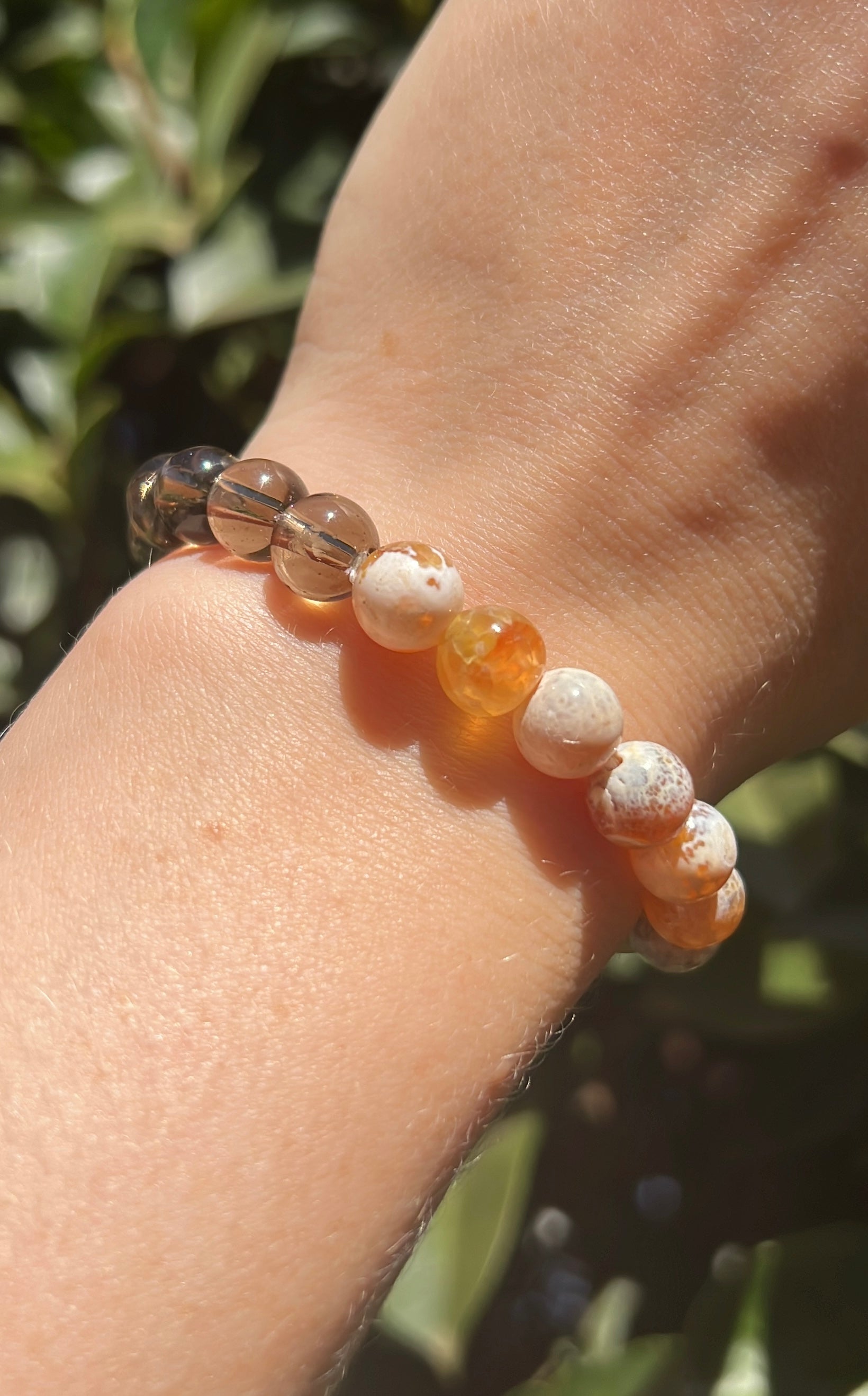Embrace energy and grounding with our Smoky Quartz x Brown Fire Agate Duality Bracelet.