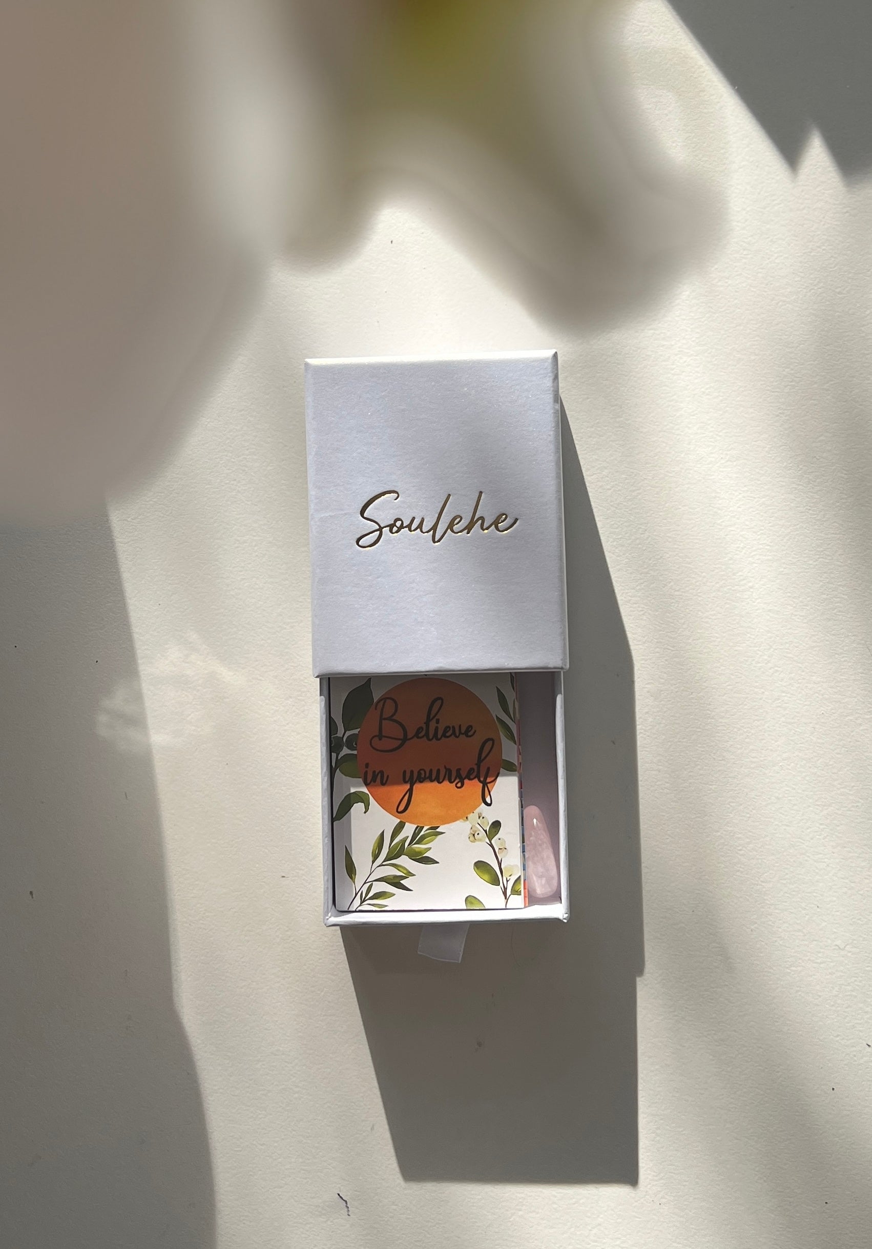 This set also includes a Rose Quartz crystal—known as the crystal of love and self-love, bringing harmony and peace. Rose quartz supports self-esteem, heals the heart, and helps release emotional wounds. The crystal is a perfect addition to these cards, offering love and inner balance for each day.