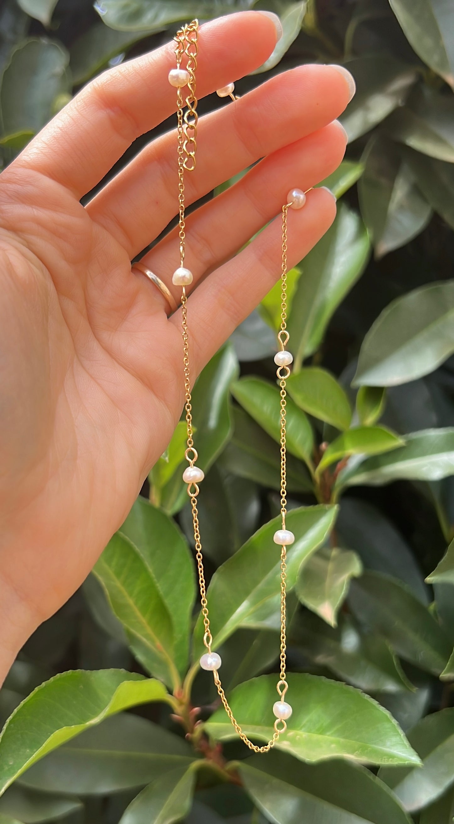 This necklace length is adjustable from 35cm to 40cm