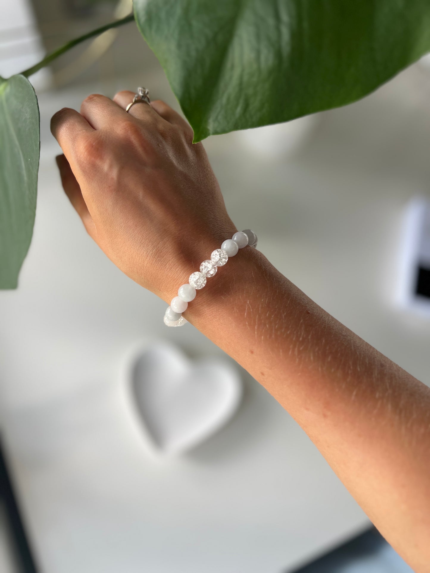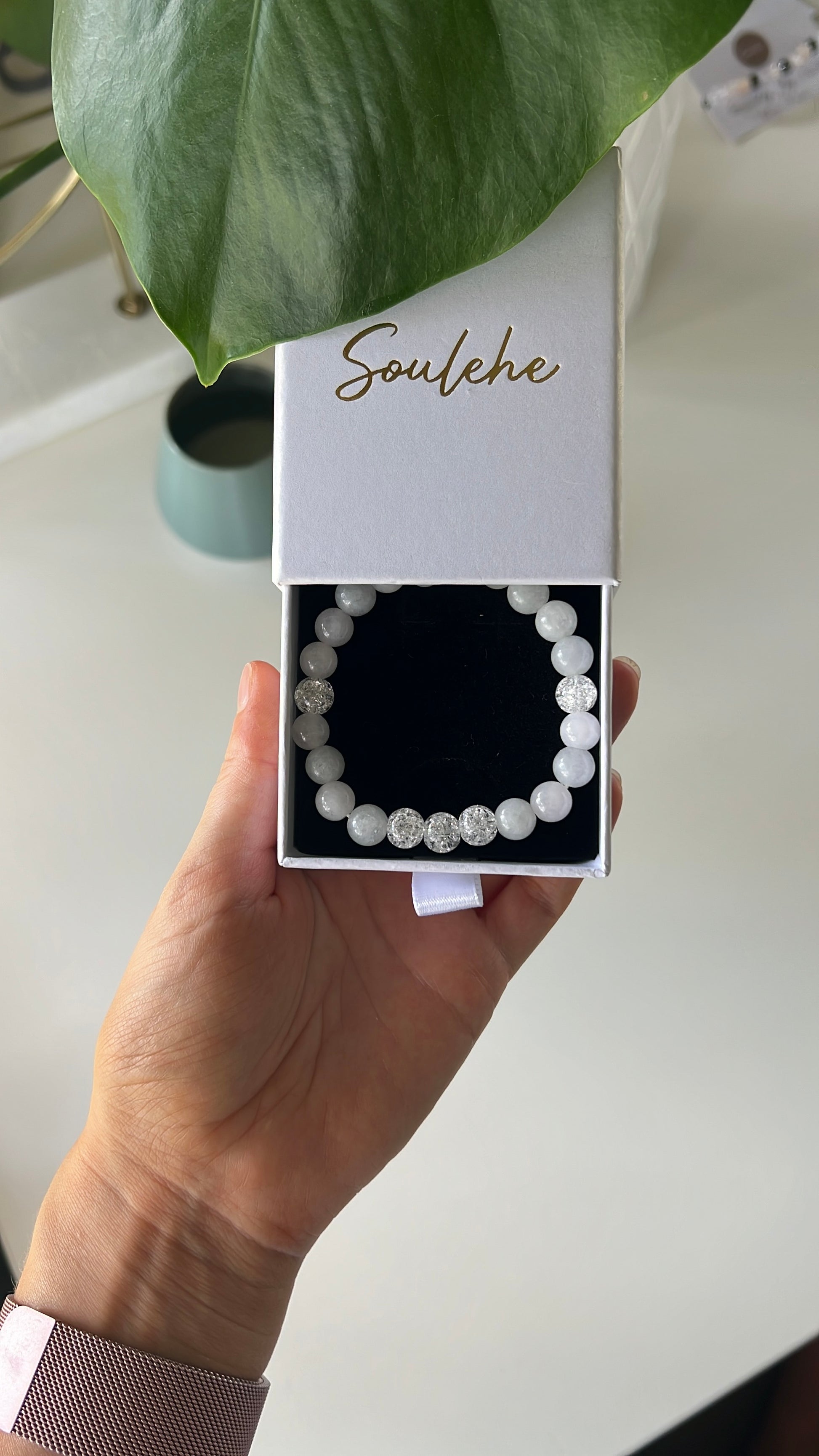 Aquamarine is known as the stone of eternal youth and happiness. Aquamarine is a calming balancing and healing stone. It is a great stone for you if you want less stress and to find peace with yourself. If you are in the process of self growth, want to grow spiritually and feel your intuition better than this stone is perfect for you. If you need help with communication or if your work revolves around communication then this bracelet is good for you because it helps with understanding. Aquamarine is closely connected to water's energy. If there is a lot of water in your life then Aquamarine will be your protection stone. Also this stone will help you get over water based fears.