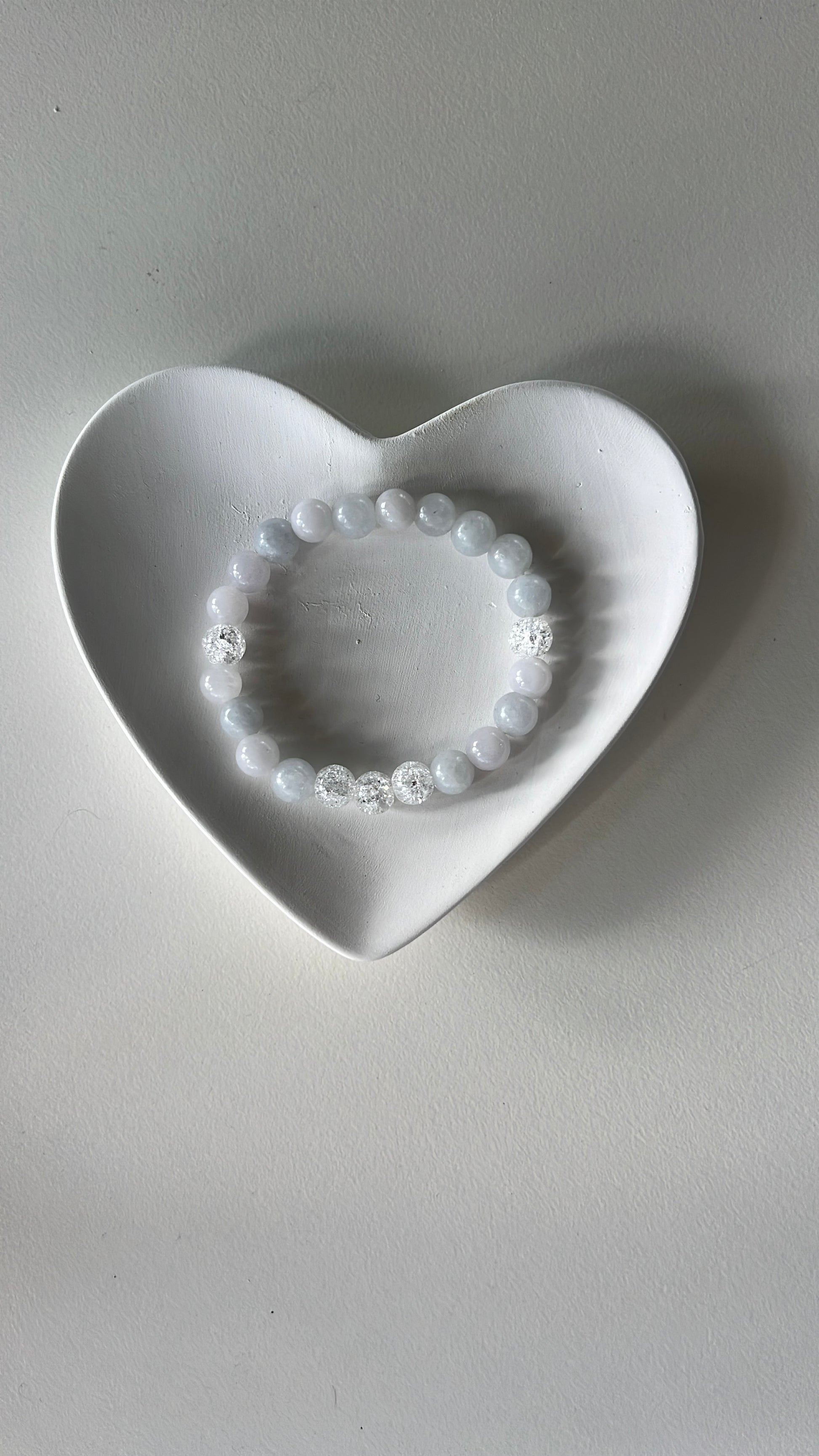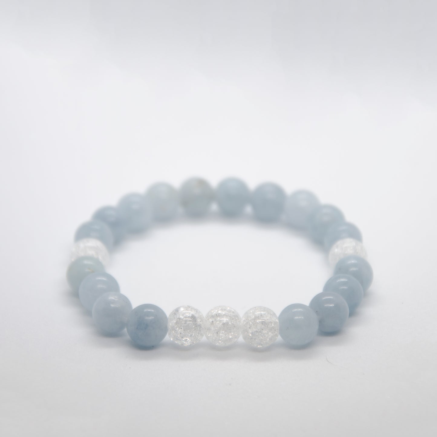 ◉ 8mm Natural Aquamarine ◉ 8mm Cracked Glass Bead ◉ 6mm Cracked Glass Bead