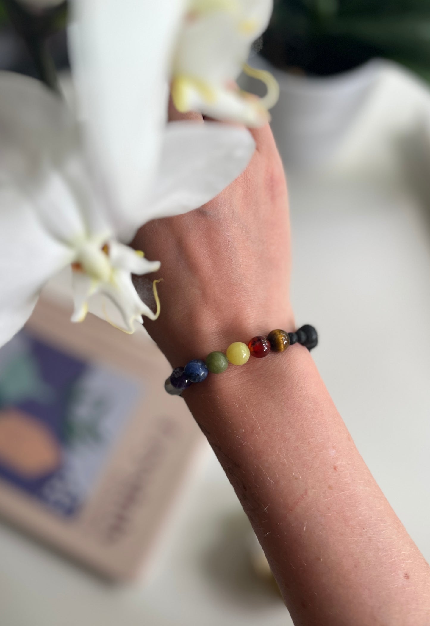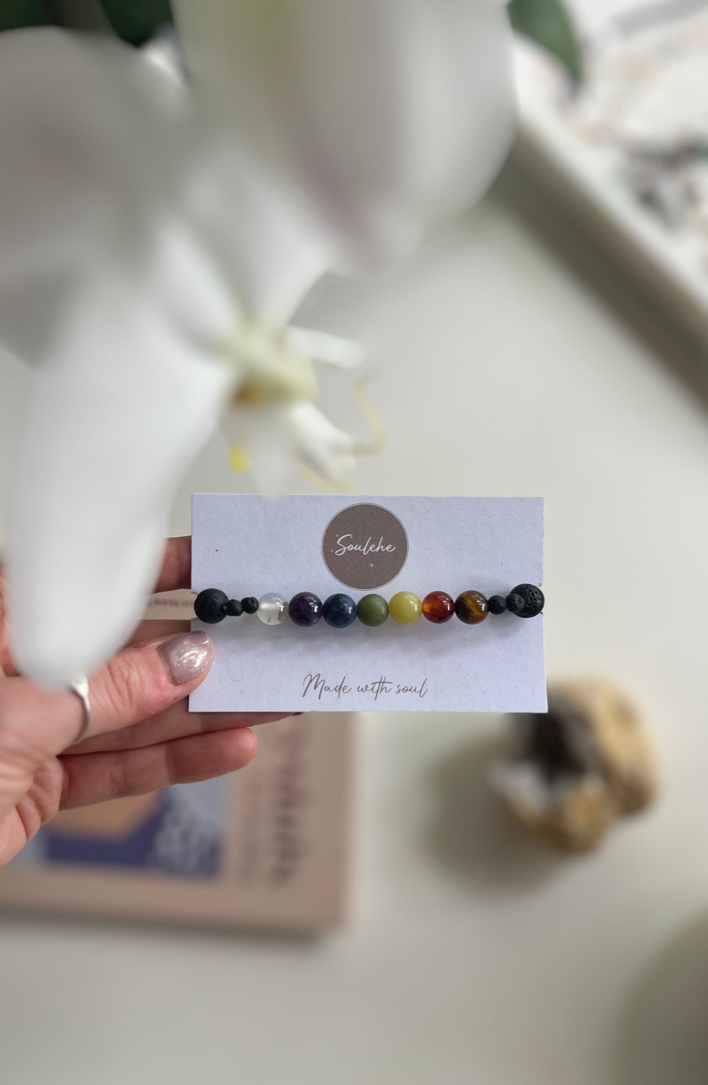 *The Crystals in the bracelet may differ in colour and qualities a bit, but it will always have crystals for all 7 chakras that will balance you.