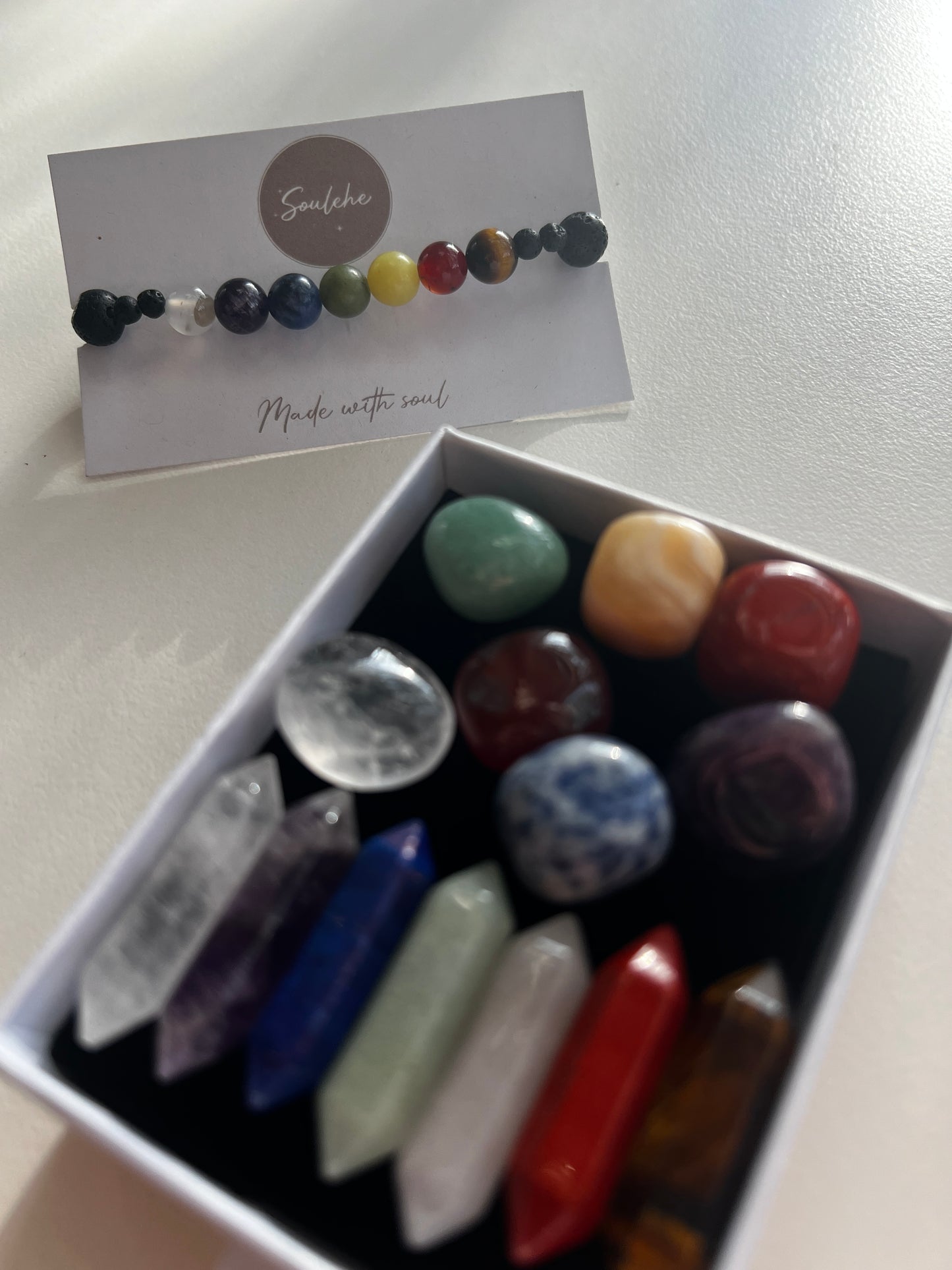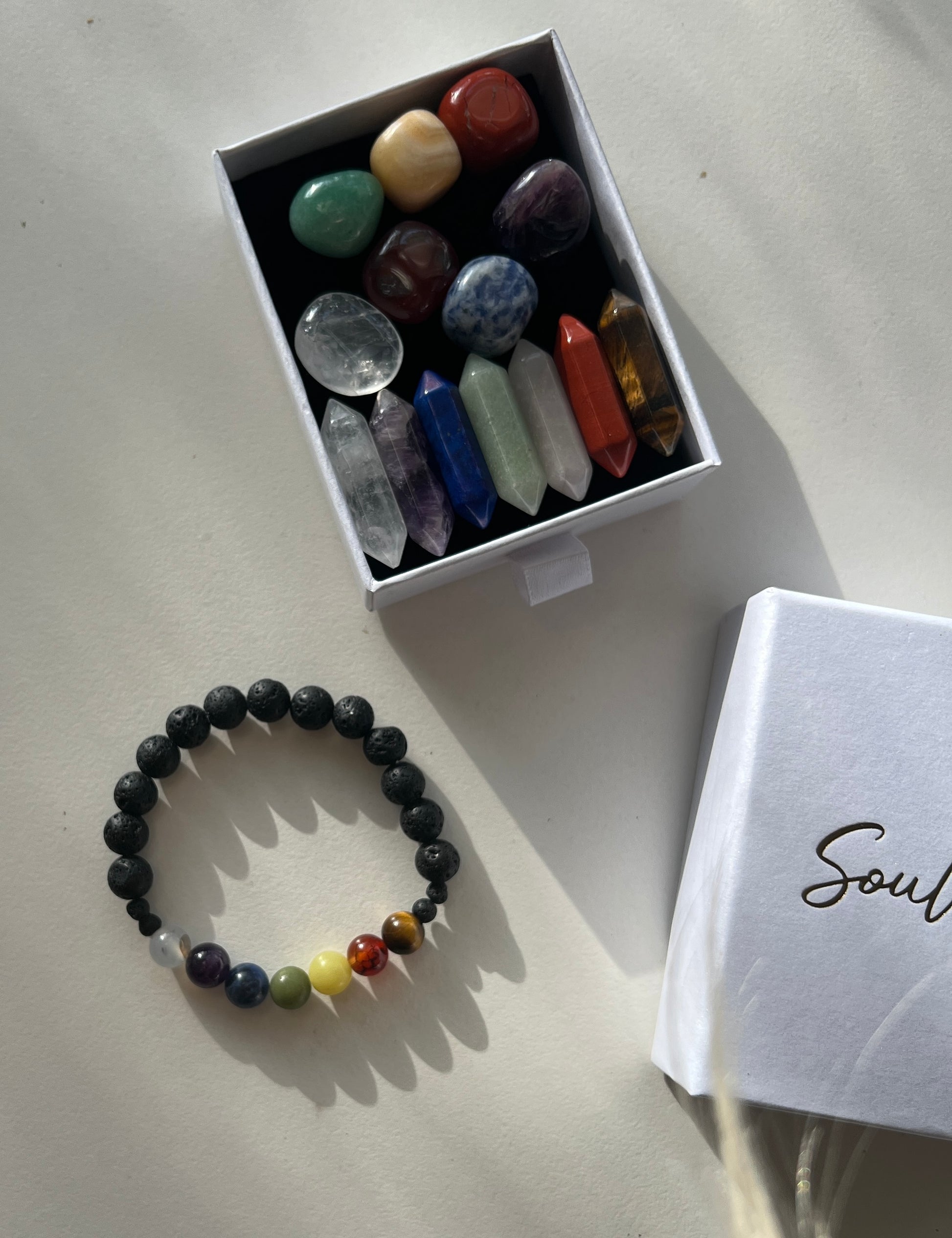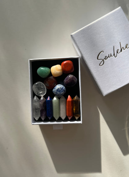 This powerful set includes a Chakra Bracelet and a Set of 14 Chakra Stones.