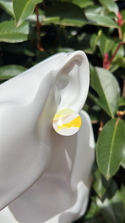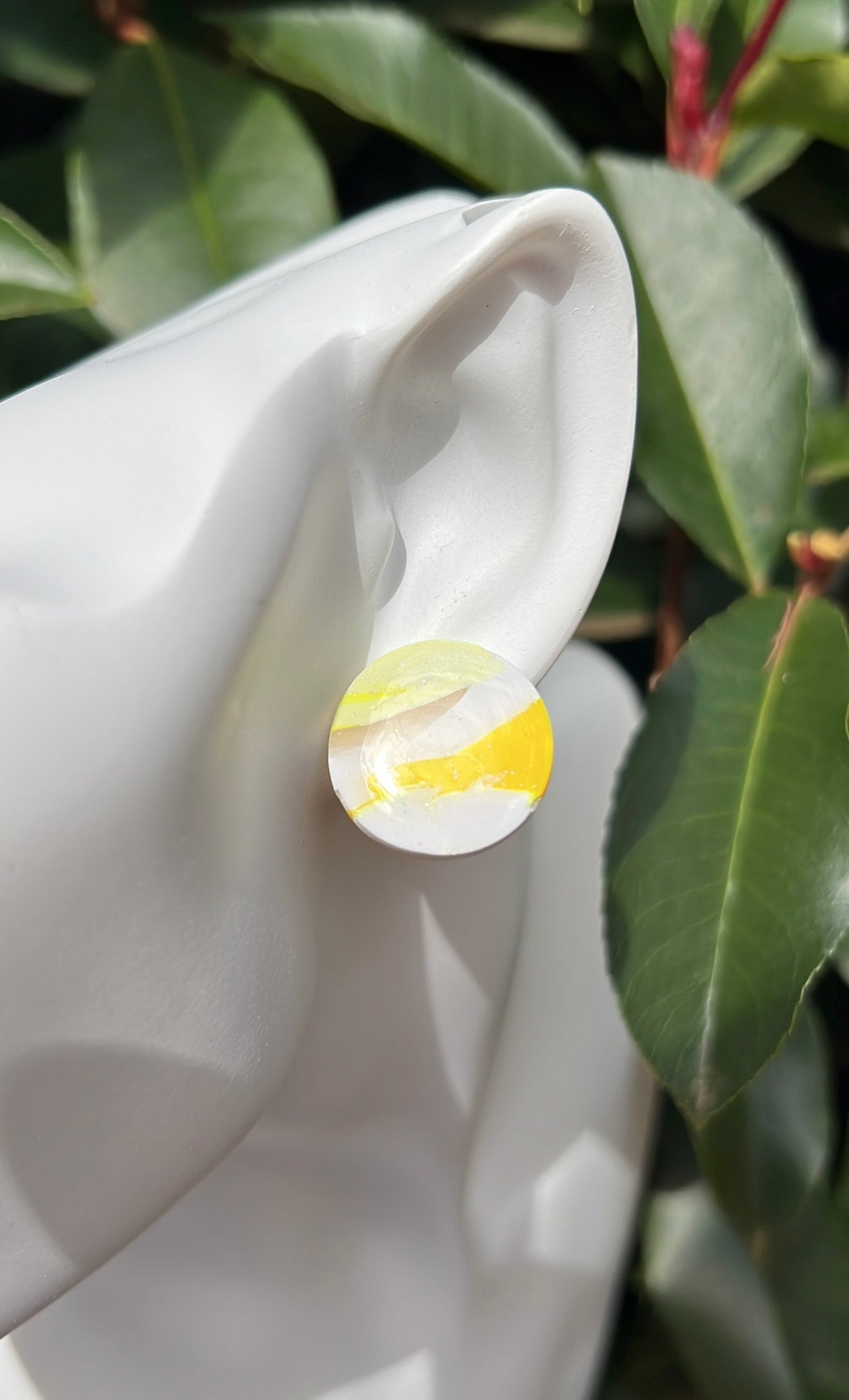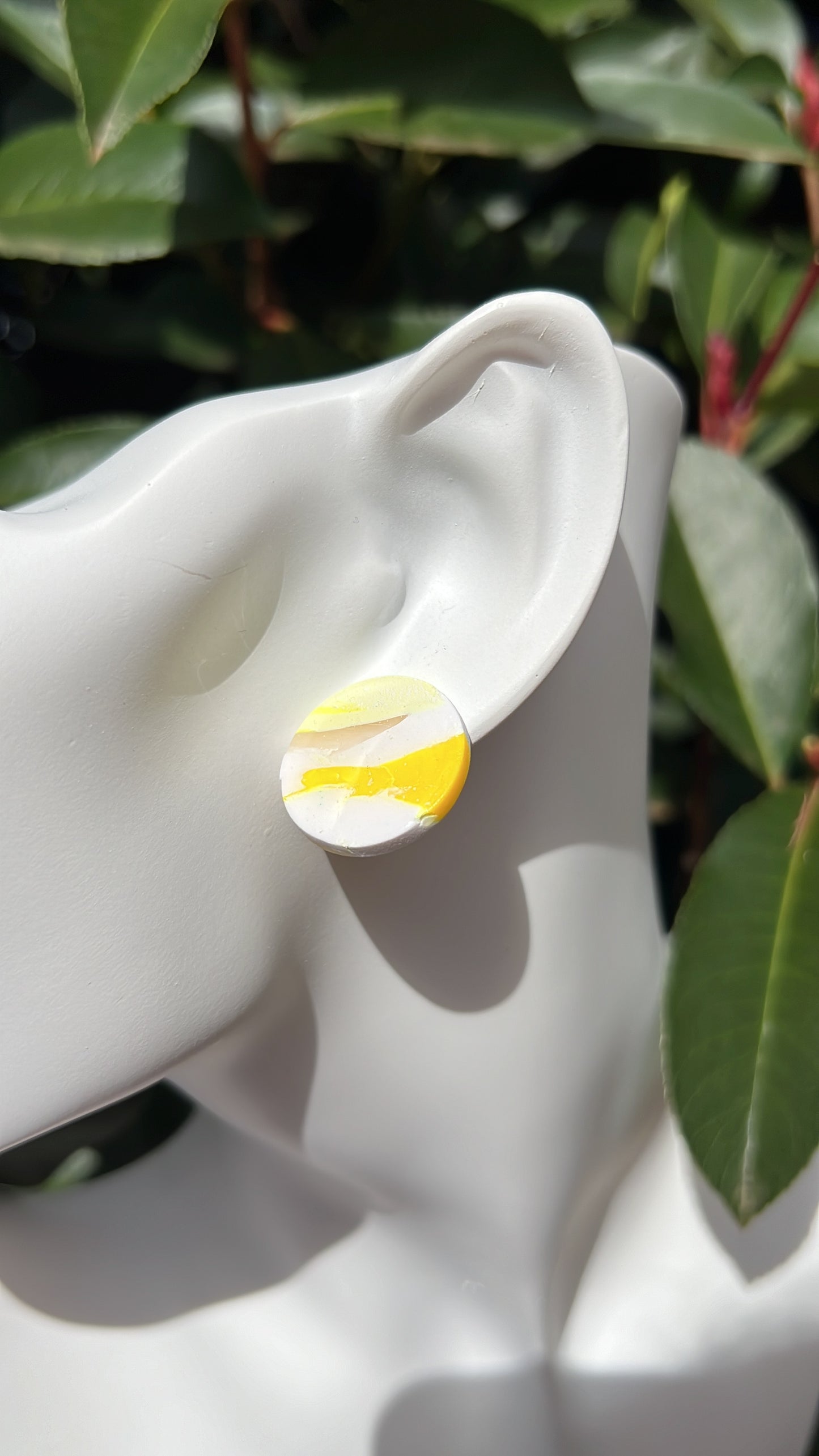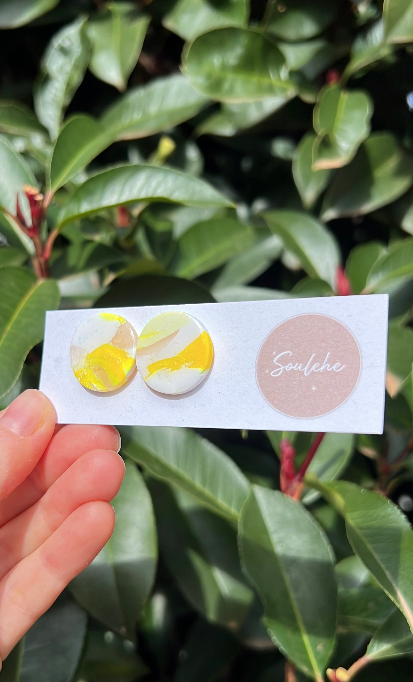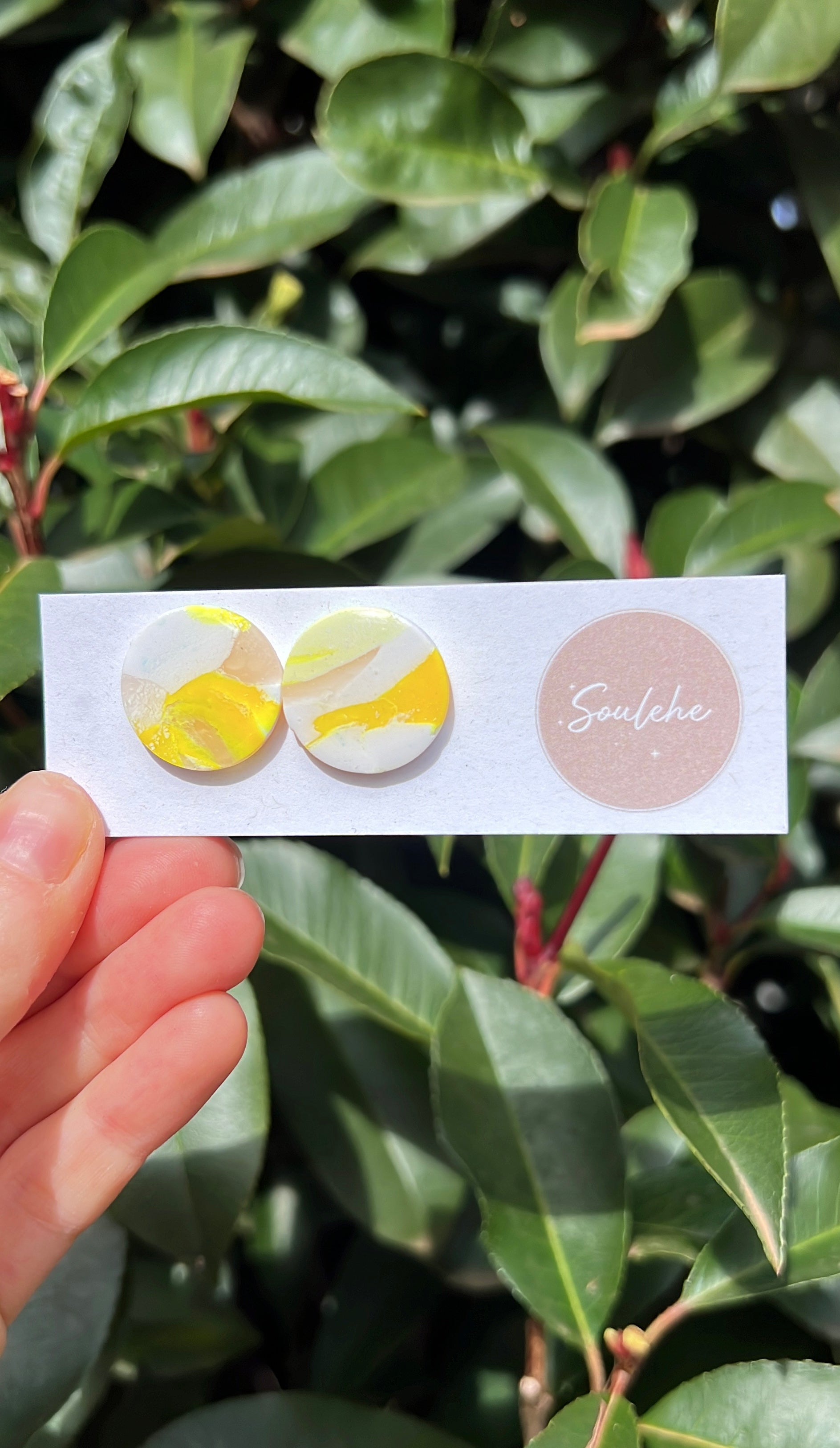 All of the Polymer Clay earrings are handcrafted. Some earrings may include gold or silver leaves, recycled make-up or a clear resin on them to give them a nice shine!