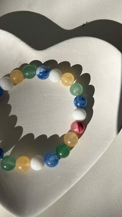 Citrine brings joy and self-belief, Green Aventurine adds luck and creativity, Blue Fire Dragon supports strength and endurance, and White Agate provides protection and emotional harmony.
