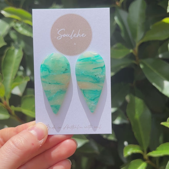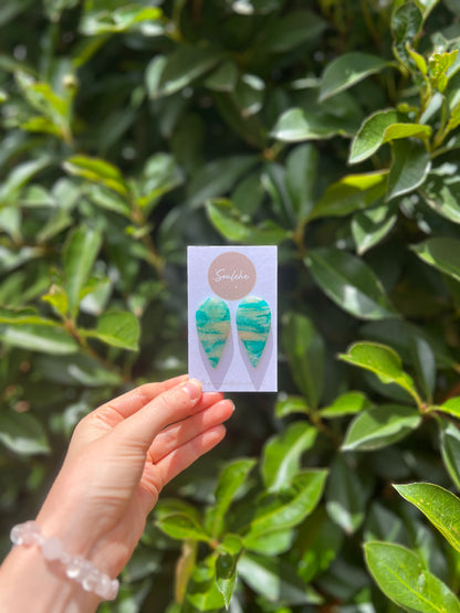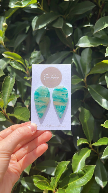 All of the Polymer Clay earrings are handcrafted. Some earrings may include gold or silver leaves, recycled make-up or a clear resin on them to give them a nice shine!