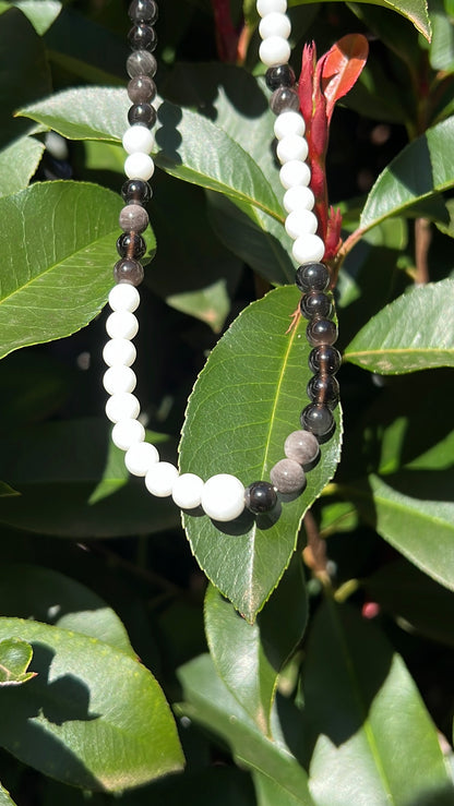 Embrace balance and protection with our Guardian Necklace, featuring Obsidian and White Agate stones.