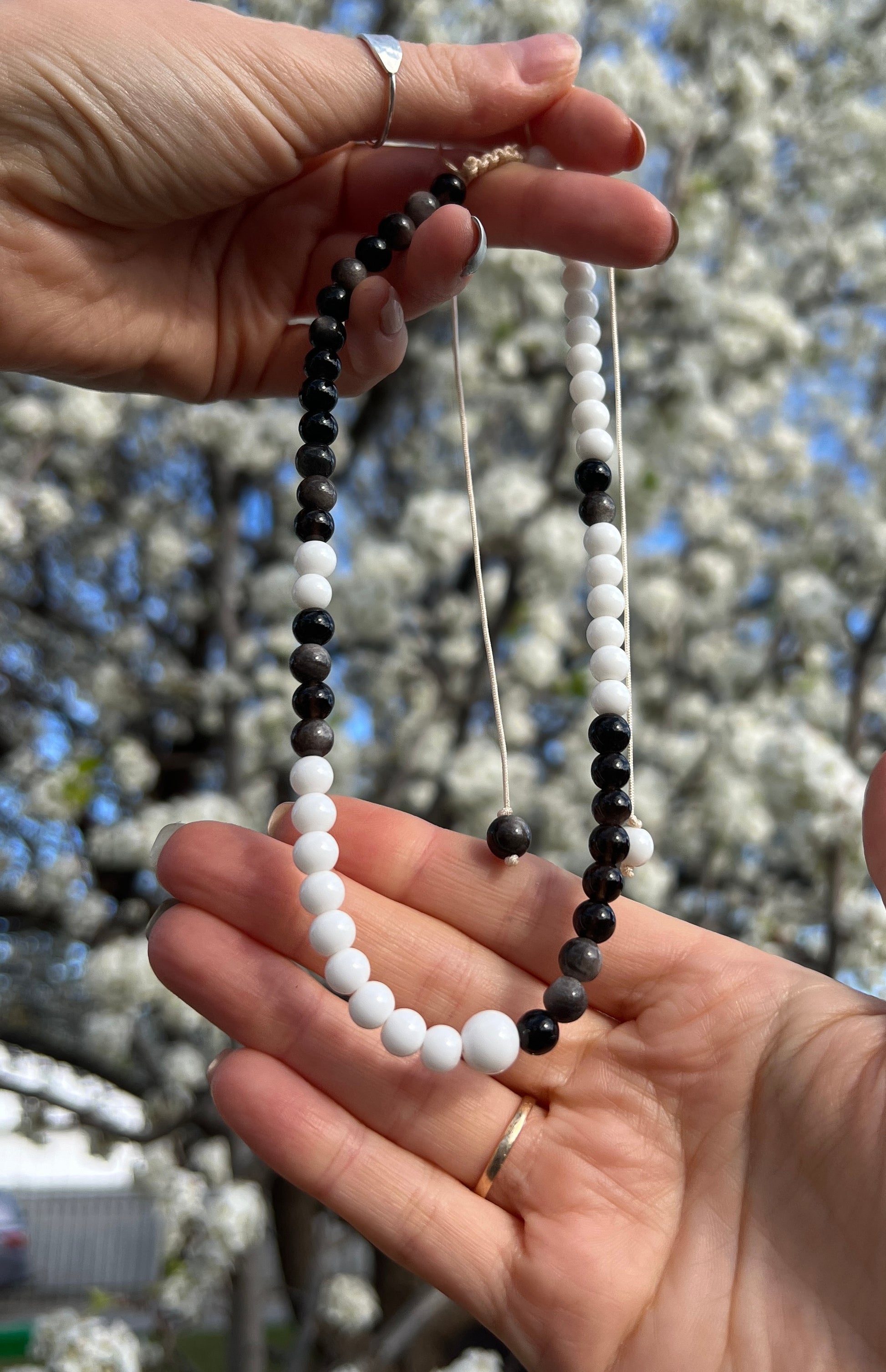 Truth, Grounding, Protection, Balance • White Agate & Obsidian