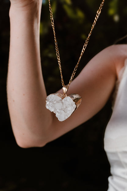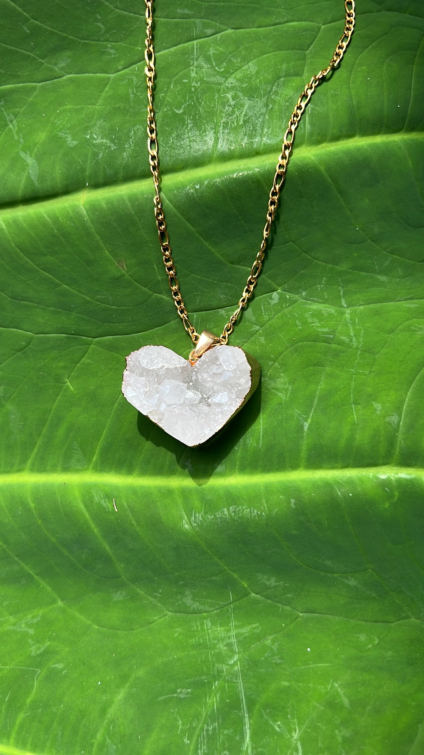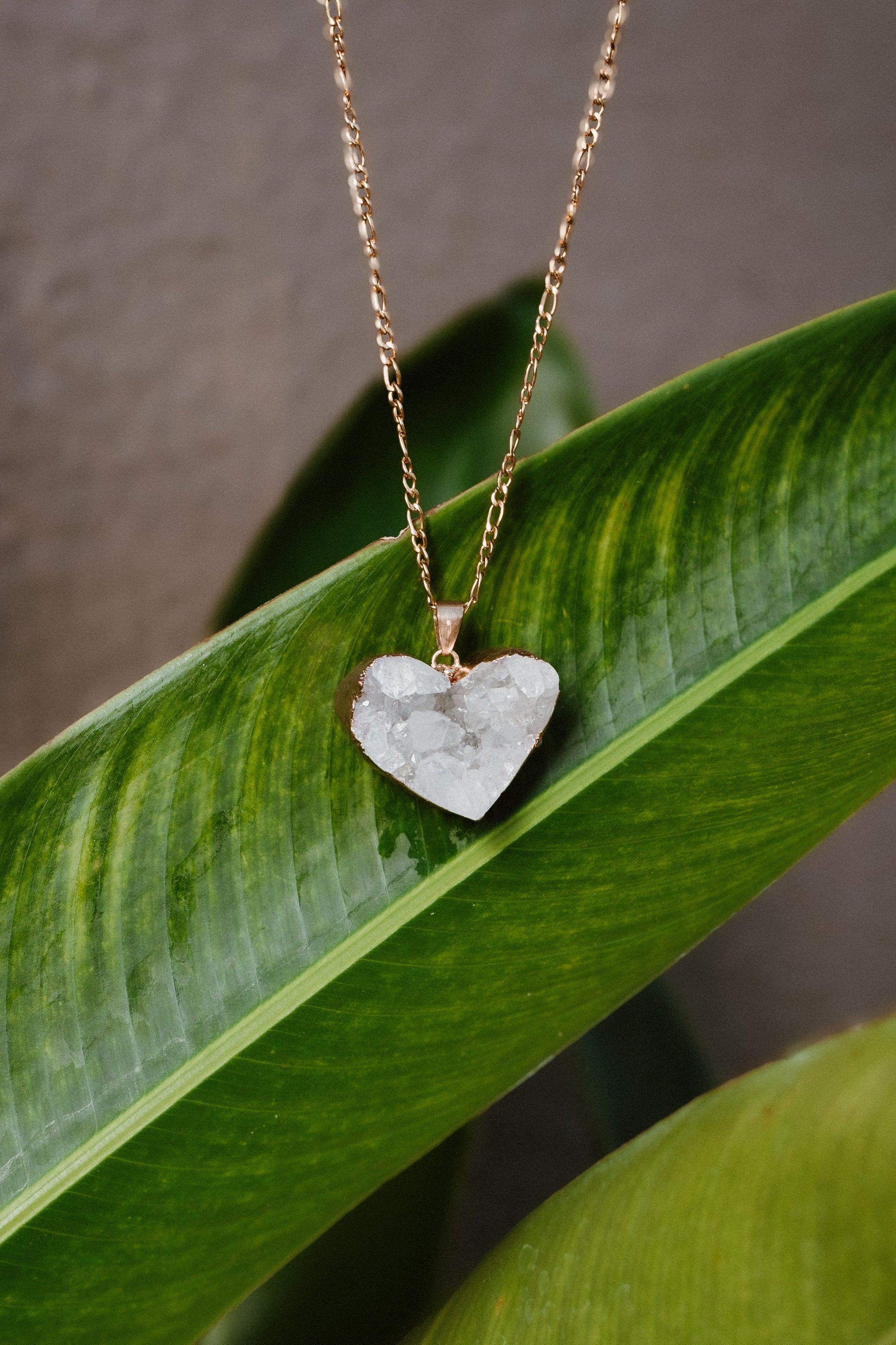 Introducing our Druzy White Agate Heart Necklace, known for peace, hope, and freedom.