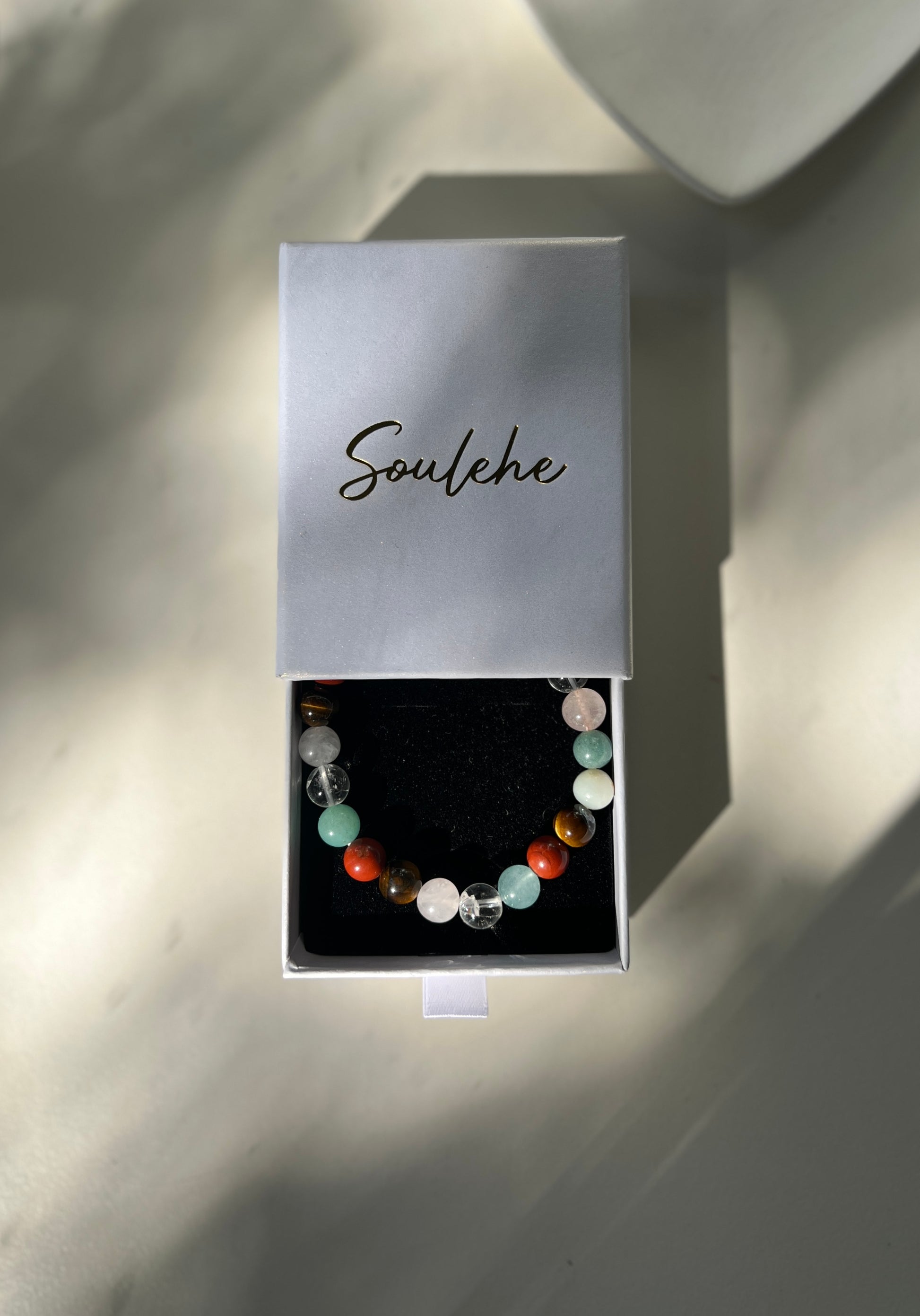 This bracelet combines five powerful crystals to support courage, self-expression, and love for Leo in the upcoming year.