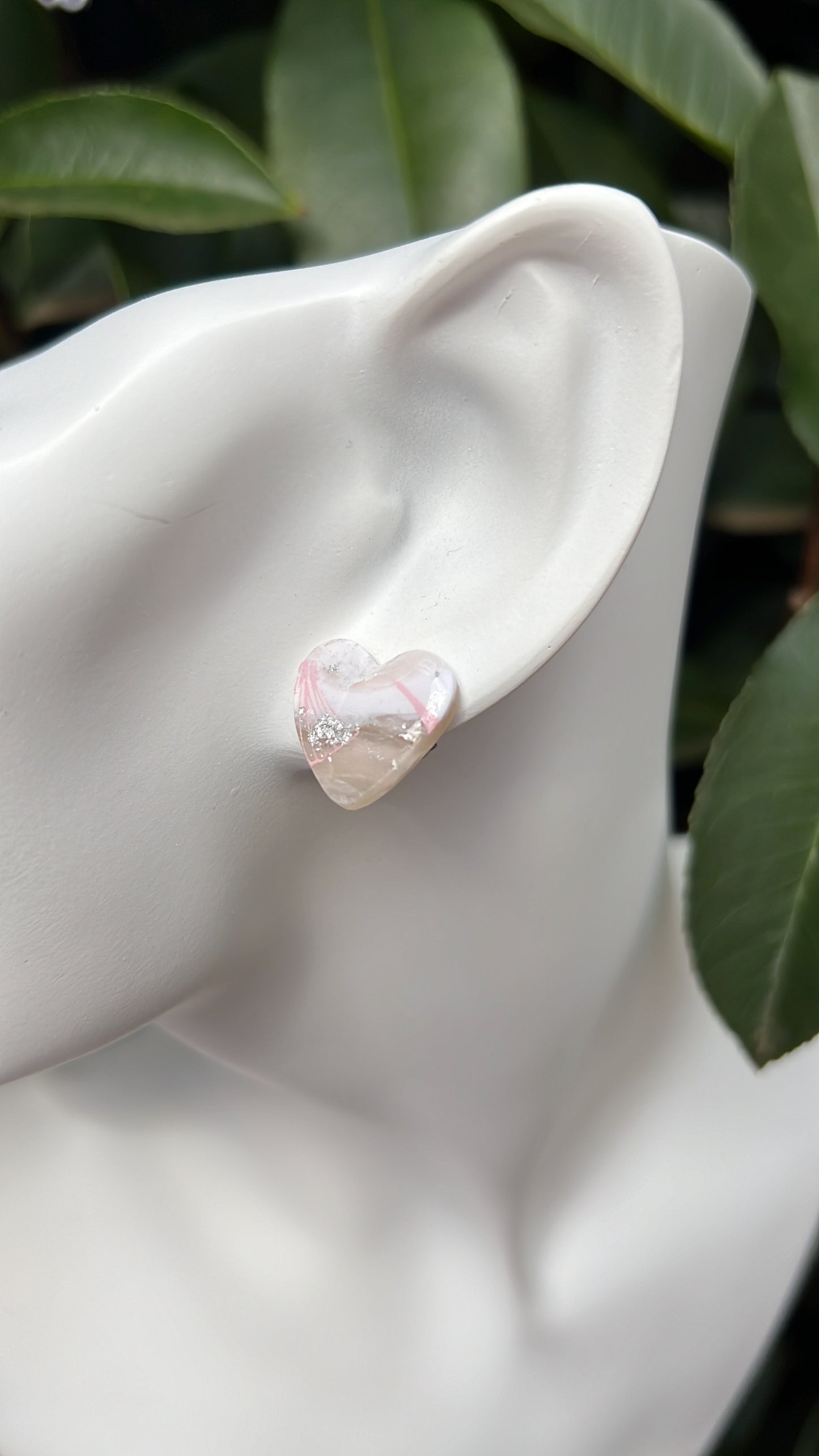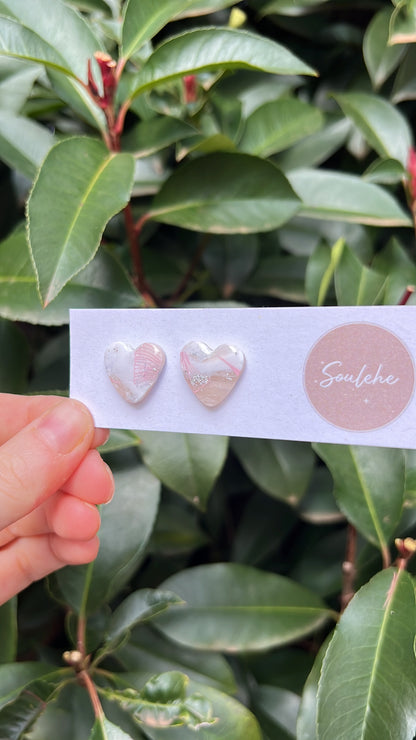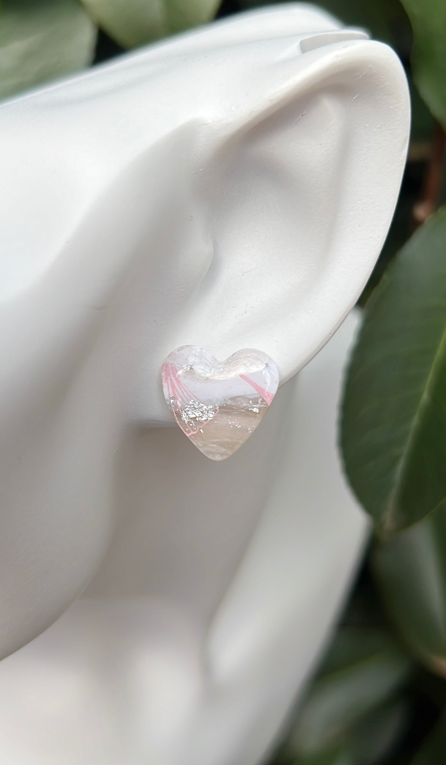 All of the Polymer Clay earrings are handcrafted. Some earrings may include gold or silver leaves, recycled make-up or a clear resin on them to give them a nice shine!