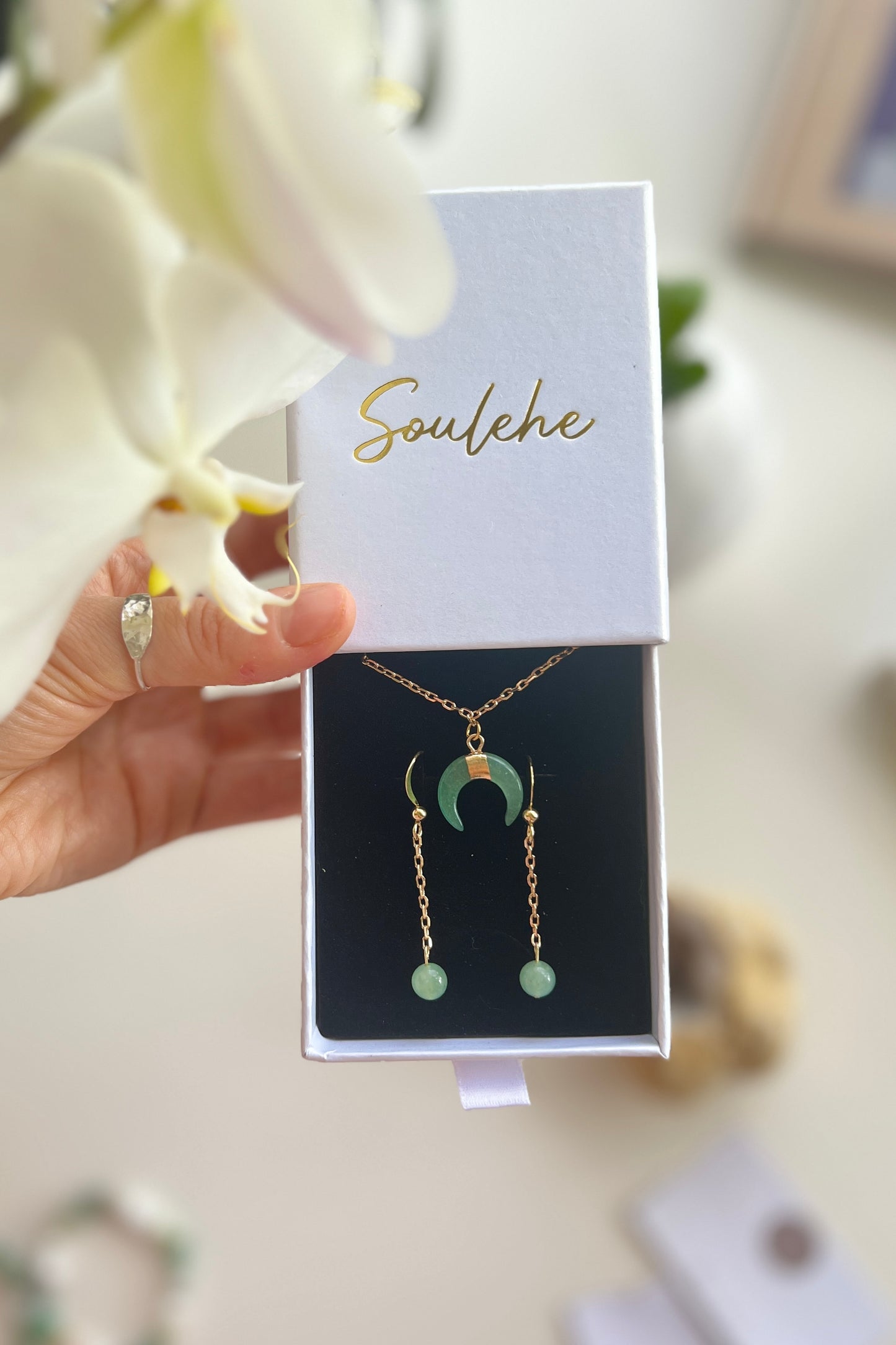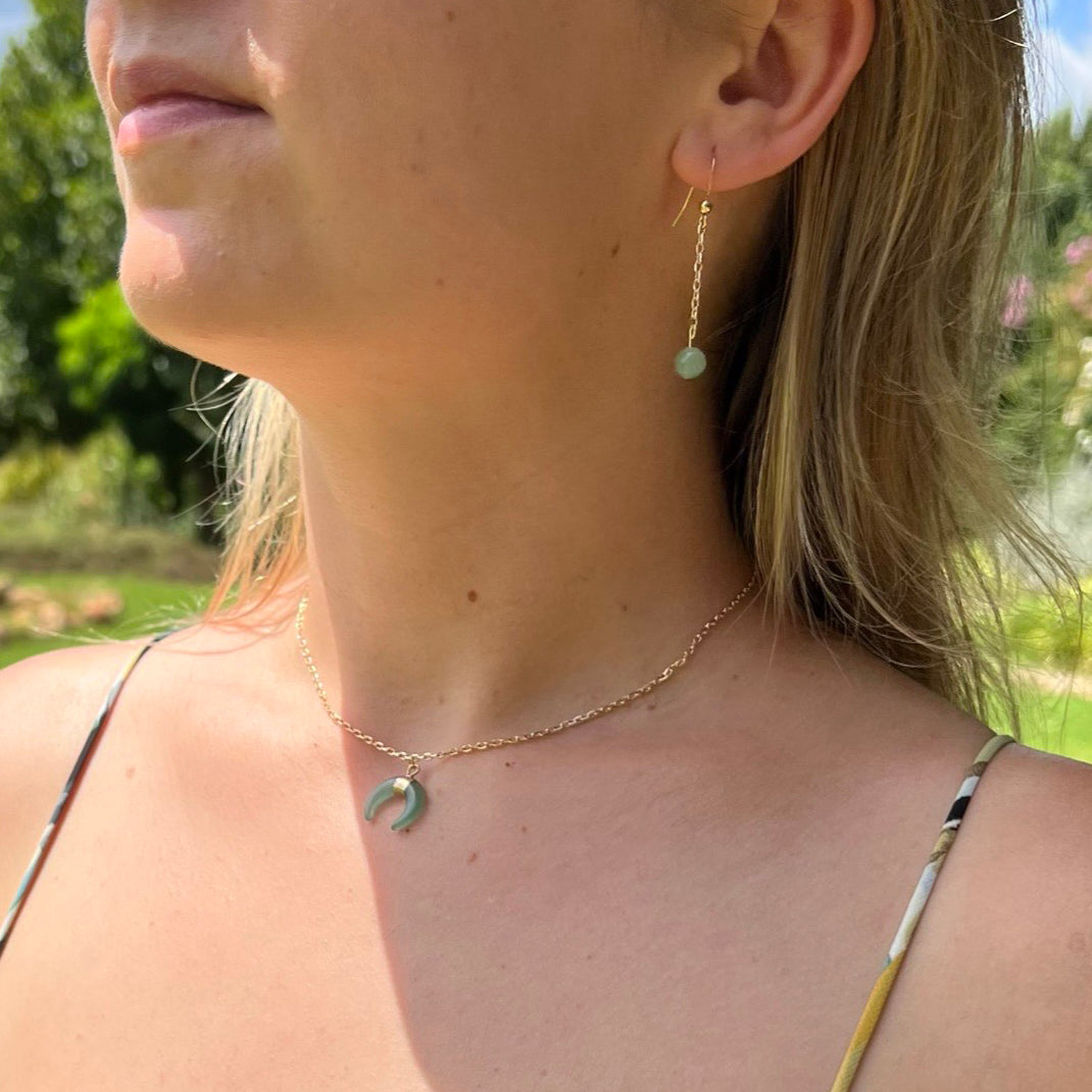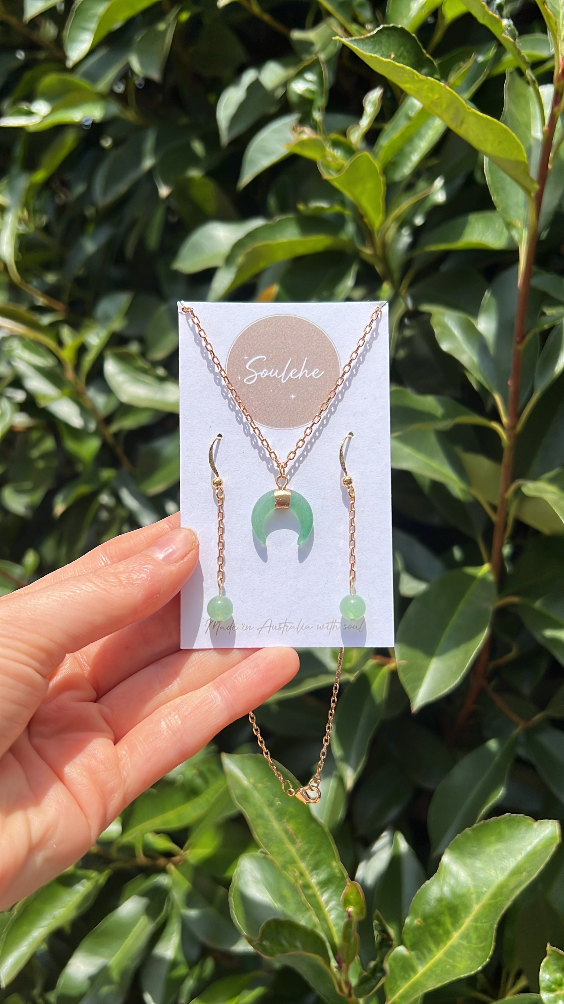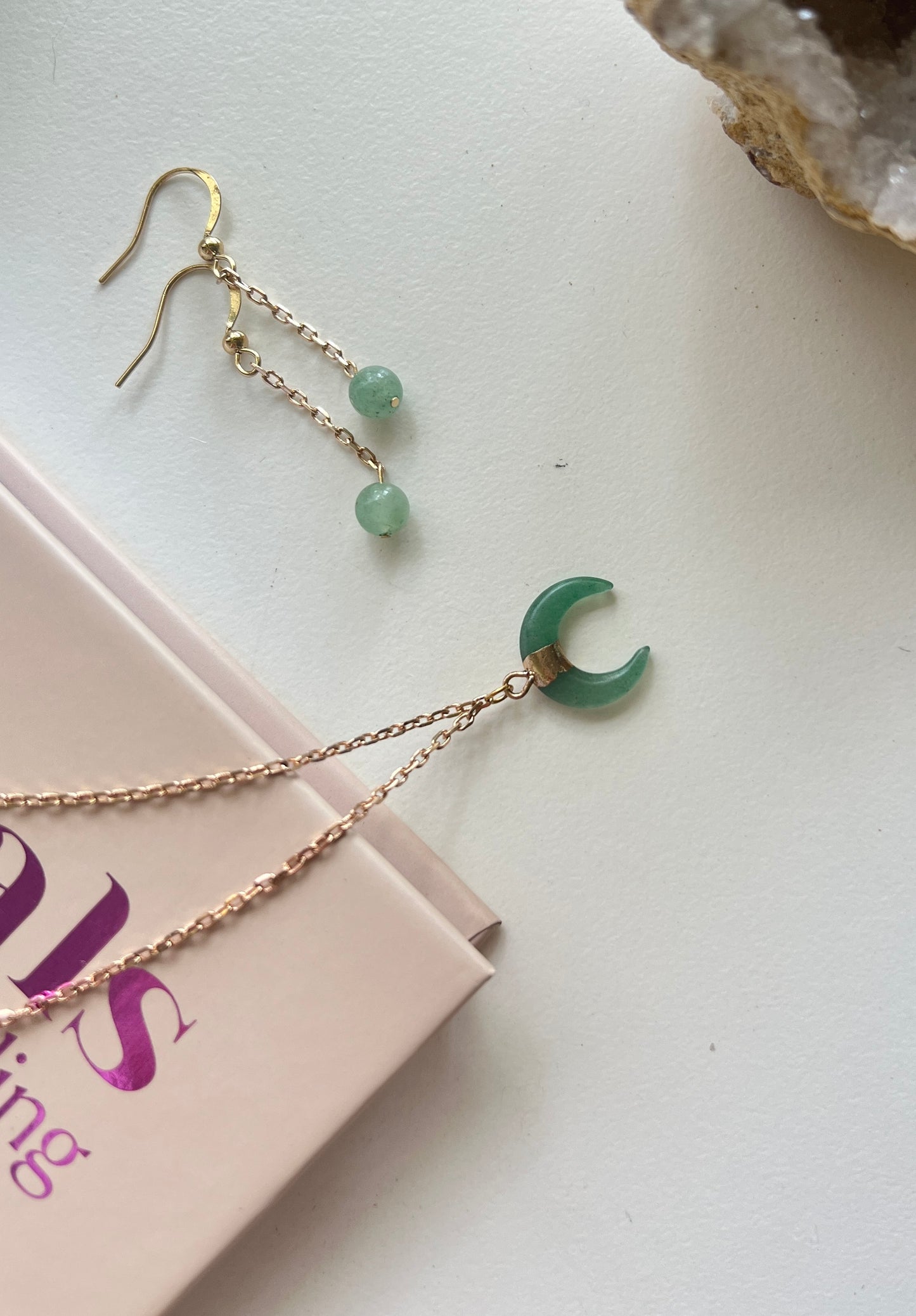 Green Moon • Necklace • Green Aventurine & 14K Gold Plated
