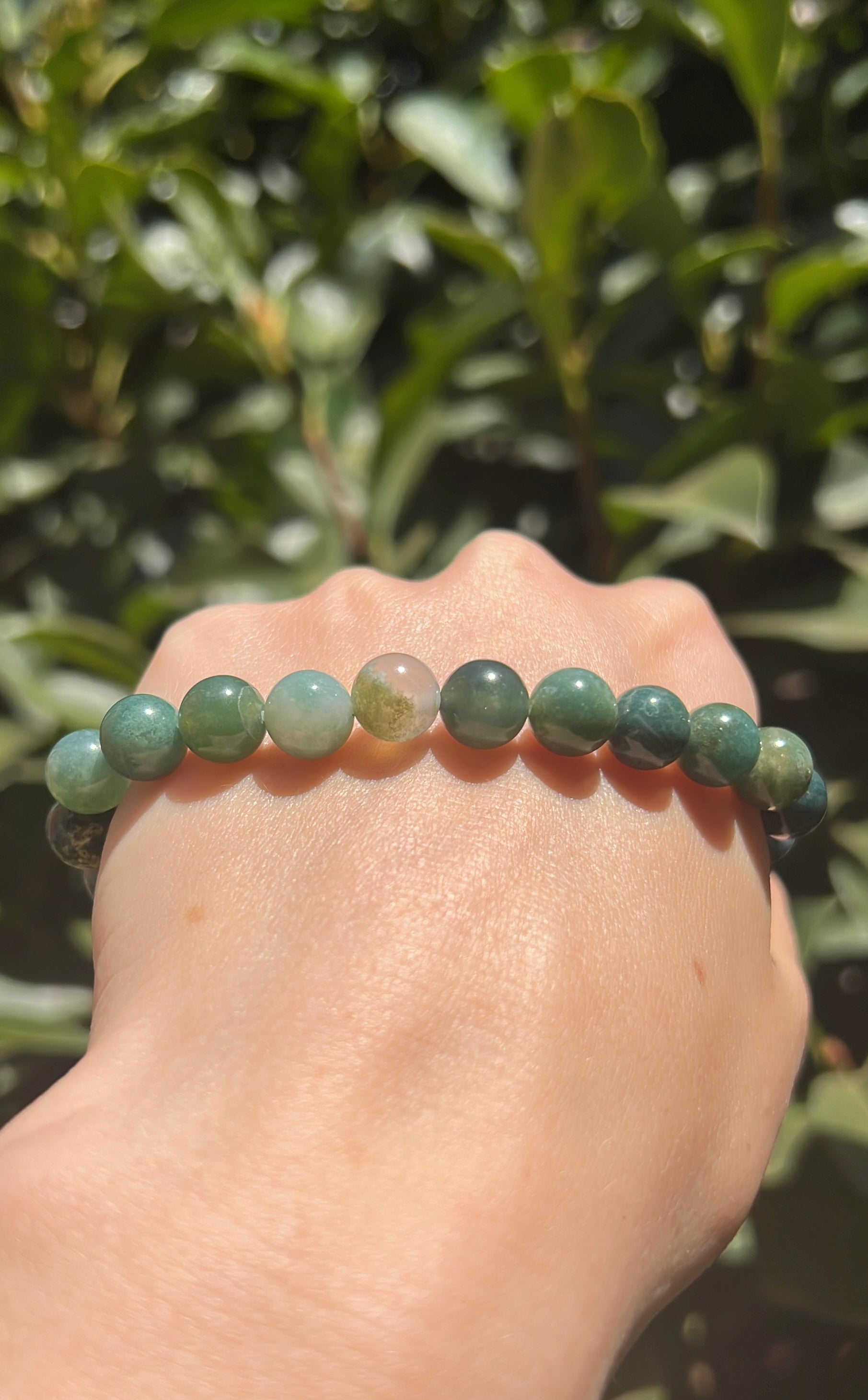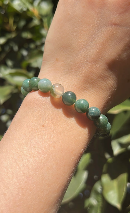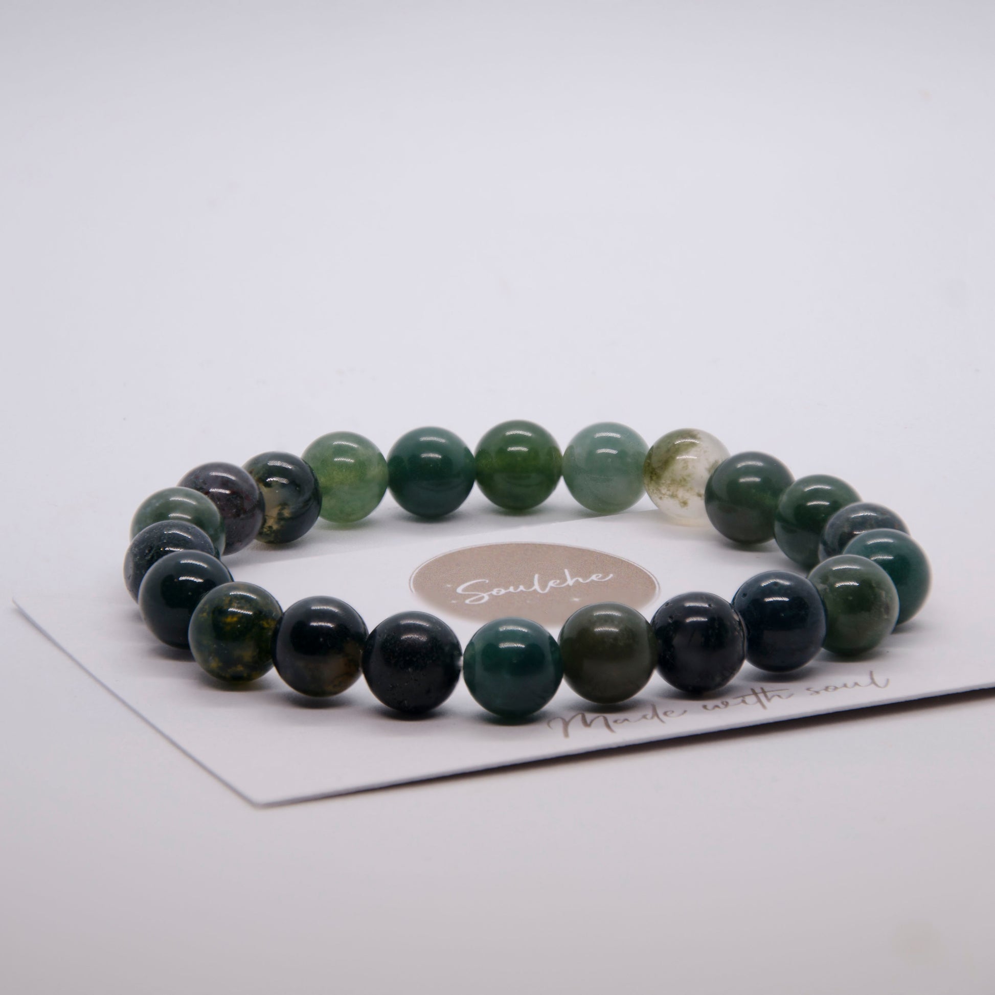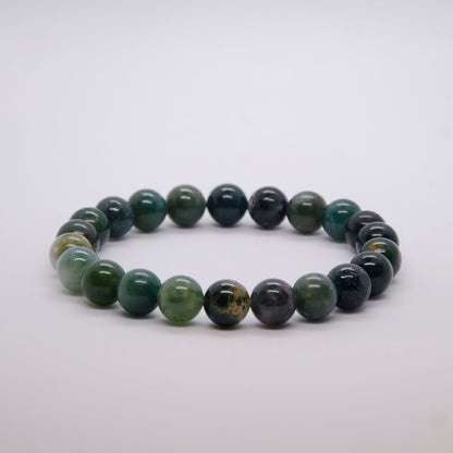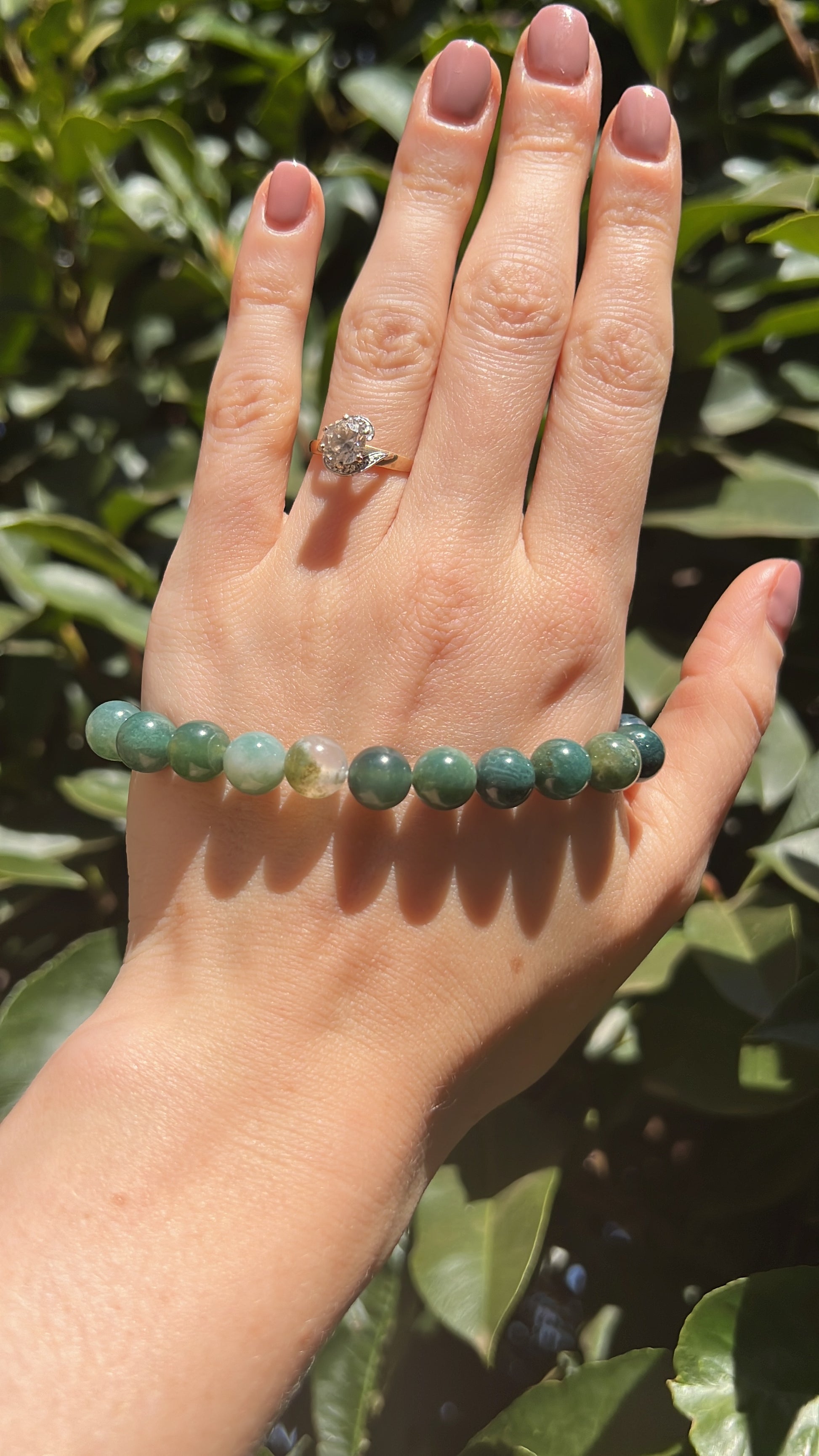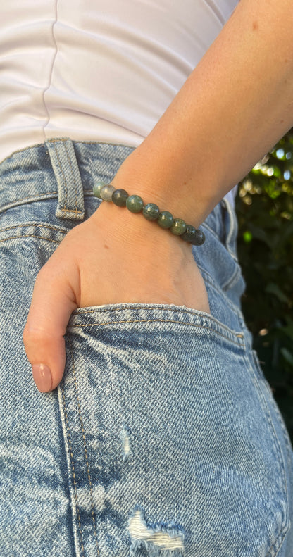 Discover the grounding beauty of the Pure Moss Agate Bracelet.
