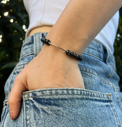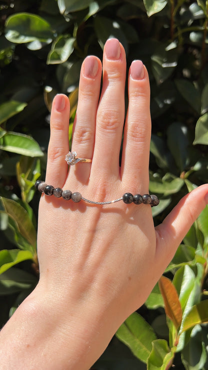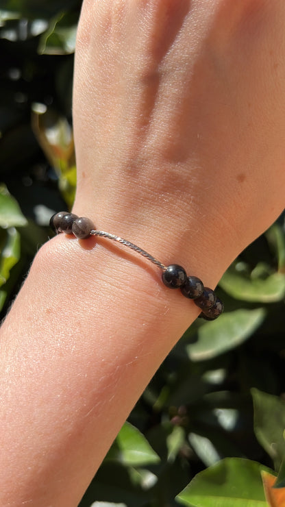 ◉ 6mm Natural Silver Obsidian ◉ 925 Sterling Silver