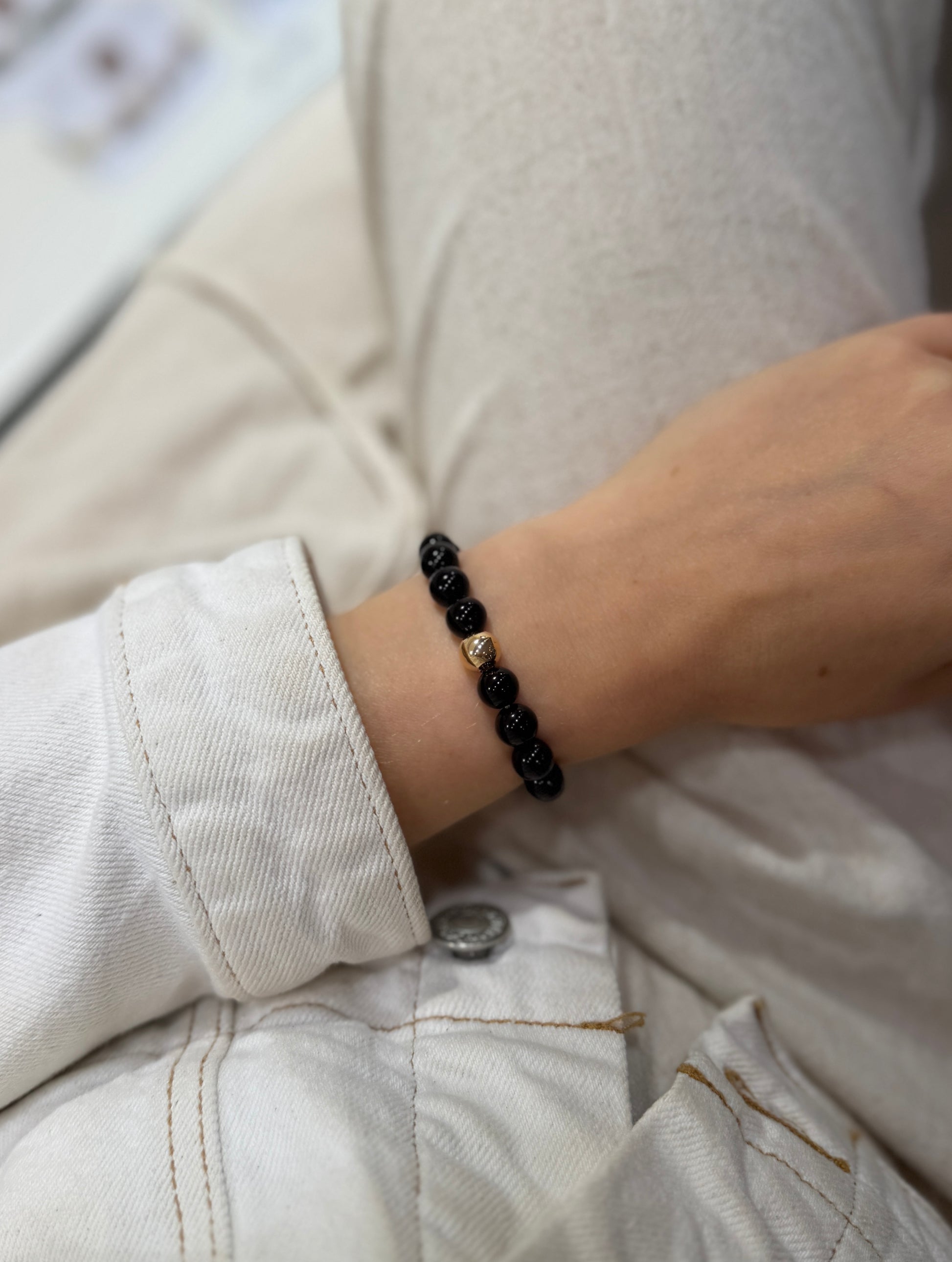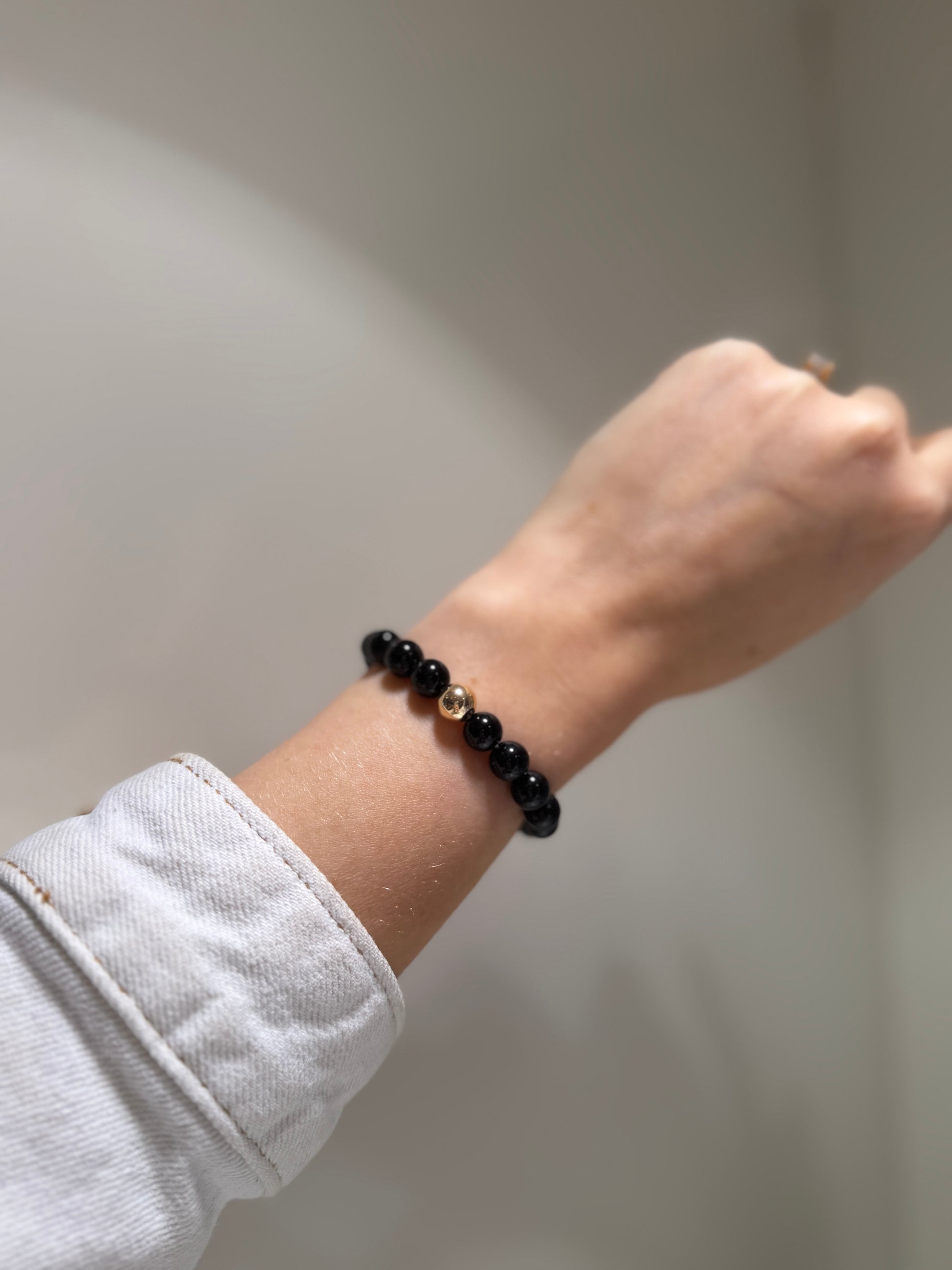 Silver Obsidian enhances spiritual communication and promotes truth and growth, healing the soul and reviving your life force. The gold bead adds a touch of luxury while emphasizing the bracelet's protective qualities. Perfect for those seeking a harmonious balance between elegance and spiritual cleansing.