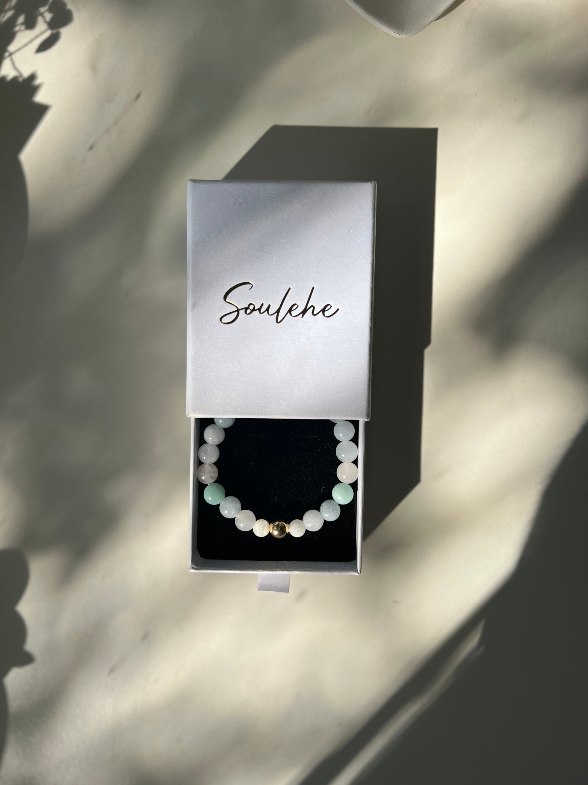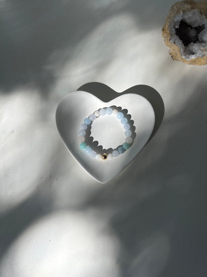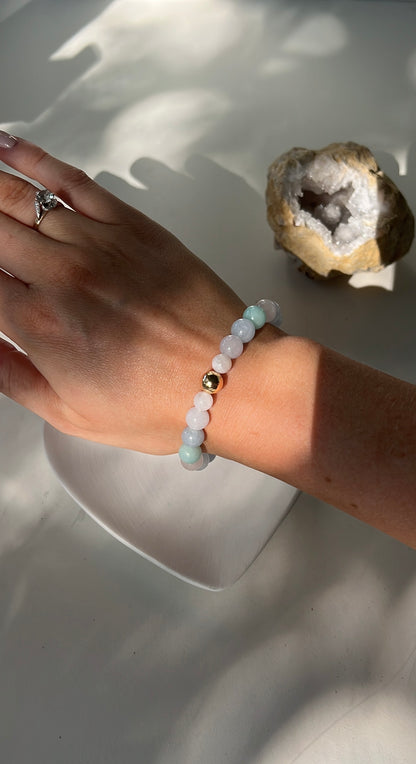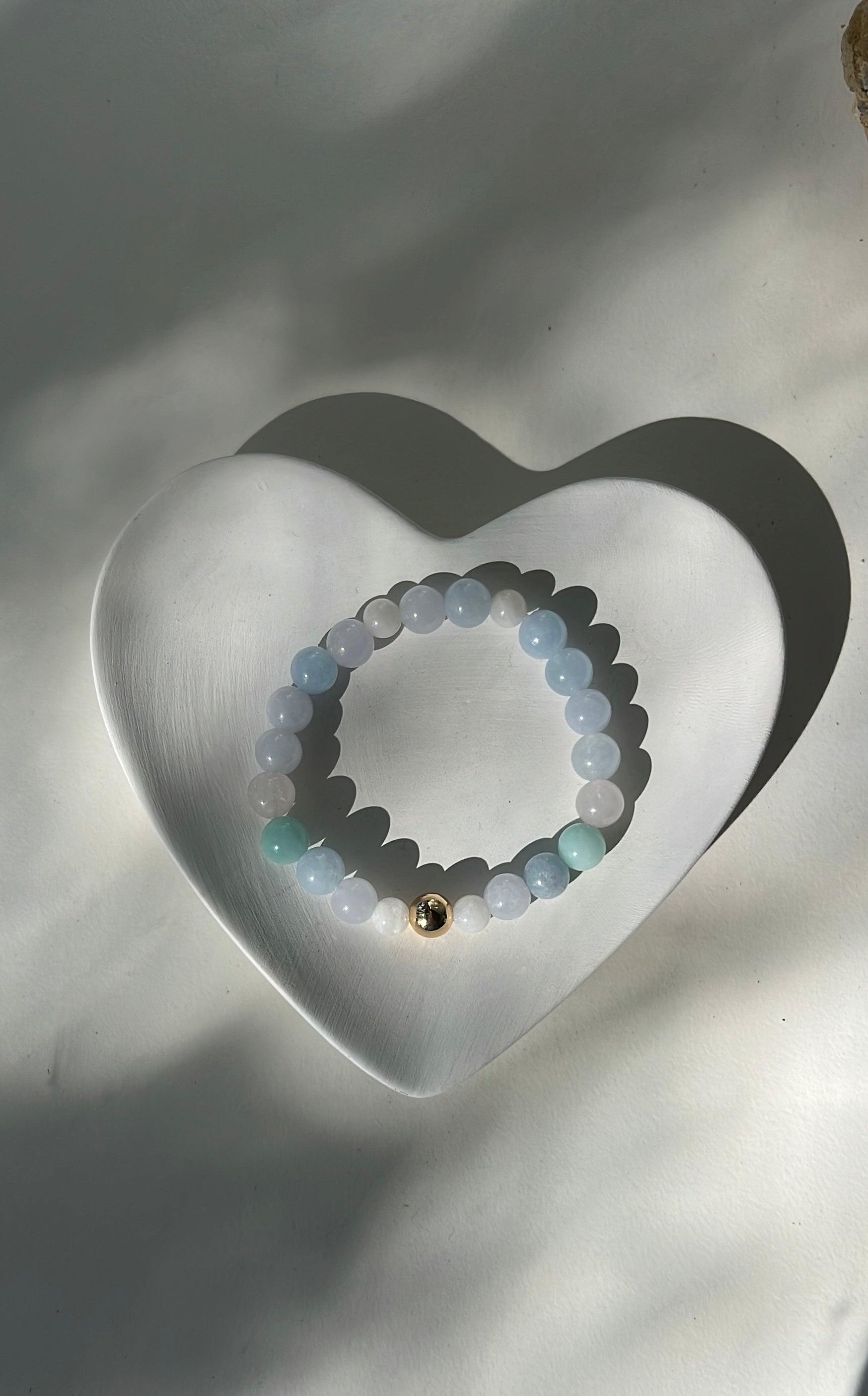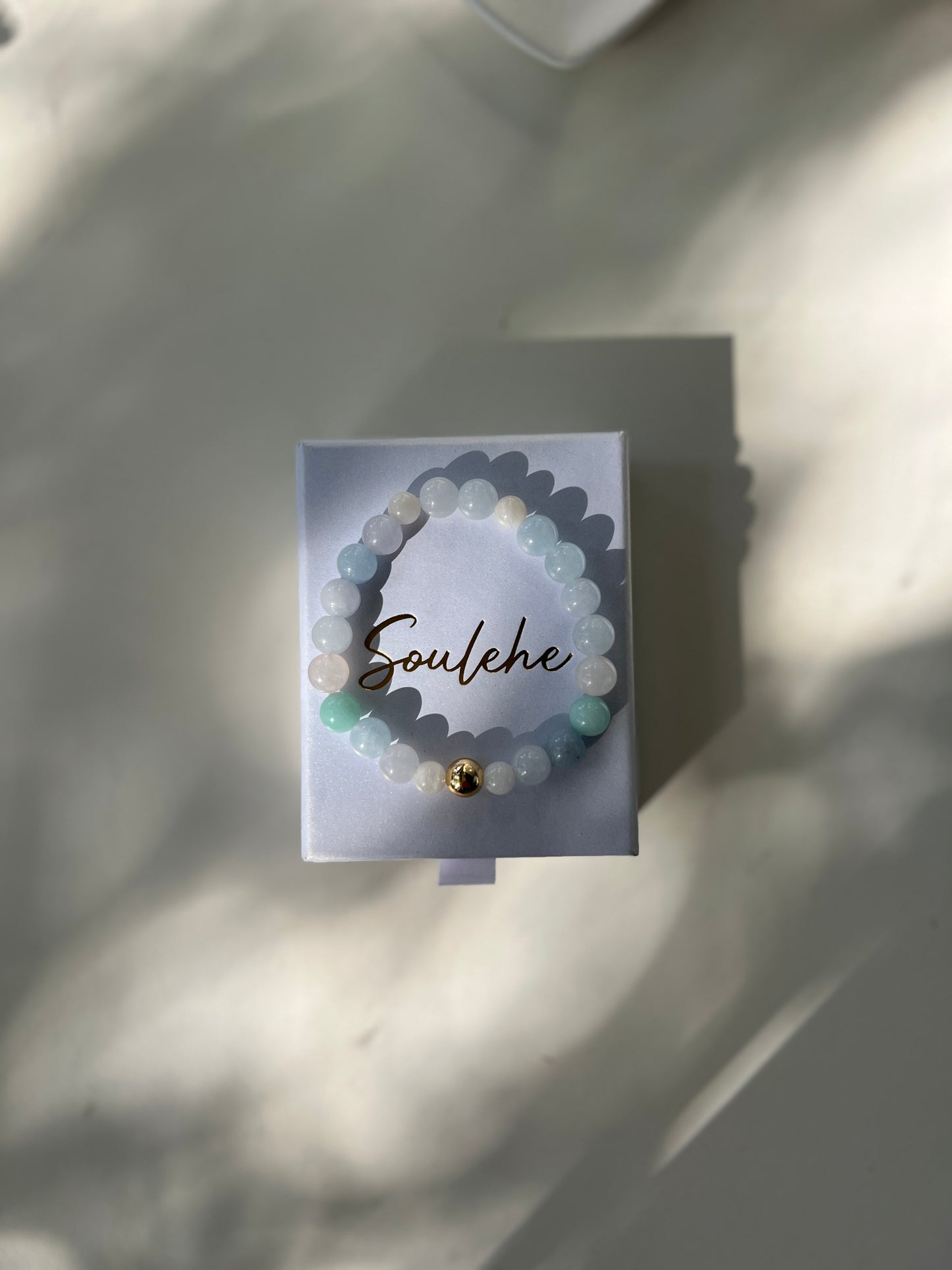 Created with Pisces in mind , this bracelet combines Aquamarine, Amazonite, Moonstone, and Rose Quartz—each stone chosen for its ability to enhance intuition, emotional balance, love, and spiritual growth.