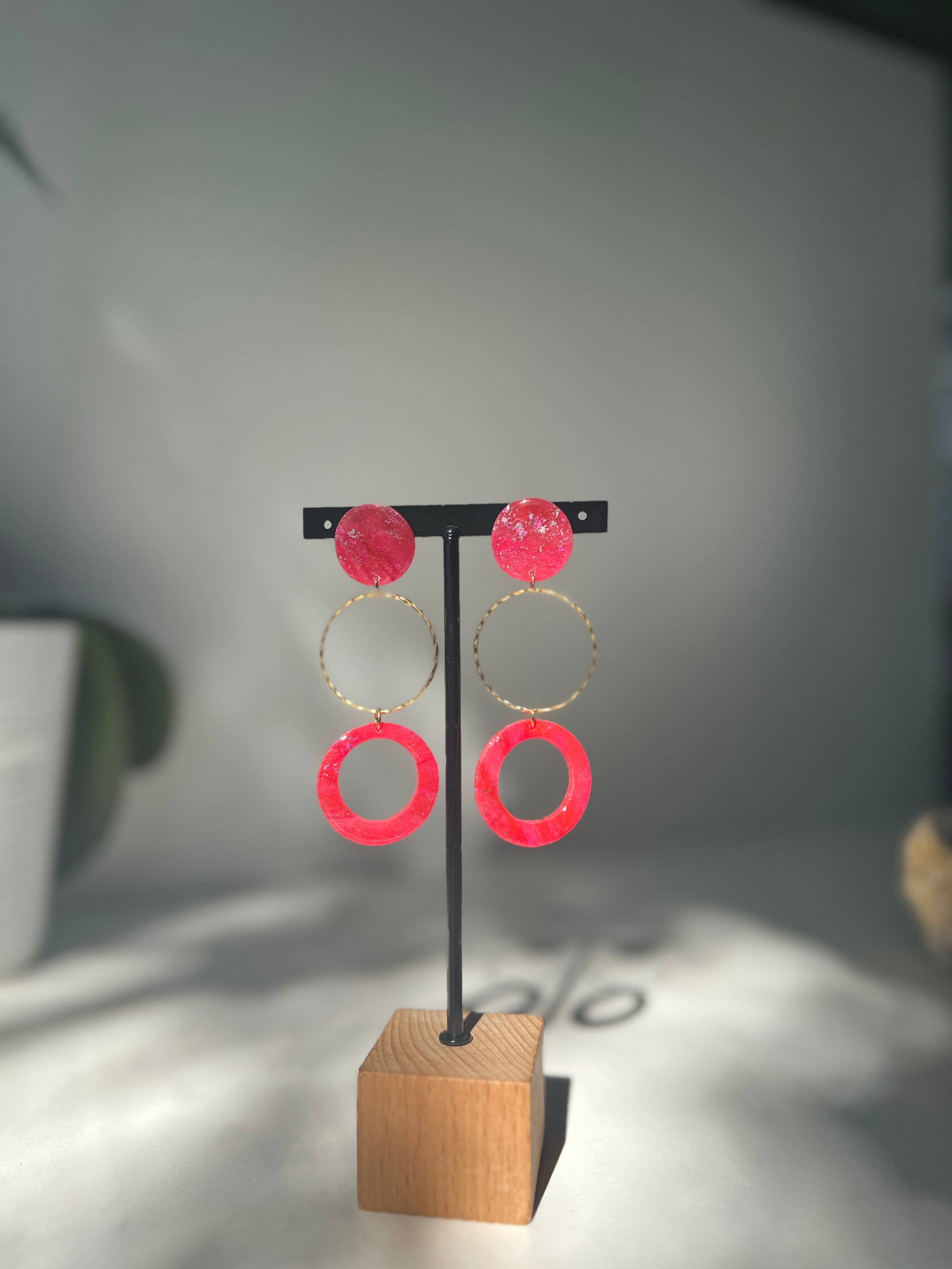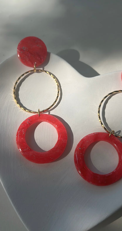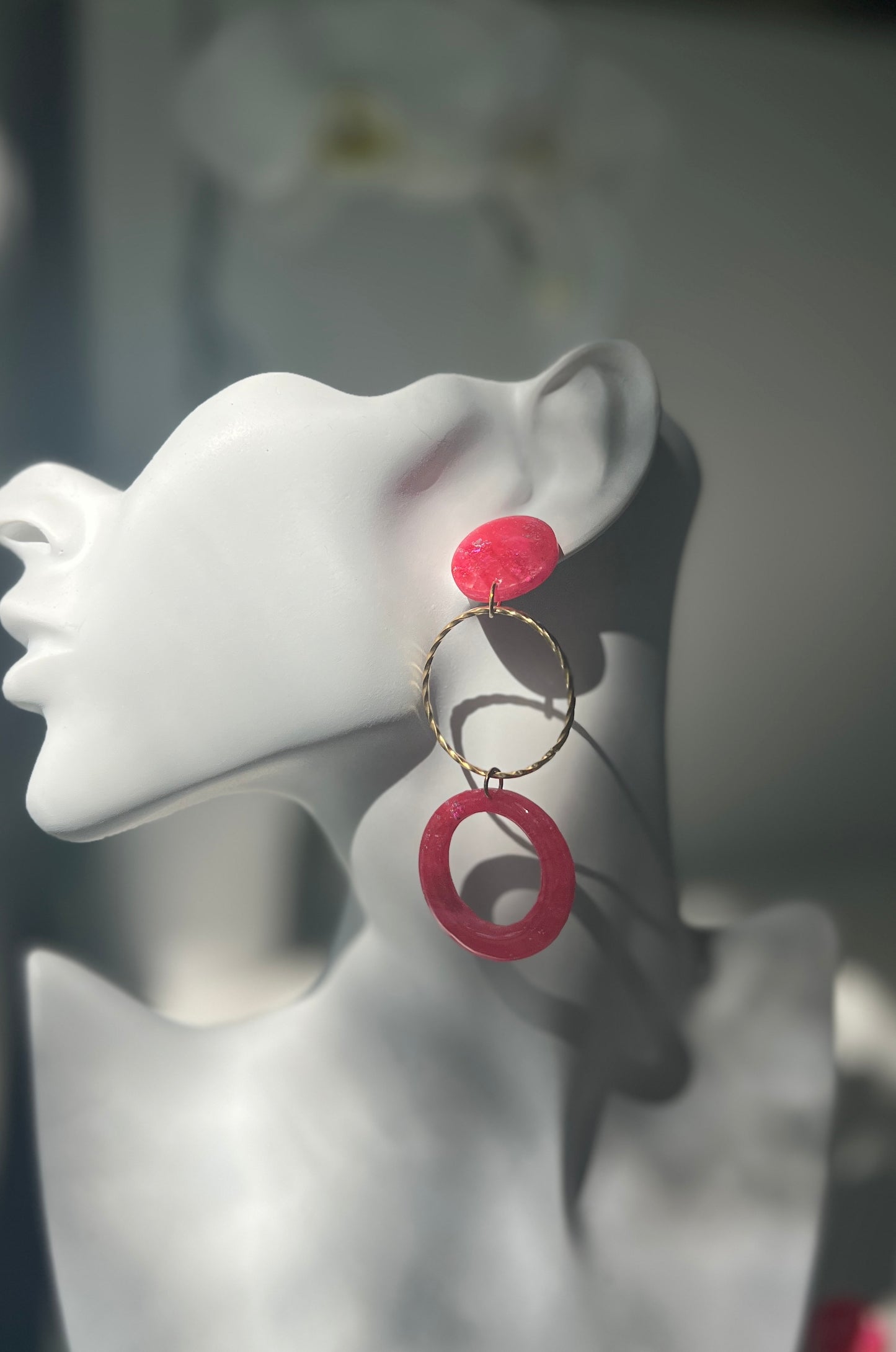 All of the Polymer Clay earrings are handcrafted. Some earrings may include gold or silver leaves, recycled make-up or a clear resin on them to give them a nice shine!