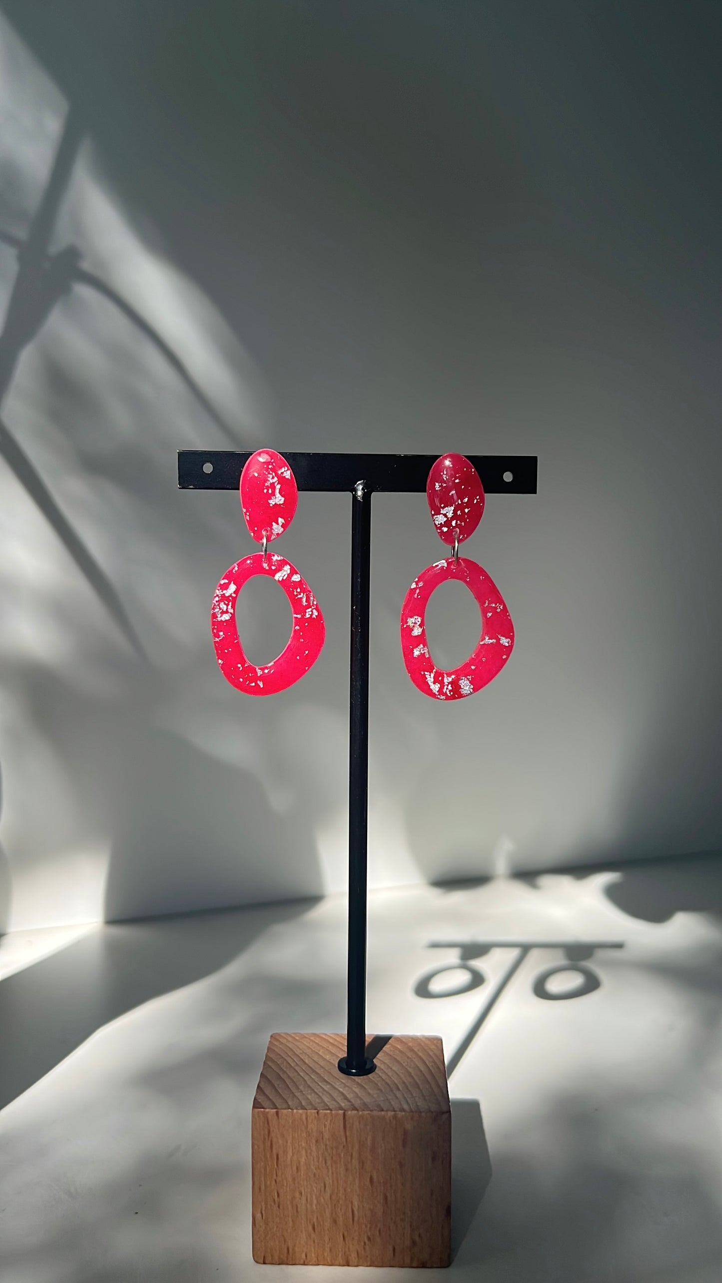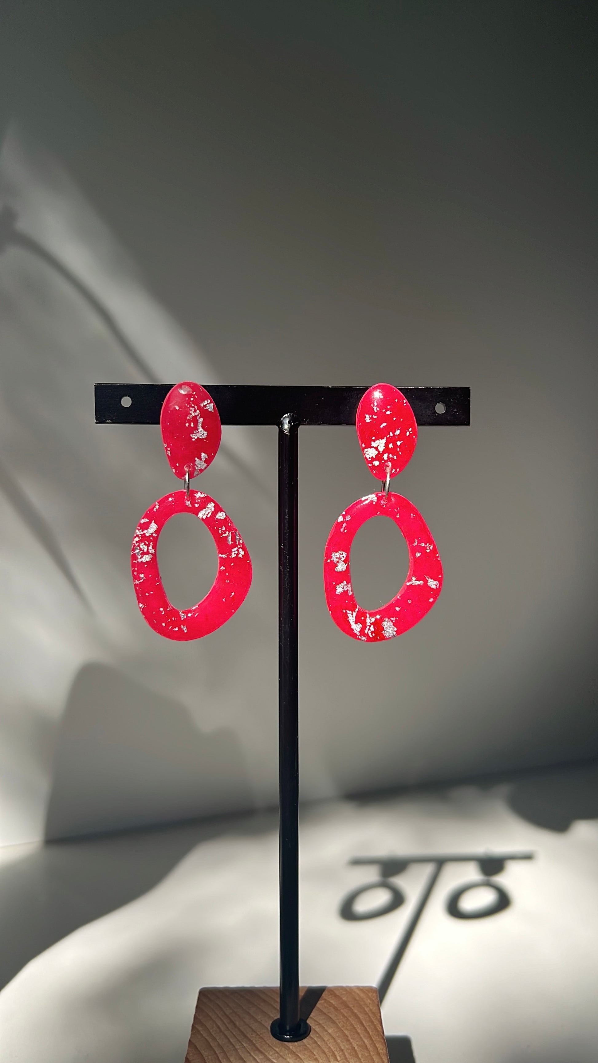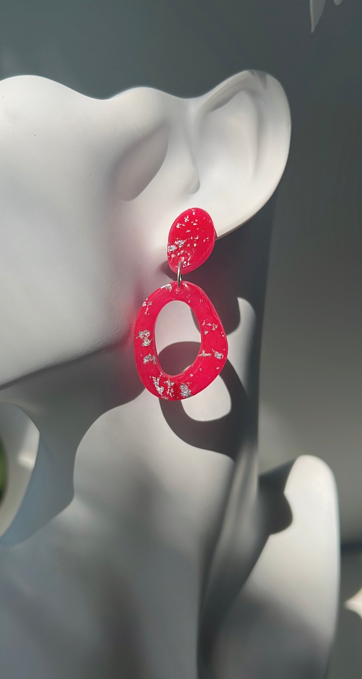 All of the Polymer Clay earrings are handcrafted. Some earrings may include gold or silver leaves, recycled make-up or a clear resin on them to give them a nice shine!