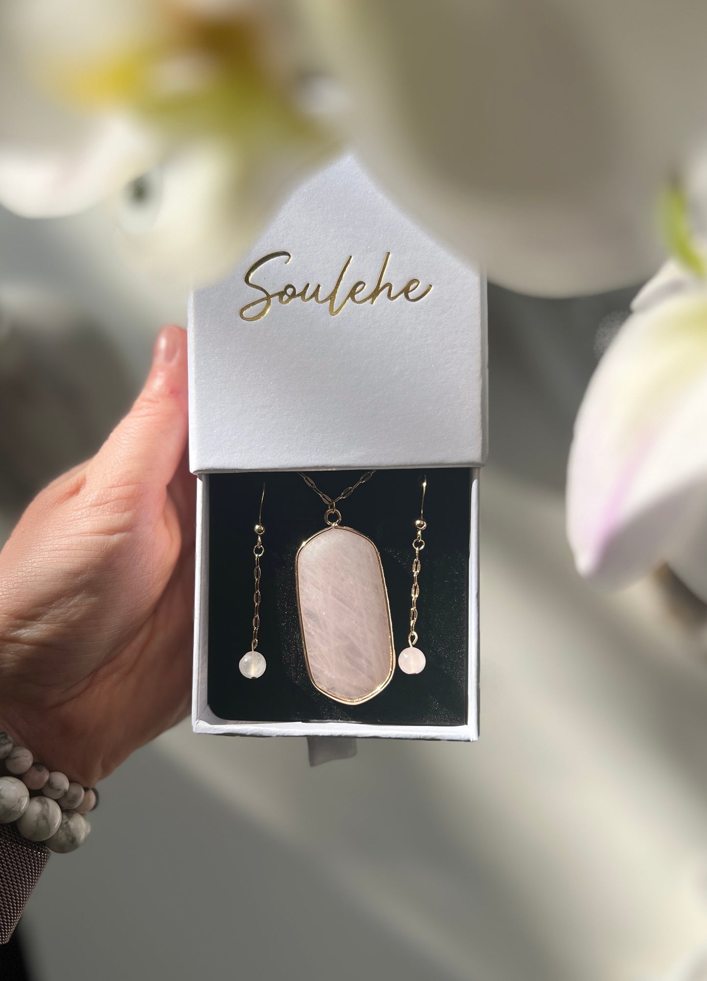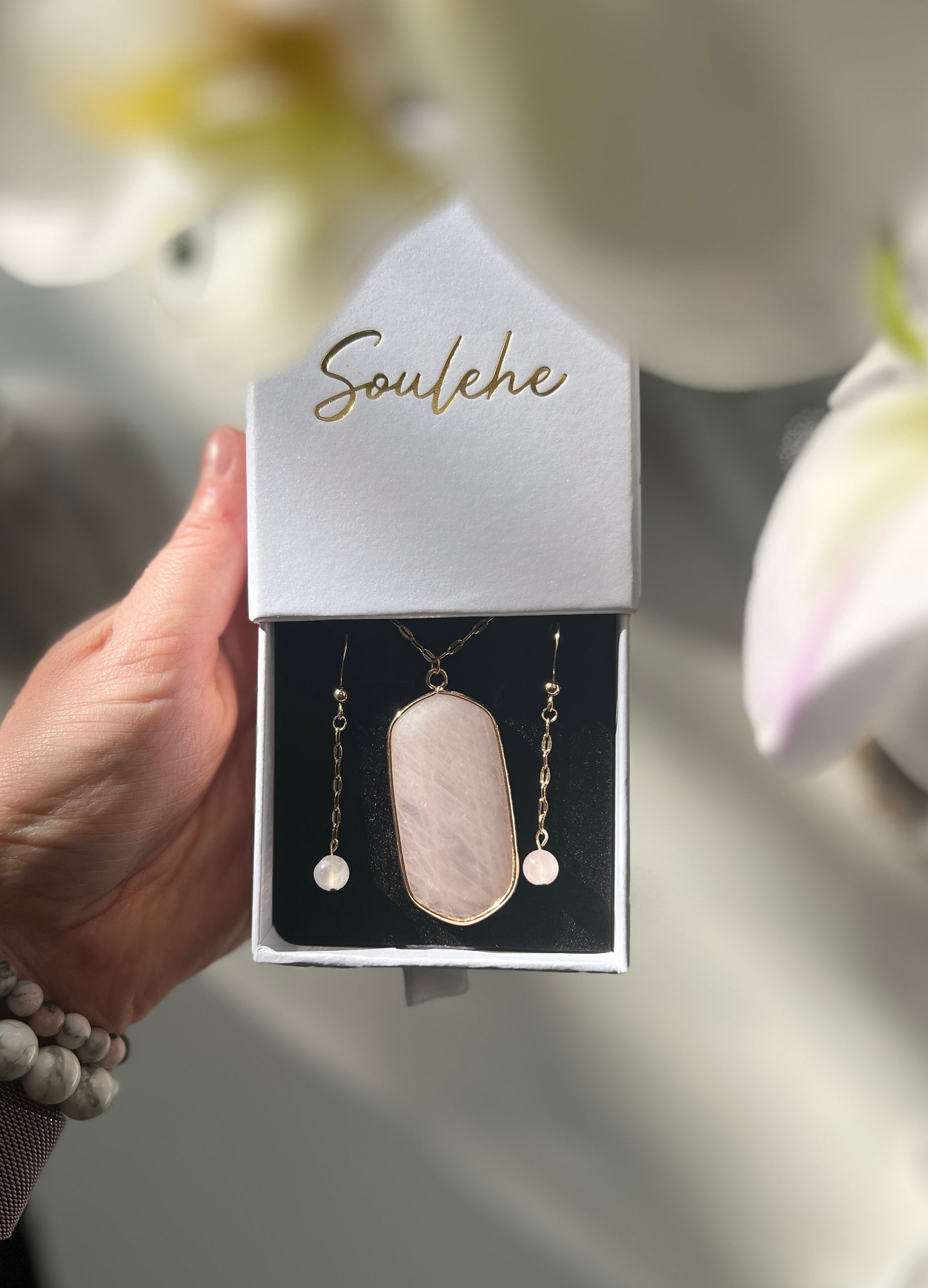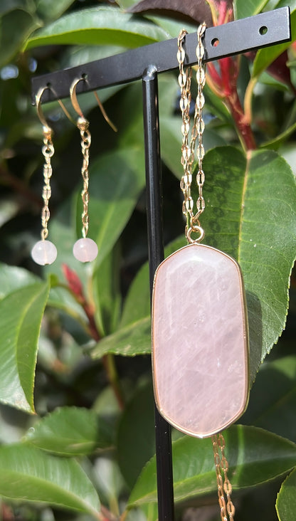 Healing x Relationships Combo • Necklace & Earrings • Rose Quartz & 18K Gold Plated