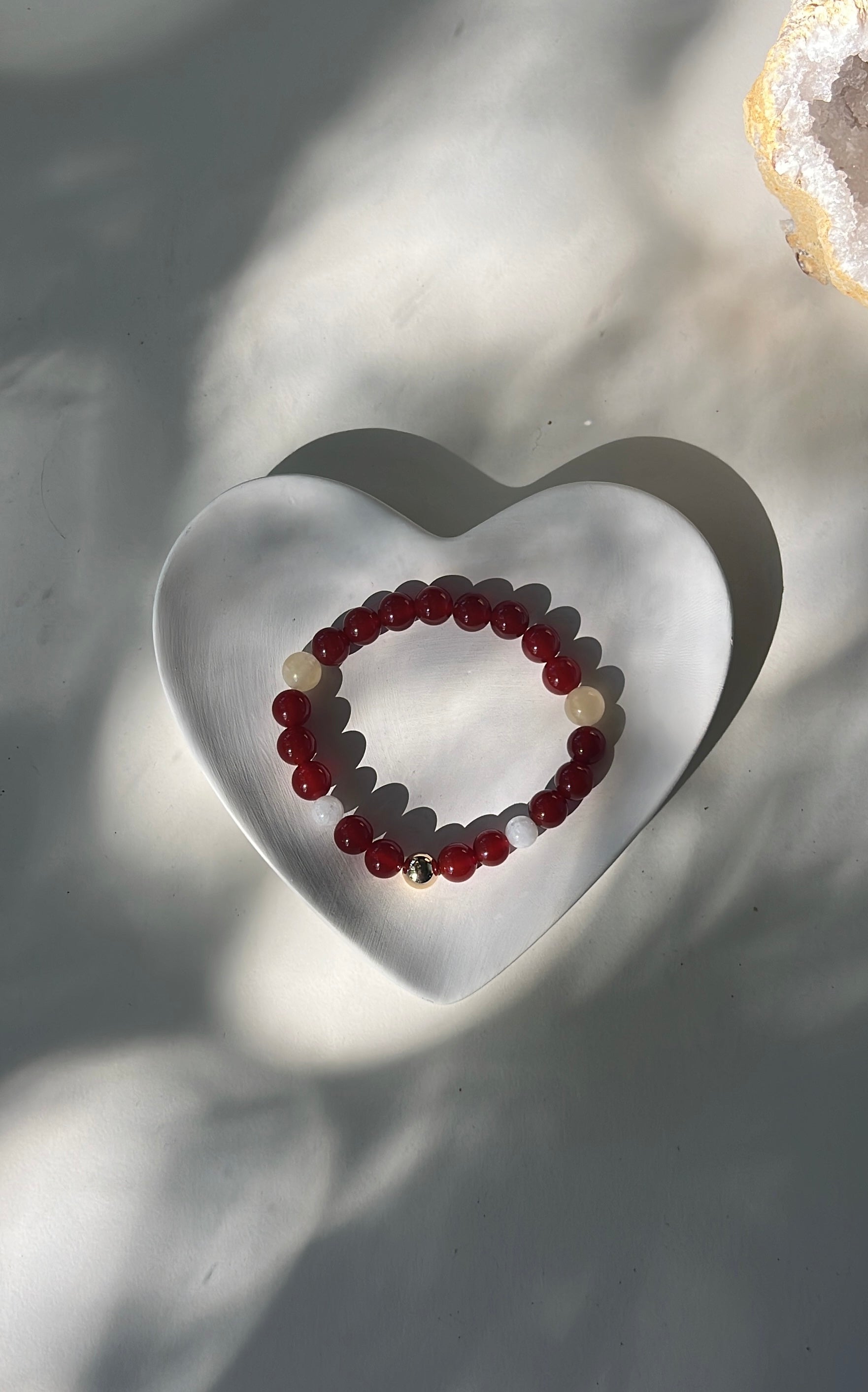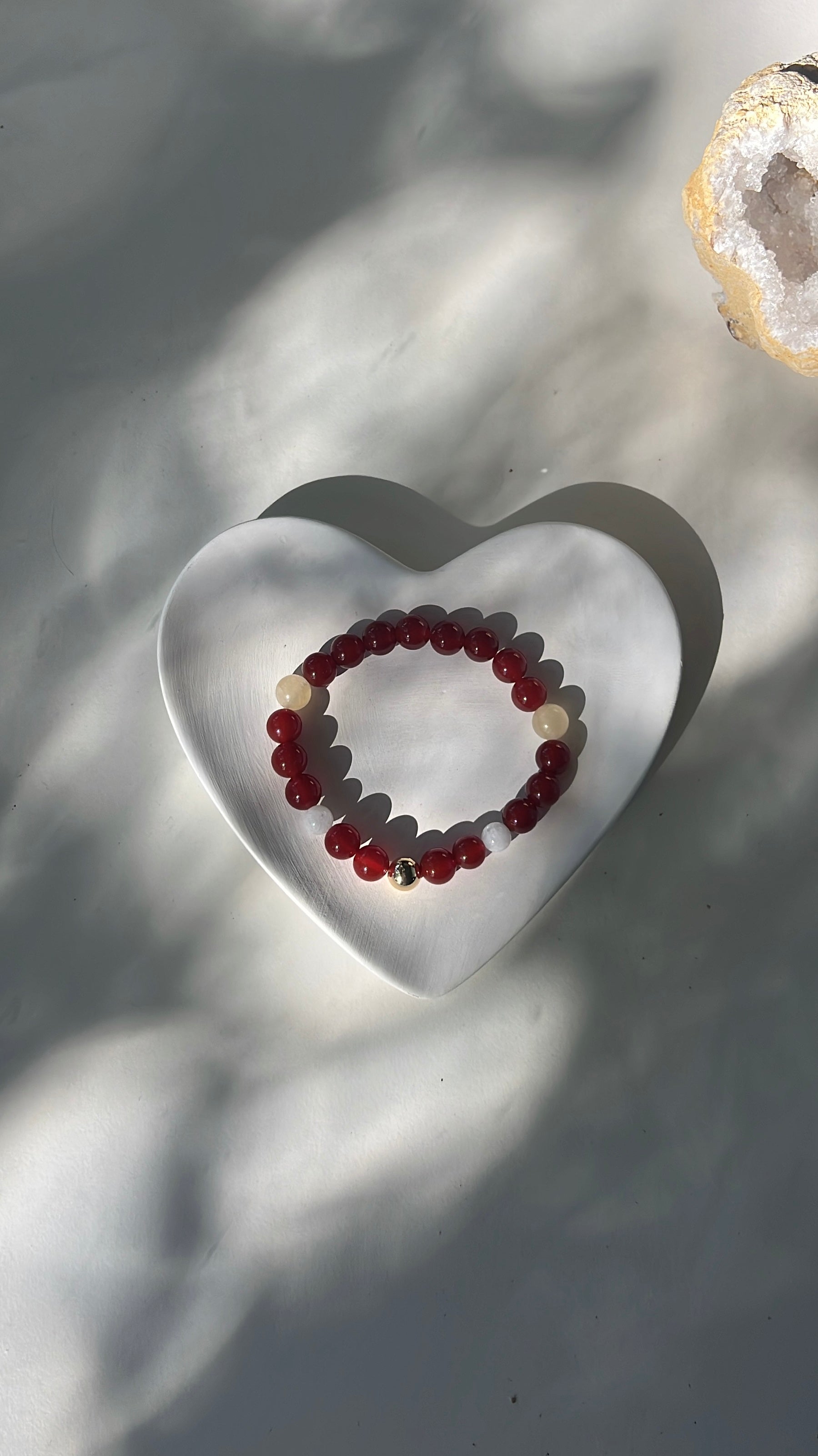 Carnelian inspires vitality, motivation, and grounding, enhancing confidence and passion for life. Citrine promotes positivity, self-belief, and abundance, offering clarity and a sense of purpose. Moonstone deepens intuition and emotional balance, celebrating feminine wisdom and new beginnings.