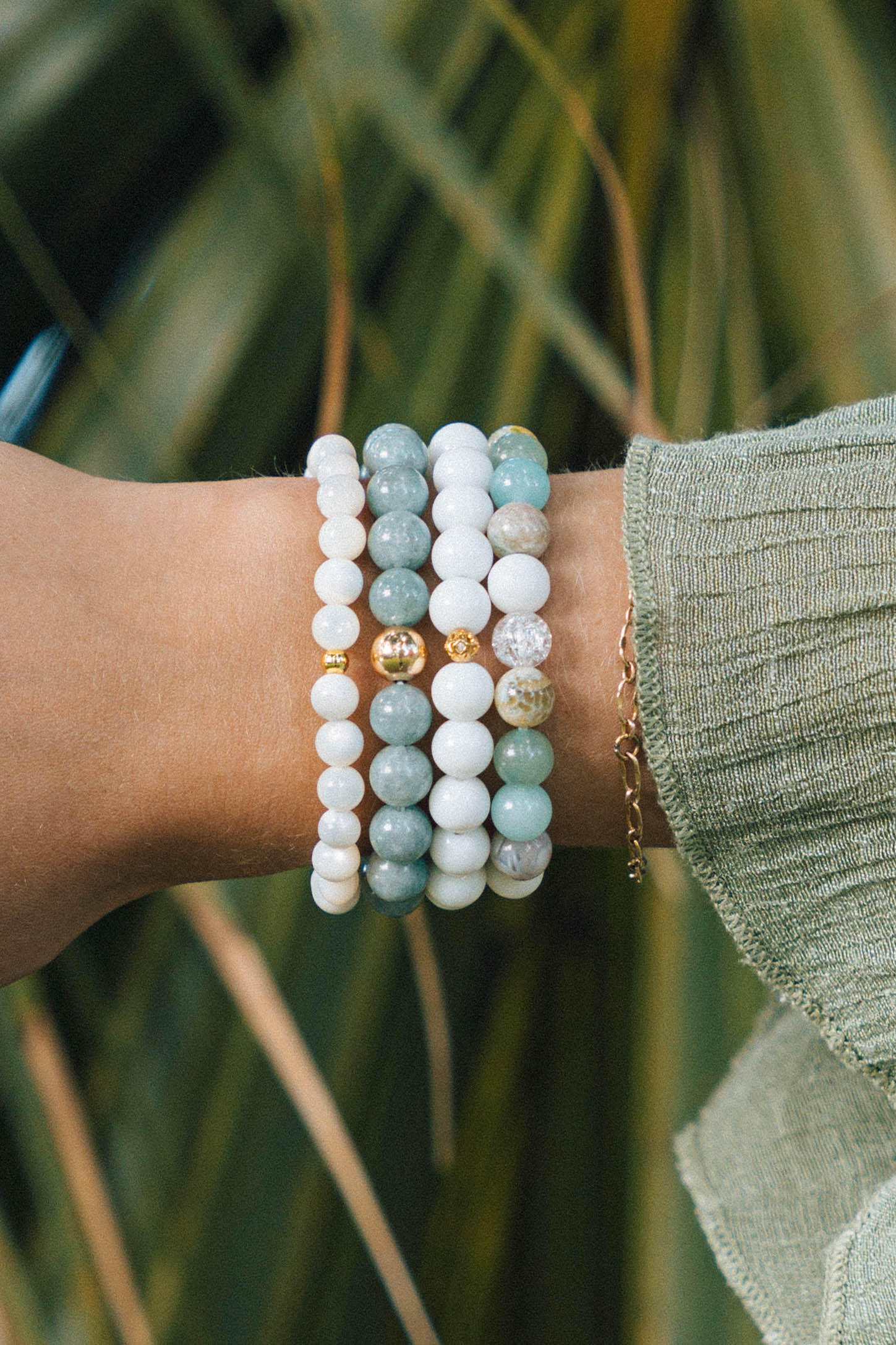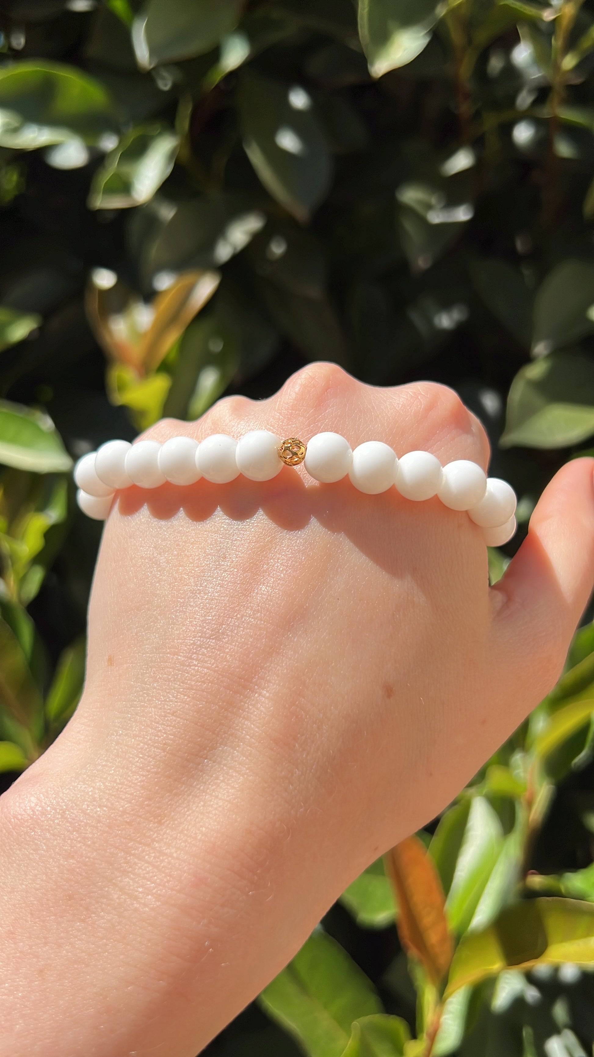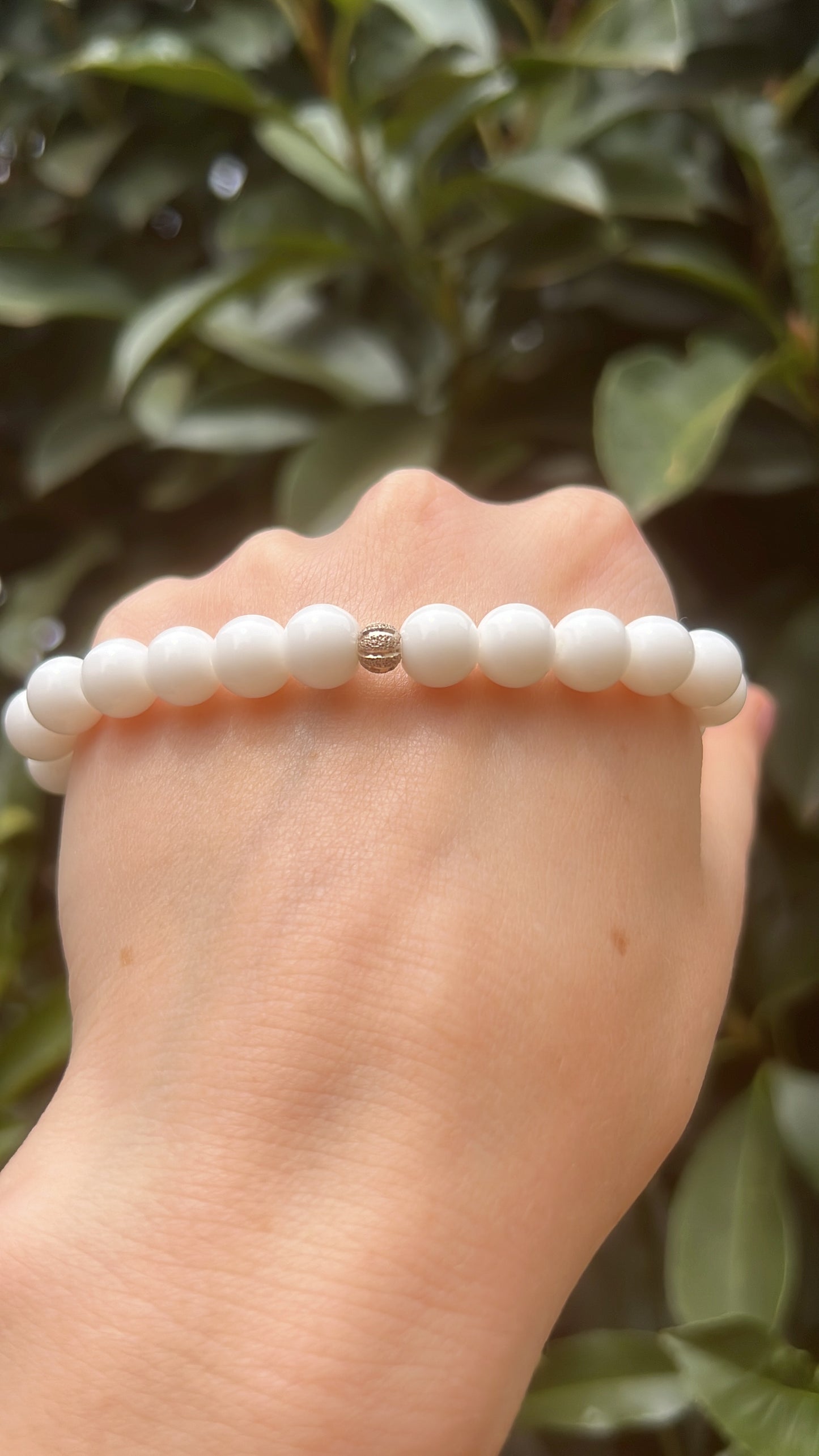 ◉ 8mm Natural White Agate ◉ 925 Sterling Silver or ◉ 18K Gold plated