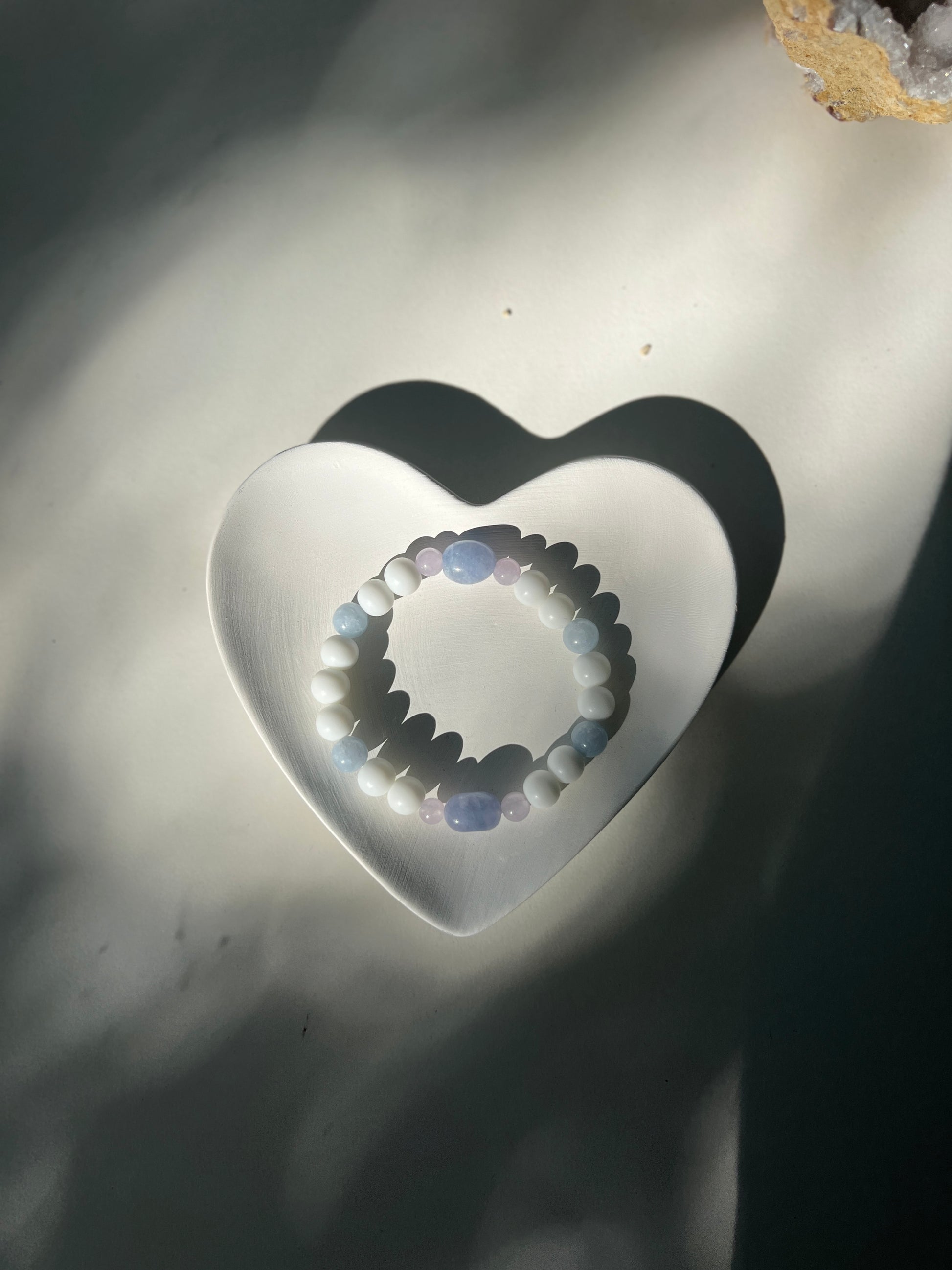 An ideal companion for those seeking harmony, resilience, and inner peace, this bracelet promotes soothing energy and encourages loving connections in everyday life.