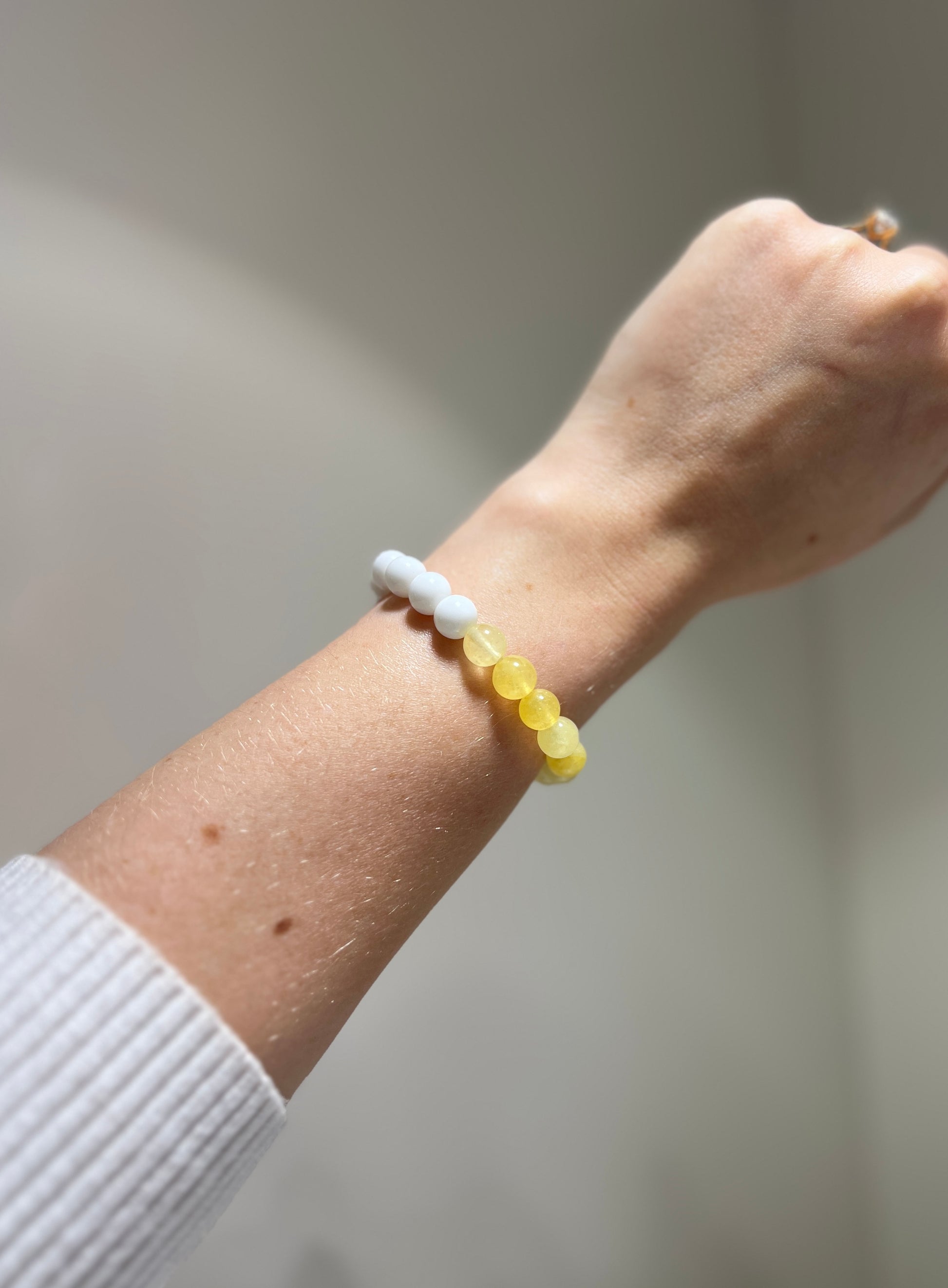 Embrace harmony and illumination with the White Agate and Citrine Duality Bracelet.